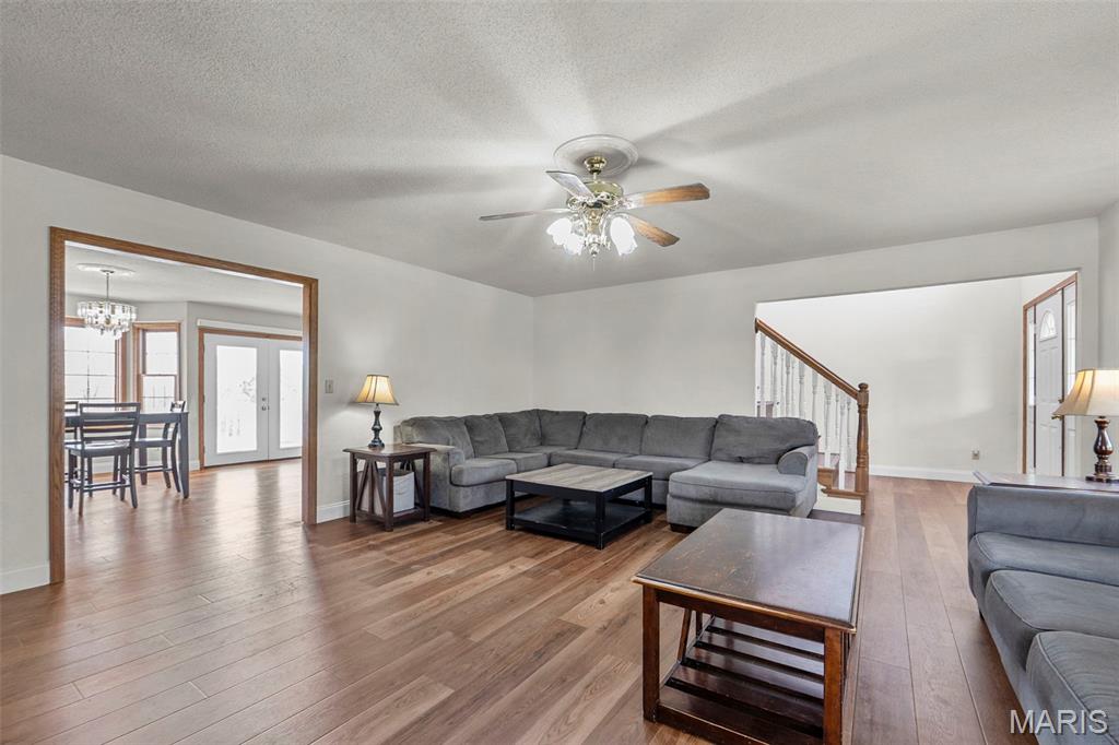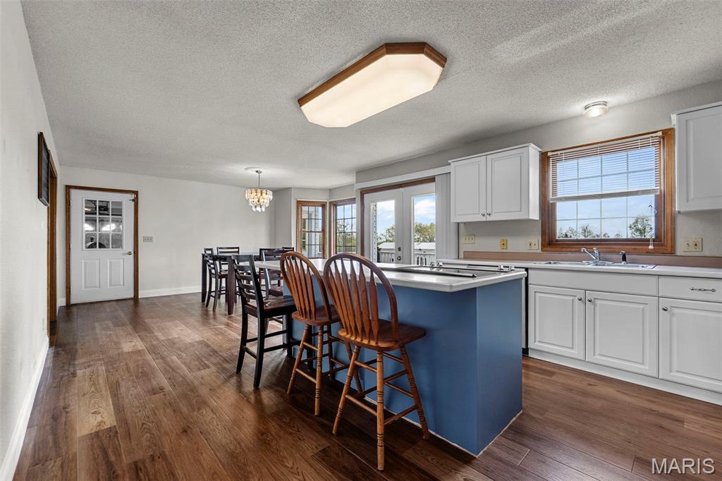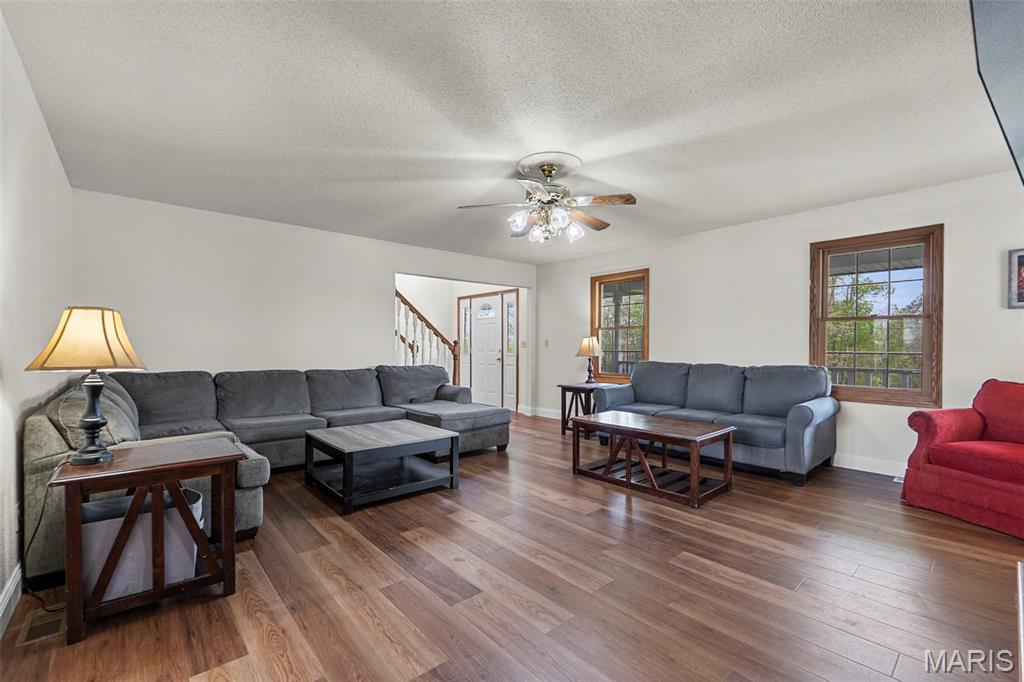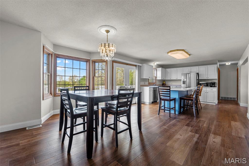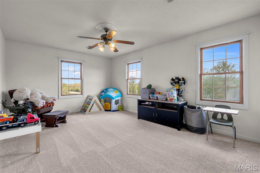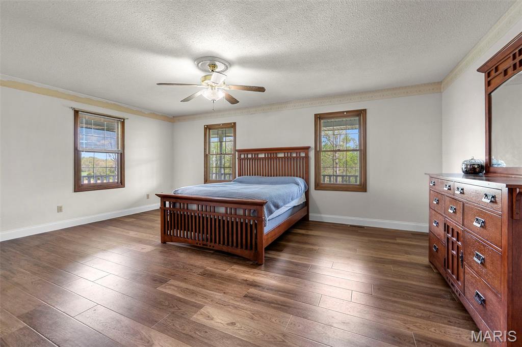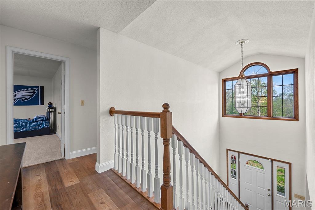 A truly rare and exceptional offering, this one-of-a-kind property features a stunning 5-bedroom, 4.5-bath home with approximately 3,600 square feet of living space, perfectly positioned atop 21.55 acres to capture breathtaking sunset views. A charming wrap-around porch invites you to relax and take in the peaceful surroundings and stunning vista. The property is further enhanced by impressive outbuildings, including a 5,000-square-foot, four-bay shop that has previously generated income as camper/equipment storage, as well as a smaller outbuilding that has been newly remodeled into a one-bedroom efficiency apartment with a two-car garage, offering excellent potential for guest accommodations, rental income, or a private workspace. Inside the home, a welcoming foyer leads to an upper level featuring four spacious bedrooms and two full bathrooms. Entering through the attached heated garage brings you into a beautifully designed kitchen and dining area, complete with a large island and direct access to an expansive deck—perfect for entertaining. The kitchen has been updated with refinished cabinets, adding a fresh and modern touch. The main level also offers a generous living room with a cozy fireplace, a private primary en suite, a dedicated office, and an additional bathroom. The partially finished basement expands the living space with a wood-burning fireplace, hot tub area, bathroom, game room, and ample storage. Recent updates throughout the home include NEW flooring throughout the main and upper levels, along with NEW AC units. Combining scenic acreage, versatile outbuildings, and thoughtfully updated living spaces, this property presents a unique opportunity for both personal enjoyment and potential income.