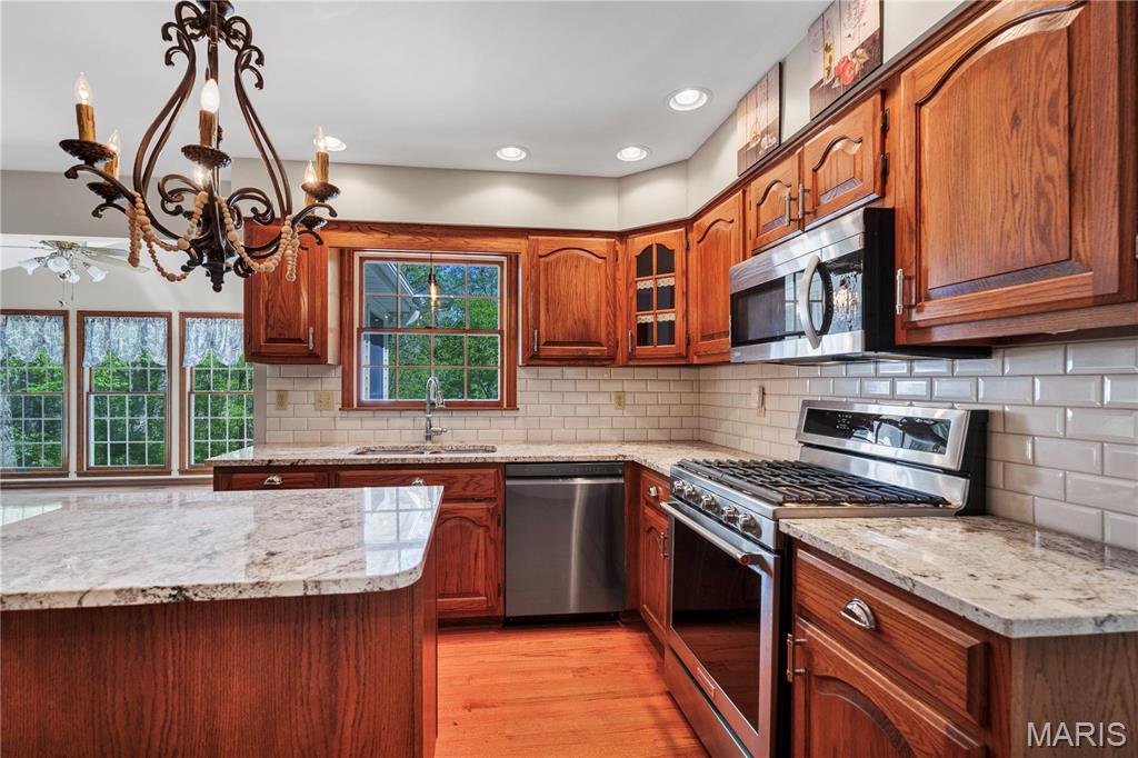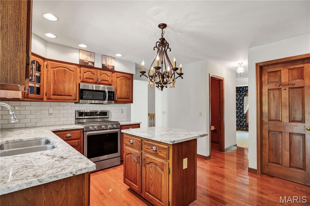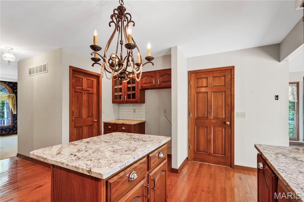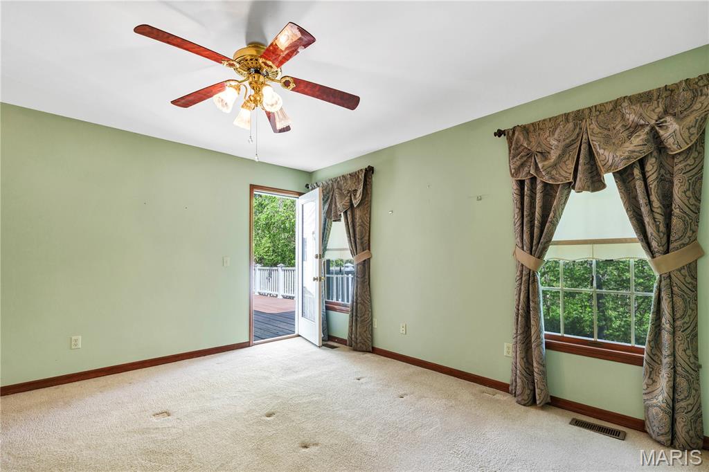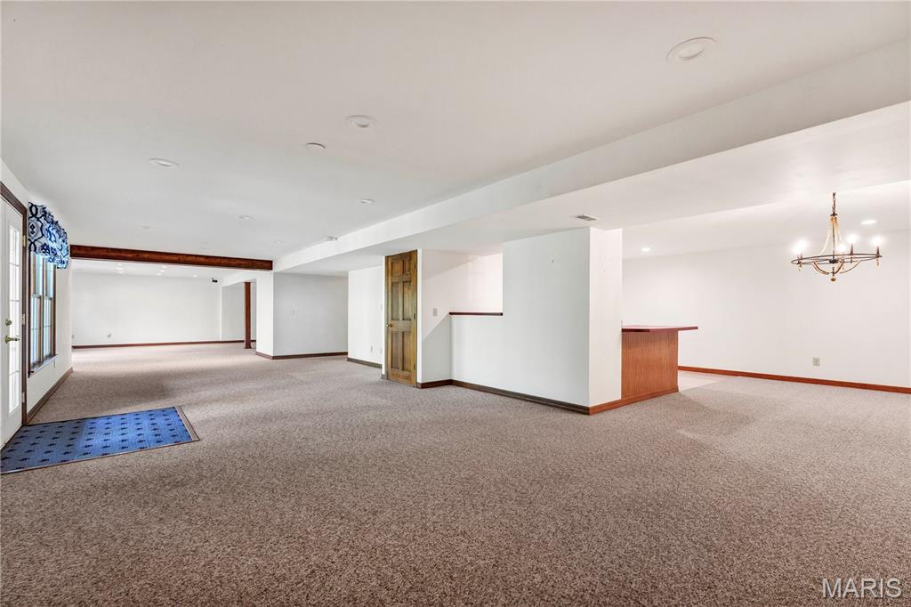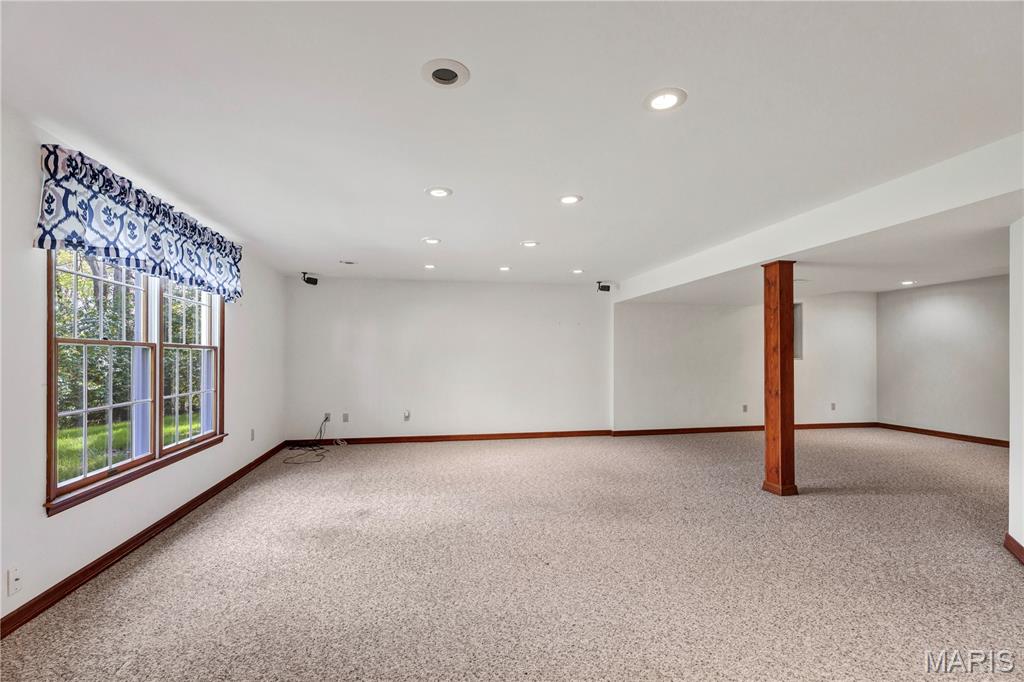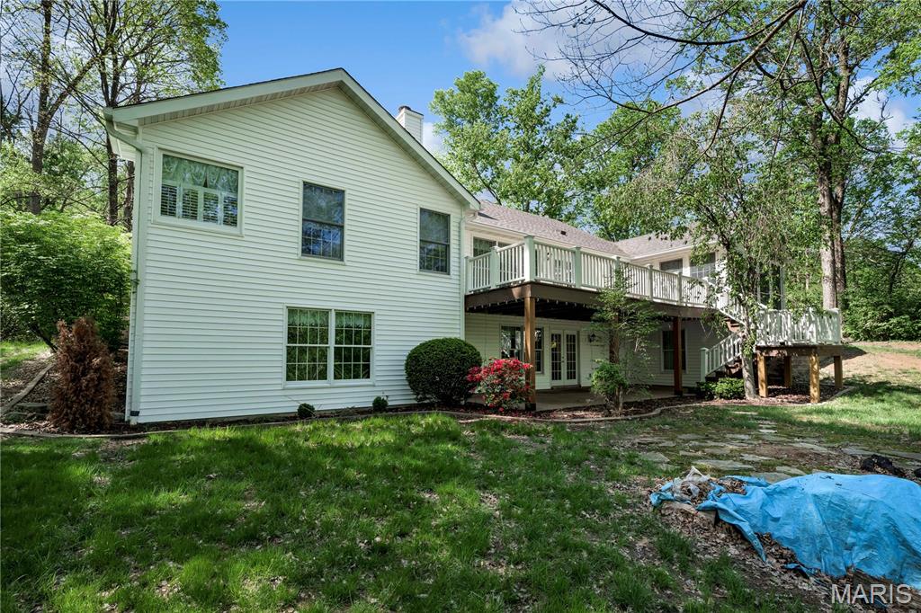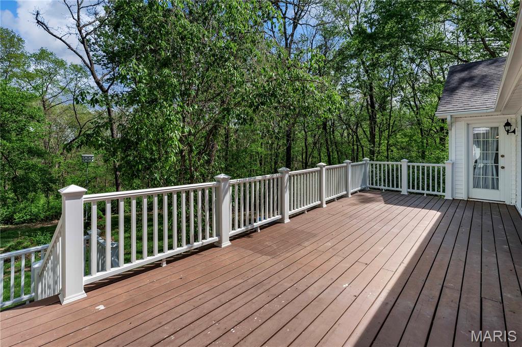 Nestled on a 3-acre lot at the end of a cul-de-sac, this spacious custom ranch welcomes you. Many wonderful features that include a formal living room that is ideal for an office. Formal dining room. Great room with raised hearth fireplace and walkout to huge deck. Master bedroom with luxury bath, 2 walk-in closets and access to deck. Kitchen with granite counter tops, stainless steel appliances, center island, walk-in pantry and beautiful wood floors. The Breakfast room will be a favorite spot with all of the windows, natural lighting and view. The main floor laundry allows access to garage and side court yard or pen area. Two car garage is oversized and there is ample additional parking. Lower level is approximately 80% finished with a 4th bedroom, full bath, huge family room, game room, kitchen area and a walkout to large patio. This is a great home for entertaining and offers seamless indoor/outdoor living space on a beautiful setting.