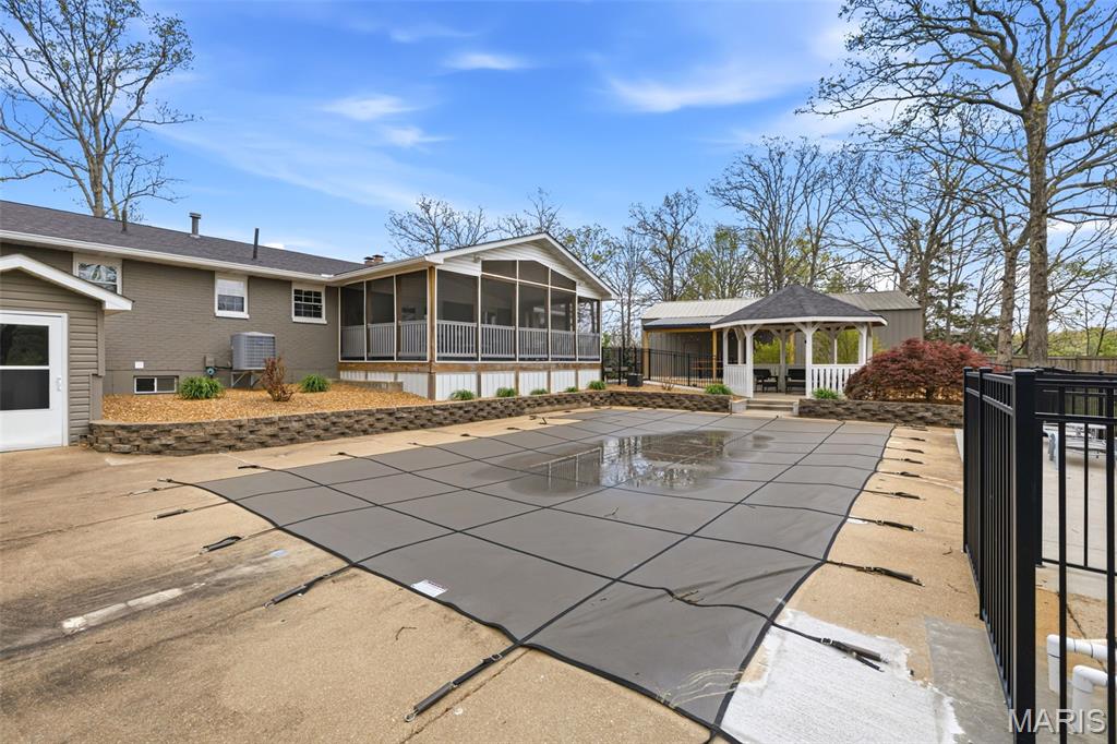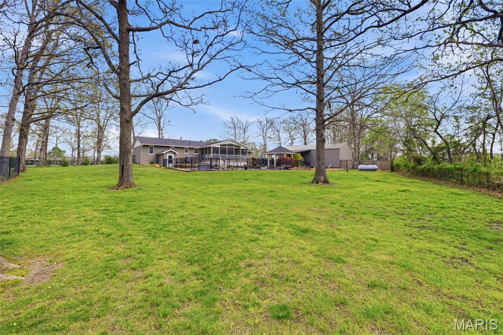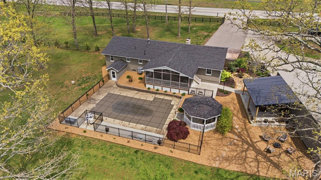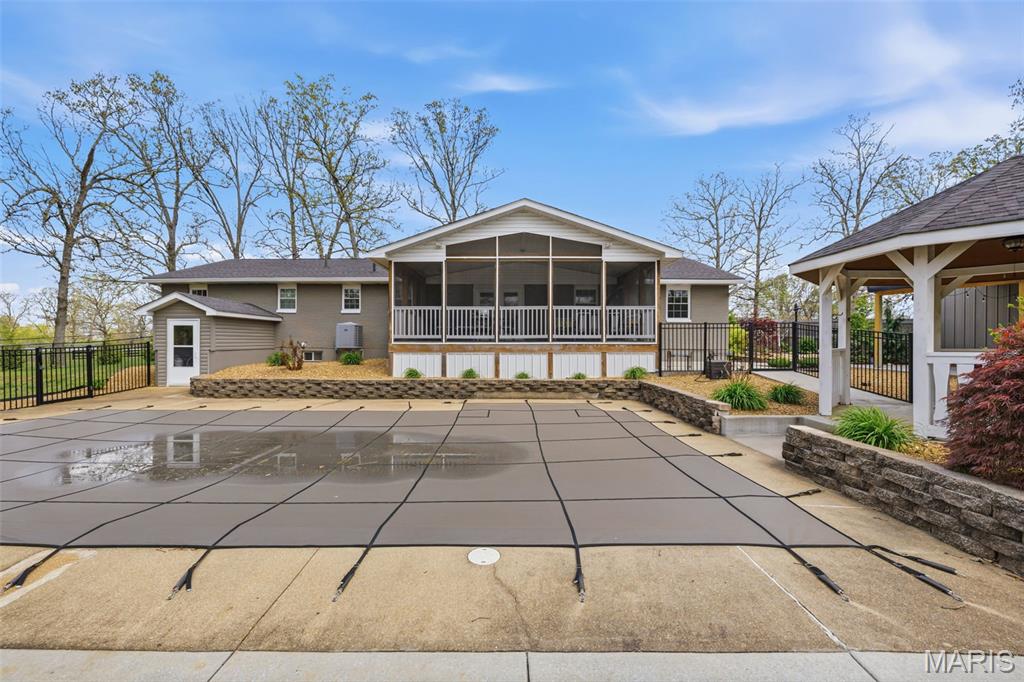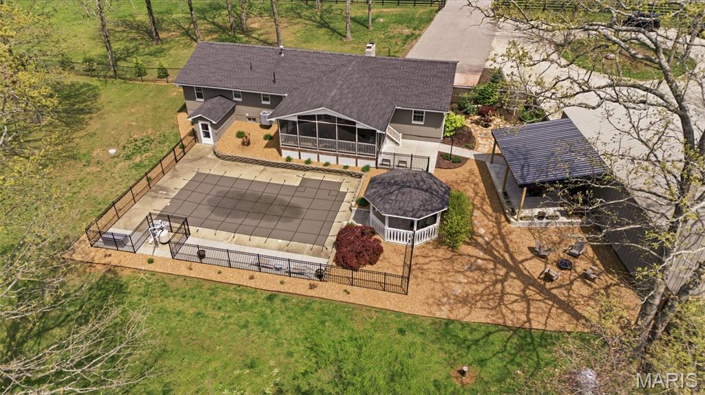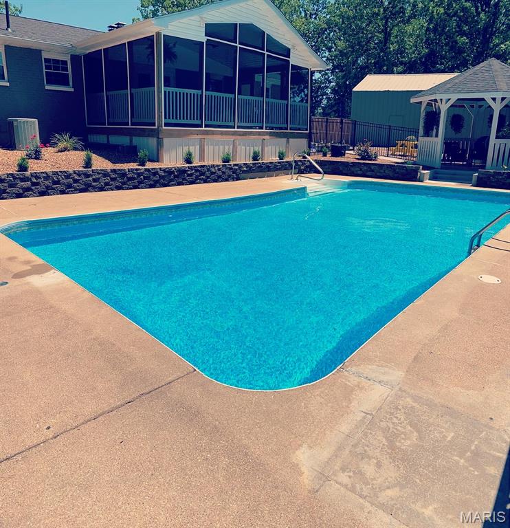 You must see this spacious and beautifully maintained brick home featuring 3 bedrooms and 2 full bathroom, with a full basement offering a big family room for additional living and lots of storage space. The home boasts quartz countertops, a functional layout, and plenty of natural light throughout. You will love the 2 car attached garage plus a impressive 30x48 detached garage with a lean-to for extra storage or workspace. The bonus in-law suite provides flexible living options for guests or extended family. Step outside to a fully fenced property with elegant black wrought iron fencing, offering both security and curb appeal. Enjoy outdoor living at its finest with a private in-ground swimming pool, gazebo, screened-in back porch over looking the pool and a backyard patio-perfect for relaxing or entertaining. The property also includes raised garden beds for gardening enthusiasts and a blacktop driveway with a convenient circle drive for easy access and ample parking. This home combines comfort, functionality, and outdoor charm-ready for you to move in and enjoy! Do not wait on this one!