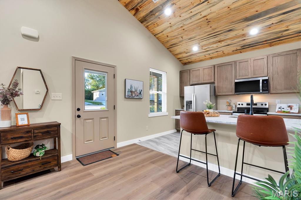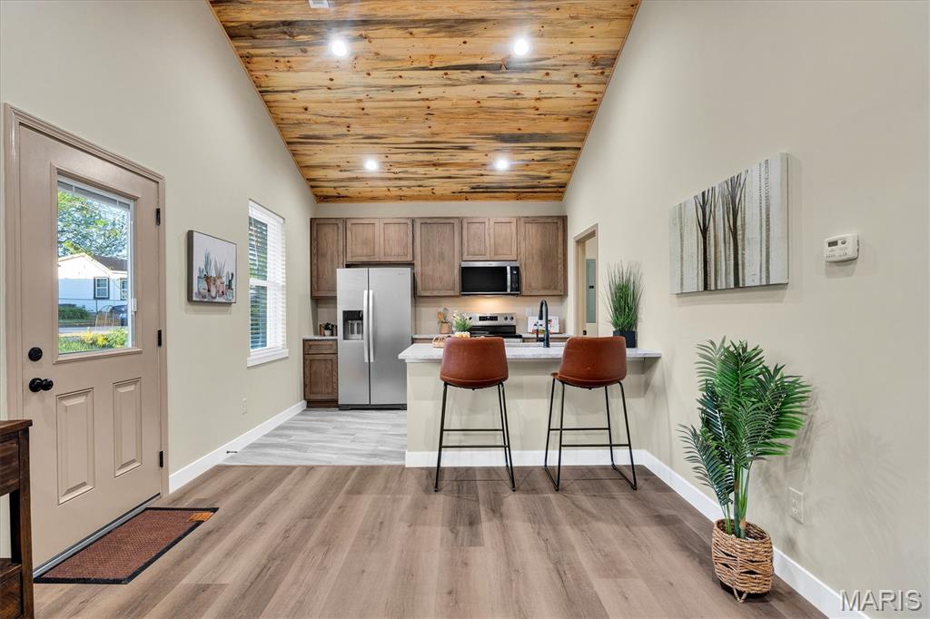 Welcome to 208 Walnut St in Crystal City—a newly constructed home offering a level of finish and craftsmanship rarely found at this price point. Thoughtfully built by a long-standing Jefferson County builder, this residence reflects intention, quality, and a sense of legacy in every detail. Inside, architectural elements and curated finishes create an elevated everyday experience. A striking vaulted wood accent ceiling adds warmth and dimension, while 9-foot ceilings enhance the sense of openness throughout. The kitchen is both functional and refined, featuring shaker-style cabinetry, granite countertops, and stainless-steel appliances—designed to balance timeless style with modern performance. Transom windows invite in natural light while maintaining privacy, and cohesive black hardware—including door knobs, hinges, and plumbing fixtures—adds a sophisticated, designer-level finish. Spa-inspired bathrooms are complete with backlit mirrors, and durable luxury vinyl plank flooring flows seamlessly throughout the home, offering both beauty and practicality. Beyond aesthetics, this home is built with performance in mind. 2x6 exterior walls paired with upgraded noise-reducing, energy-efficient insulation enhance comfort, efficiency, and long-term value. An EV charger adds modern convenience, while the covered front porch creates a welcoming space to slow down and enjoy the surroundings. Positioned in a community experiencing exciting redevelopment and renewed investment, this home offers more than just a place to live—it’s an opportunity to be part of Crystal City’s next chapter. For first-time buyers, inquire about special financing options designed to minimize out-of-pocket costs and make homeownership more accessible. For investors, this is a turnkey opportunity with strong potential—ideal for land banking or adding a low-maintenance asset to your portfolio.