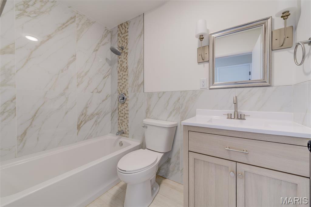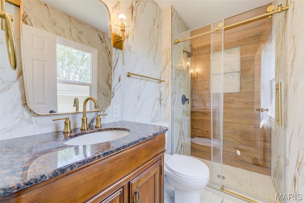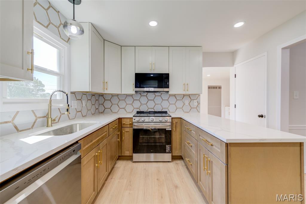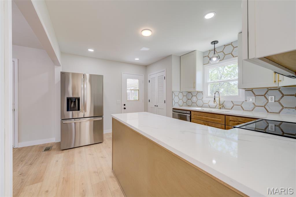 Newly Renovated home with a finished basement, separate living room, dining room and family room. What's not to love about the elegant kitchen equipped with custom cabinets, stylish hardware, quartz countertops, gorgeous backsplash and matching stainless steel appliances, including a low-decibel dishwasher. The home has new laminate flooring throughout except the bathrooms which feature appealing ceramic tiles The family room includes a wood-burning fireplace flanked by built-in cabinets and shelves for extra storage. Additional highlights to enjoy are the brand new double front doors, new windows, new hotwater heater, new 200-amp electrical panel. The well-lit finished basement and screened-in back porch and patio are both perfect for entertaining.