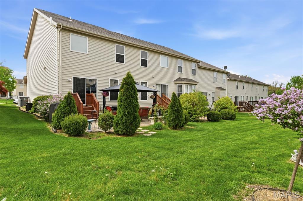 *Interior pictures will be uploaded on Monday, April 27* Welcome: This 3 bed 2.5 bath townhome, in the desirable Springhurst community is the one you’ve been waiting for! Twenty year young, end unit that boasts maintenance free exterior living! Step inside and be greeted by luxury vinyl plank flooring that spans into the open concept living room throughout the eat in kitchen with breakfast bar, granite countertops, stainless appliances, and pantry. Next, step out the sliding glass door leading to an outdoor patio space perfect for entertaining or relaxing. Inside a half bath ideal for visitors completes the main level. Upstairs you’ll find a spacious master suite with two walk-in closets and large bath with separate shower, soaking tub, and dual vanities. Second floor laundry room is down the hall making life a breeze! Two additional bedrooms with walk-in closets and another full bath complete the upper level. Tons of storage space in this home, and a basement that’s ready for finishing touches with a rough in for a 4th bathroom. Ideally located, near HWY 40/64 and 364, this home shows beautifully and won’t last long!