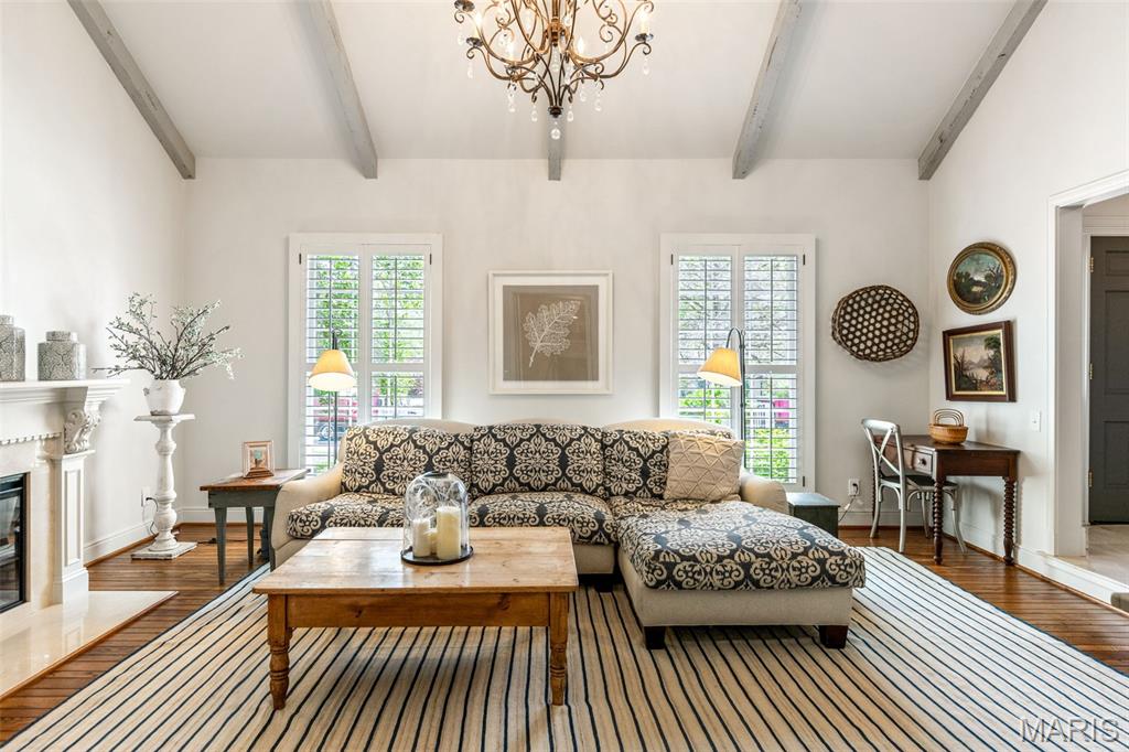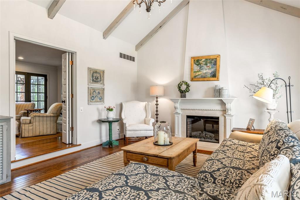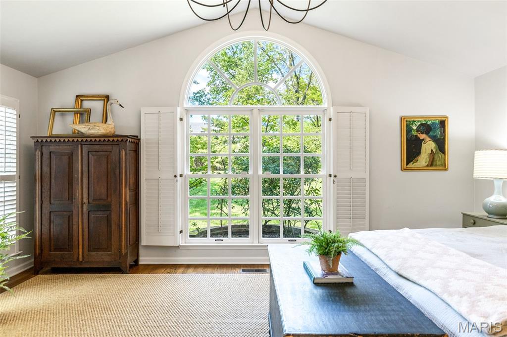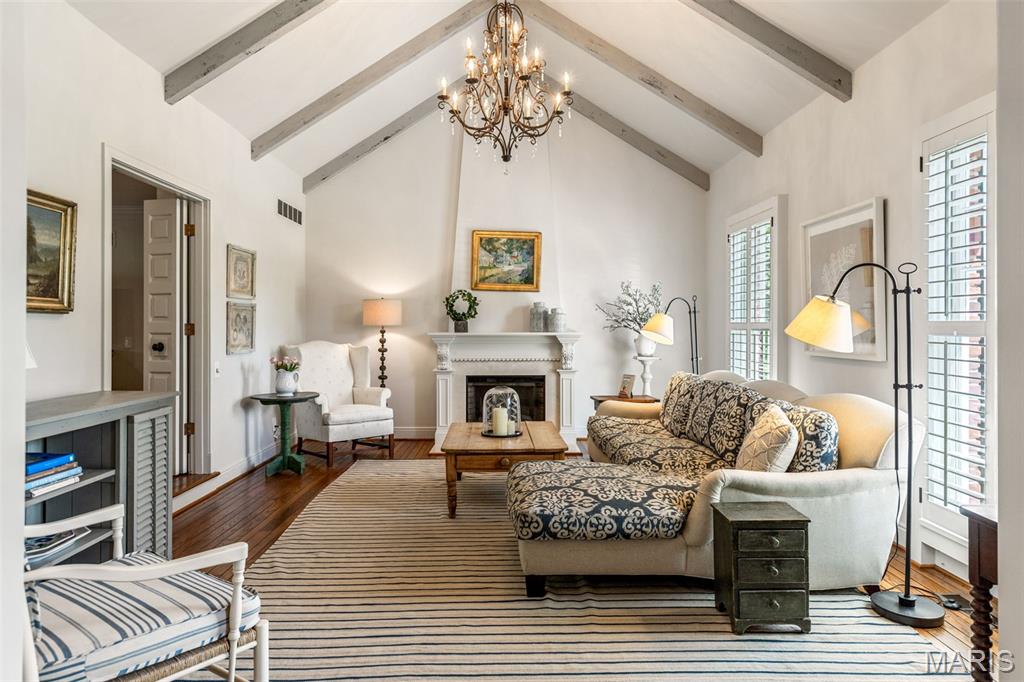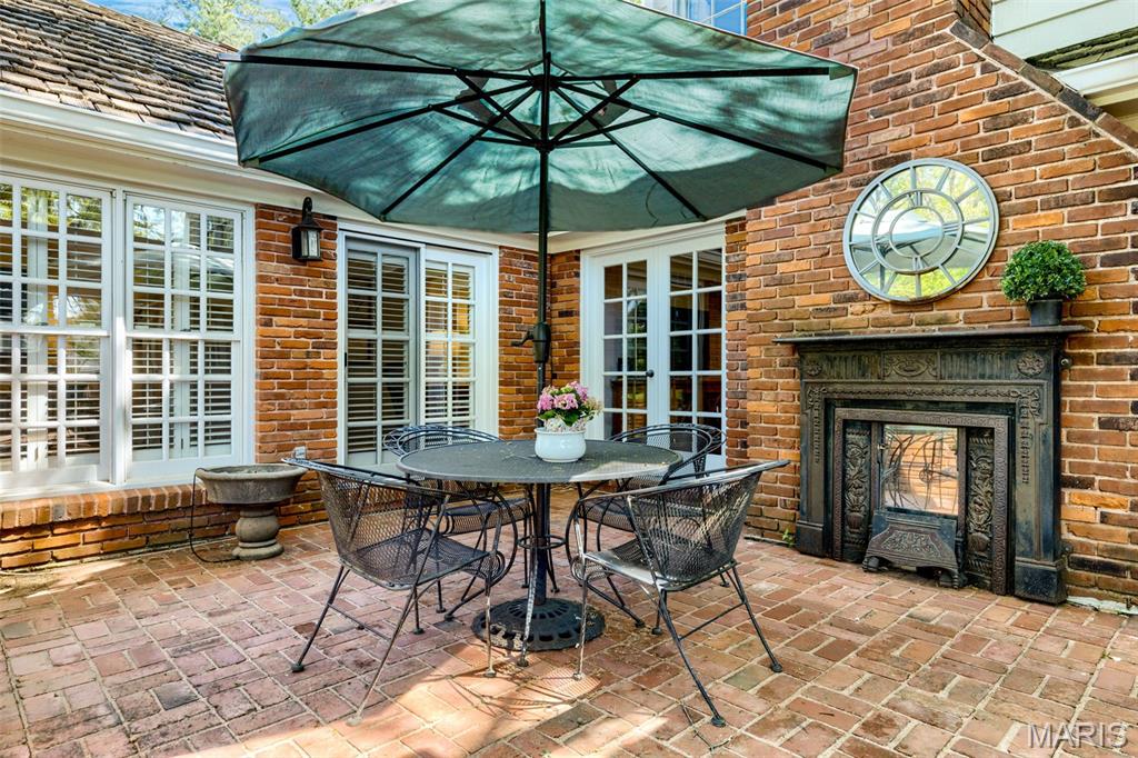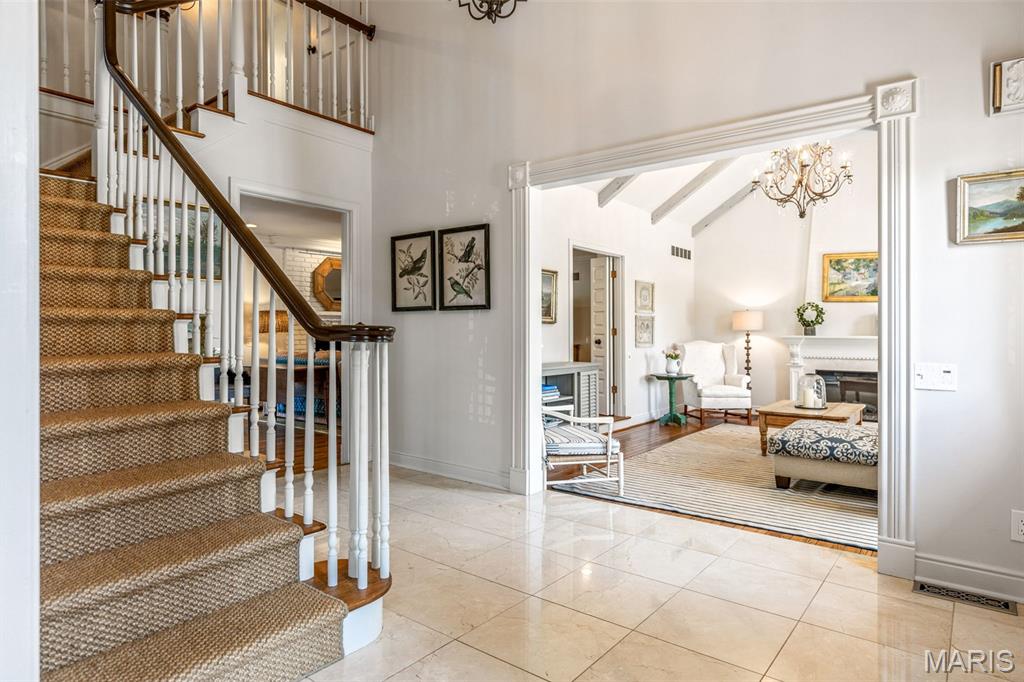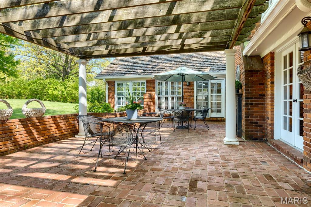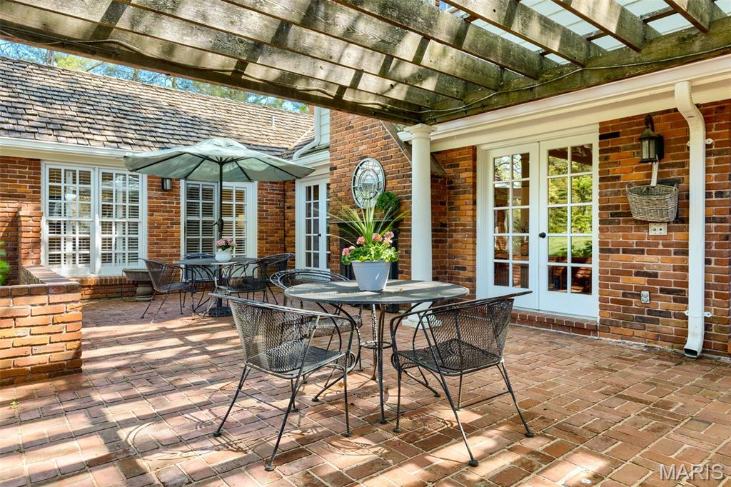 Nestled on one of Frontenac’s most sought-after streets, this beautifully appointed home and private lot offer timeless style and exceptional livability. A gracious two-story foyer with marble flooring sets the tone, opening to an elegant living room with fireplace and striking beamed ceiling, as well as a refined dining room ideal for entertaining. The main-floor primary suite is a true retreat with direct access to a peaceful patio sitting area, and a beautifully renovated bath with a stand-alone soaking tub, separate shower, and a custom walk-in closet. The well-designed kitchen features granite countertops, custom cabinetry, a center island, and premium stainless steel appliances. The spacious family room with gas fireplace and built-in bookcases seamlessly connects to a private brick patio with pergola and an expansive backyard. Private one acre lot, offering ample space for a swimming pool and ideal for indoor-outdoor living. A versatile main-floor office or den (optional bedroom) includes a fireplace and built-ins. Everything you need is on the main floor, including renovated laundry room. Upstairs, two additional bedrooms feature ample closet space and share a bath. Access to highly regarded Ladue schools. A rare opportunity to enjoy refined comfort, effortless entertaining, and fabulous family living in one of Frontenac’s most desirable locations.