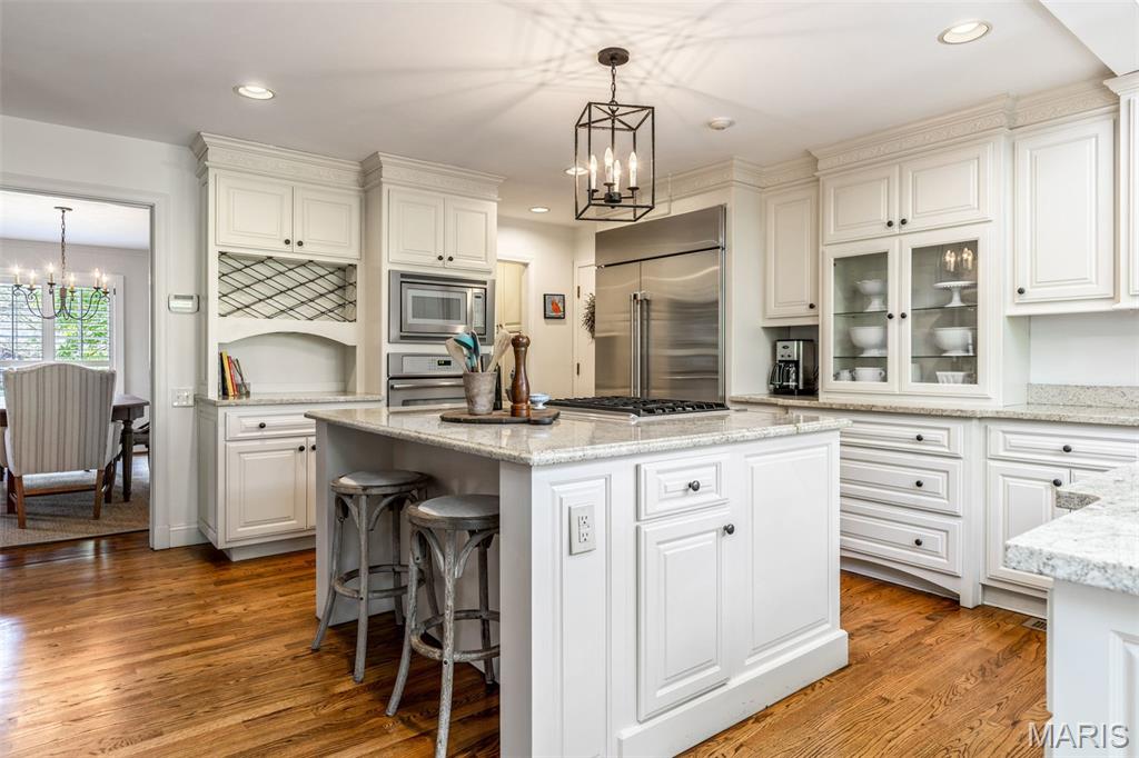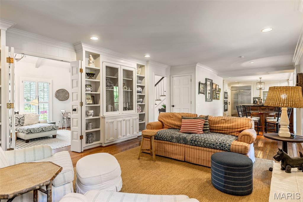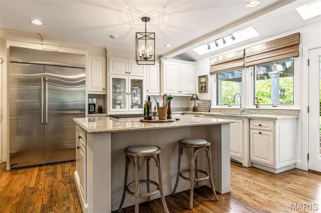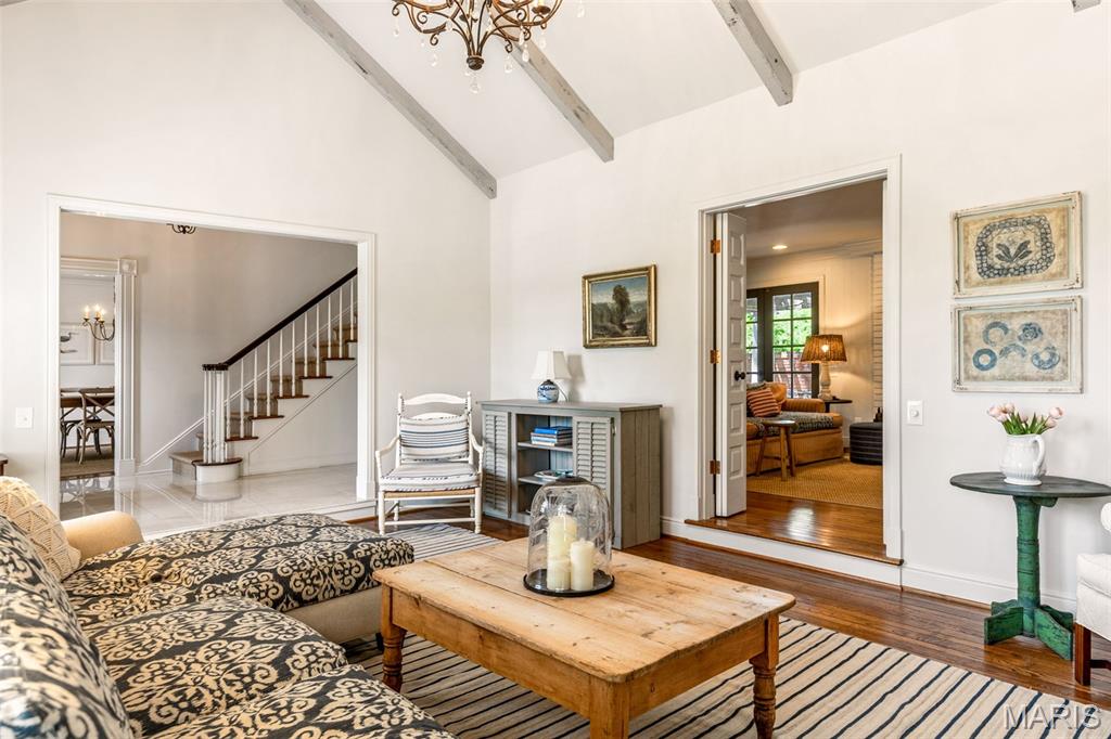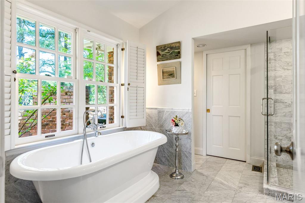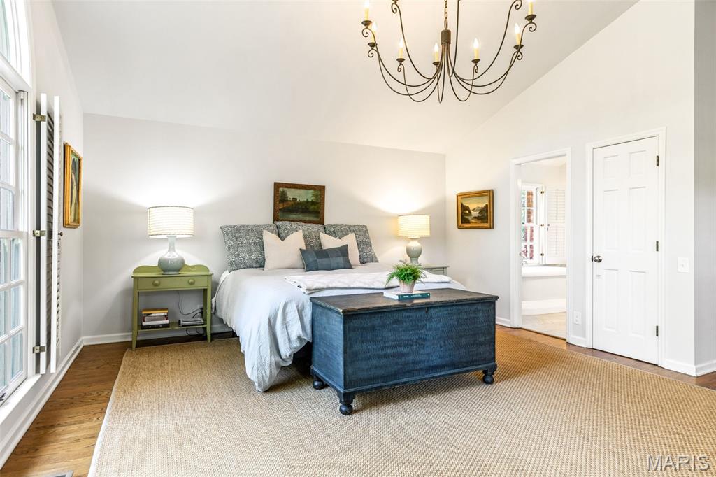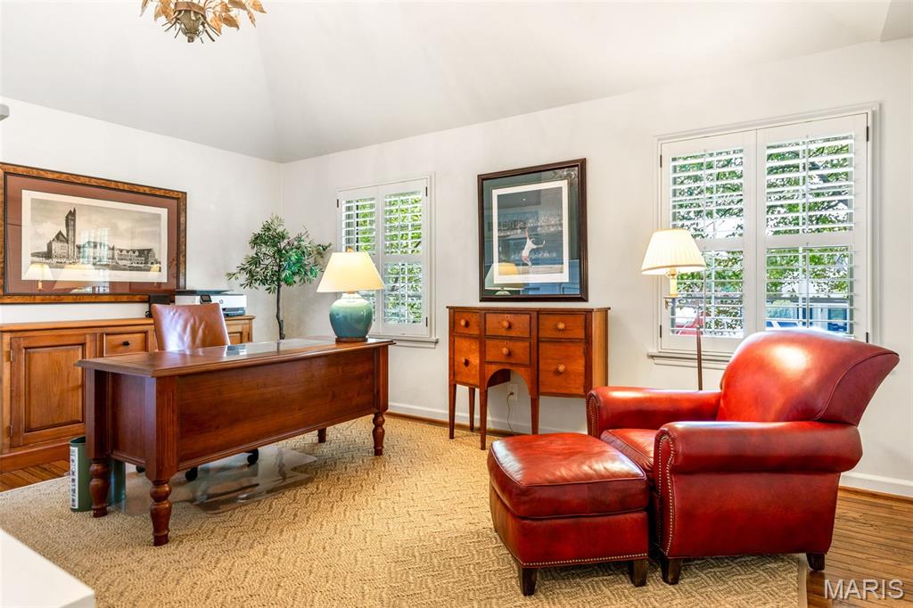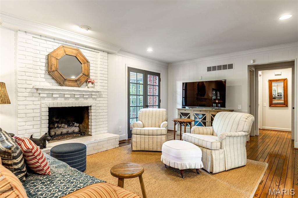 Nestled on one of Frontenac’s most sought-after streets, this beautifully appointed home and private lot offer timeless style and exceptional livability. A gracious two-story foyer with marble flooring sets the tone, opening to an elegant living room with fireplace and striking beamed ceiling, as well as a refined dining room ideal for entertaining. The main-floor primary suite is a true retreat with direct access to a peaceful patio sitting area, and a beautifully renovated bath with a stand-alone soaking tub, separate shower, and a custom walk-in closet. The well-designed kitchen features granite countertops, custom cabinetry, a center island, and premium stainless steel appliances. The spacious family room with gas fireplace and built-in bookcases seamlessly connects to a private brick patio with pergola and an expansive backyard. Private one acre lot, offering ample space for a swimming pool and ideal for indoor-outdoor living. A versatile main-floor office or den (optional bedroom) includes a fireplace and built-ins. Everything you need is on the main floor, including renovated laundry room. Upstairs, two additional bedrooms feature ample closet space and share a bath. Access to highly regarded Ladue schools. A rare opportunity to enjoy refined comfort, effortless entertaining, and fabulous family living in one of Frontenac’s most desirable locations.