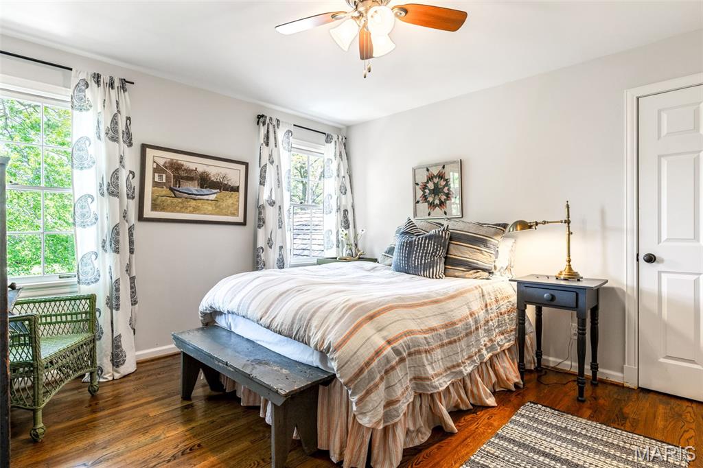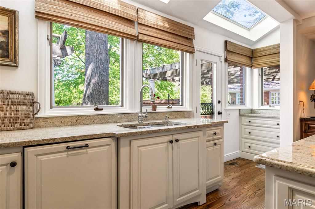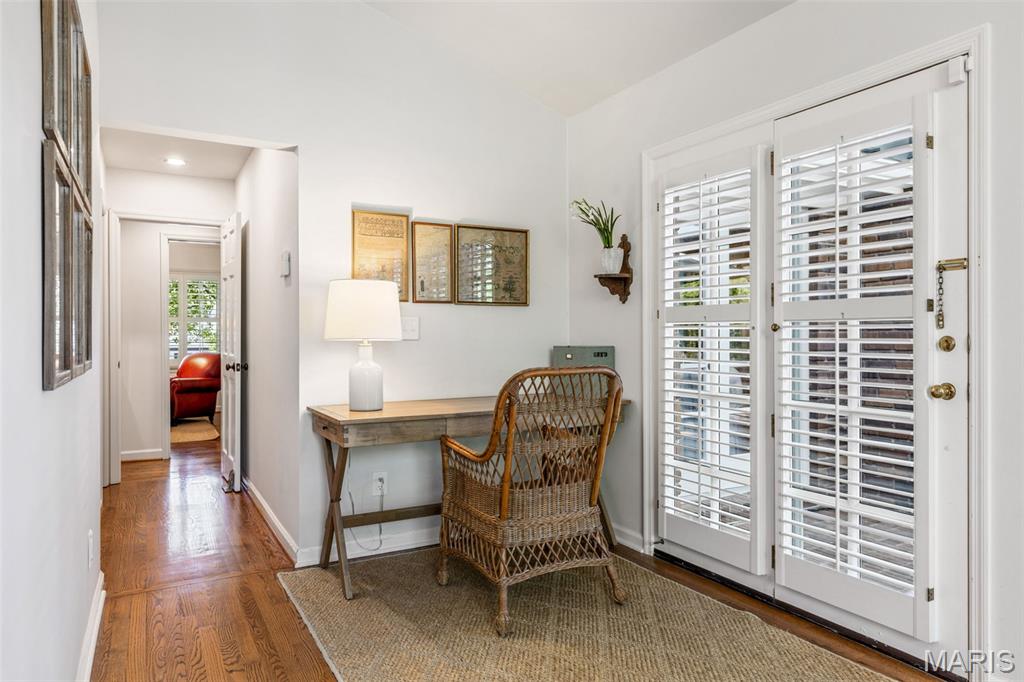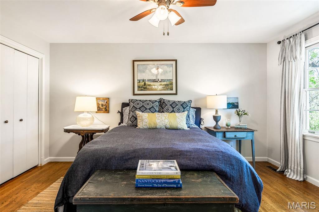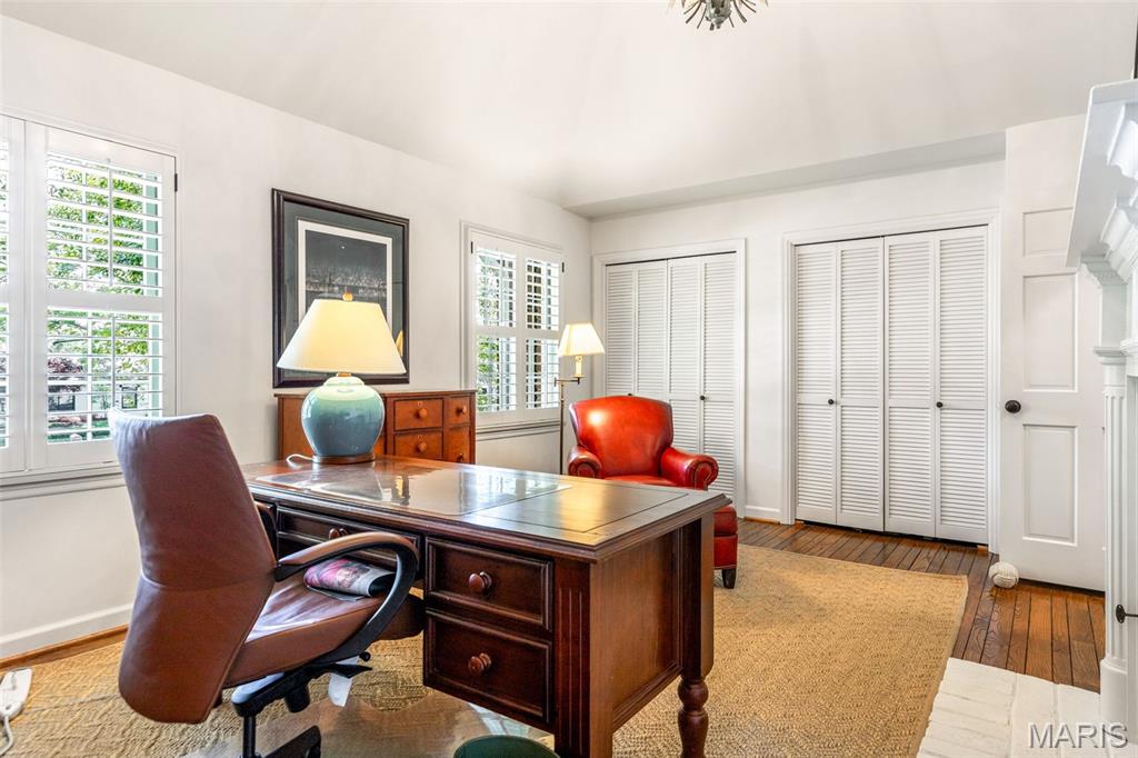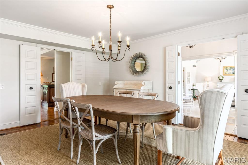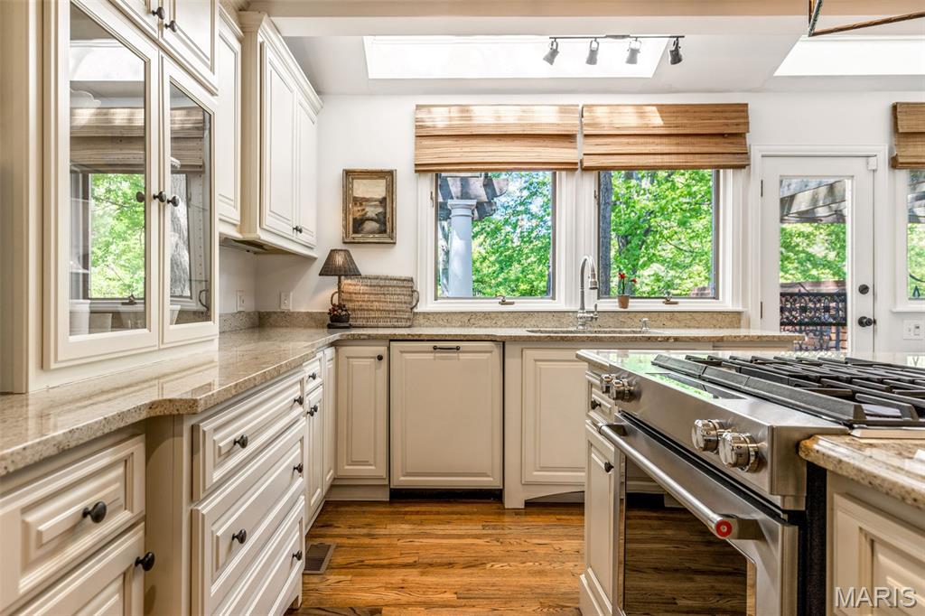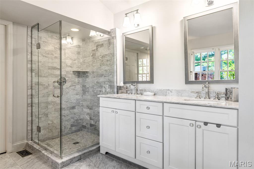Nestled on one of Frontenac’s most sought-after streets, this beautifully appointed home and private lot offer timeless style and exceptional livability. A gracious two-story foyer with marble flooring sets the tone, opening to an elegant living room with fireplace and striking beamed ceiling, as well as a refined dining room ideal for entertaining. The main-floor primary suite is a true retreat with direct access to a peaceful patio sitting area, and a beautifully renovated bath with a stand-alone soaking tub, separate shower, and a custom walk-in closet. The well-designed kitchen features granite countertops, custom cabinetry, a center island, and premium stainless steel appliances. The spacious family room with gas fireplace and built-in bookcases seamlessly connects to a private brick patio with pergola and an expansive backyard. Private one acre lot, offering ample space for a swimming pool and ideal for indoor-outdoor living. A versatile main-floor office or den (optional bedroom) includes a fireplace and built-ins. Everything you need is on the main floor, including renovated laundry room. Upstairs, two additional bedrooms feature ample closet space and share a bath. Access to highly regarded Ladue schools. A rare opportunity to enjoy refined comfort, effortless entertaining, and fabulous family living in one of Frontenac’s most desirable locations.