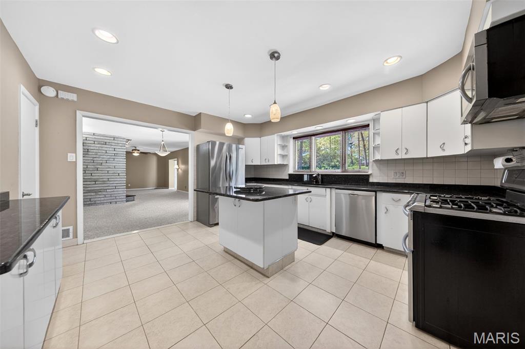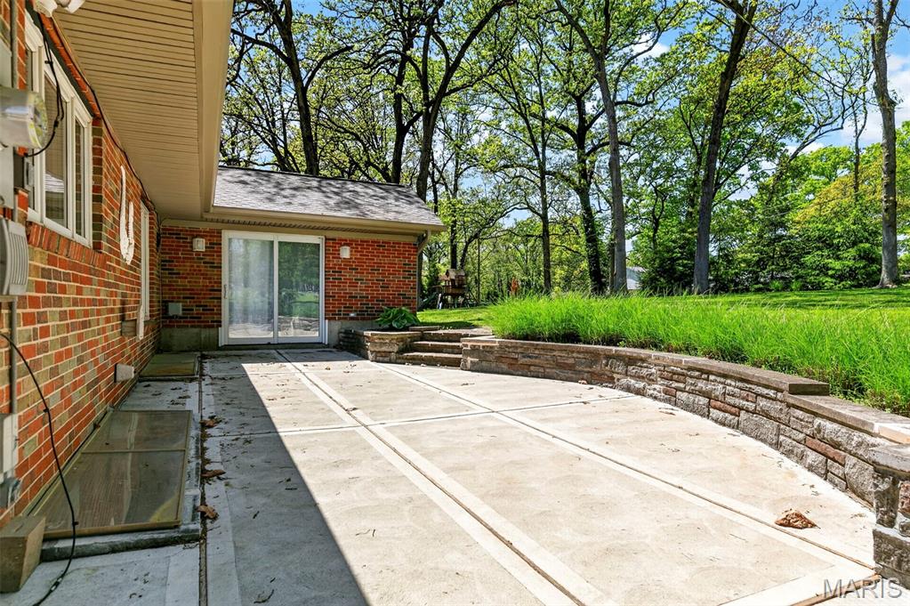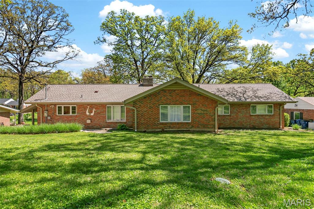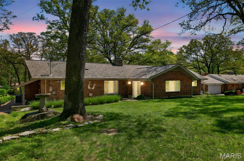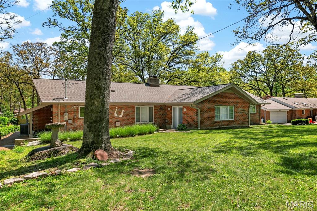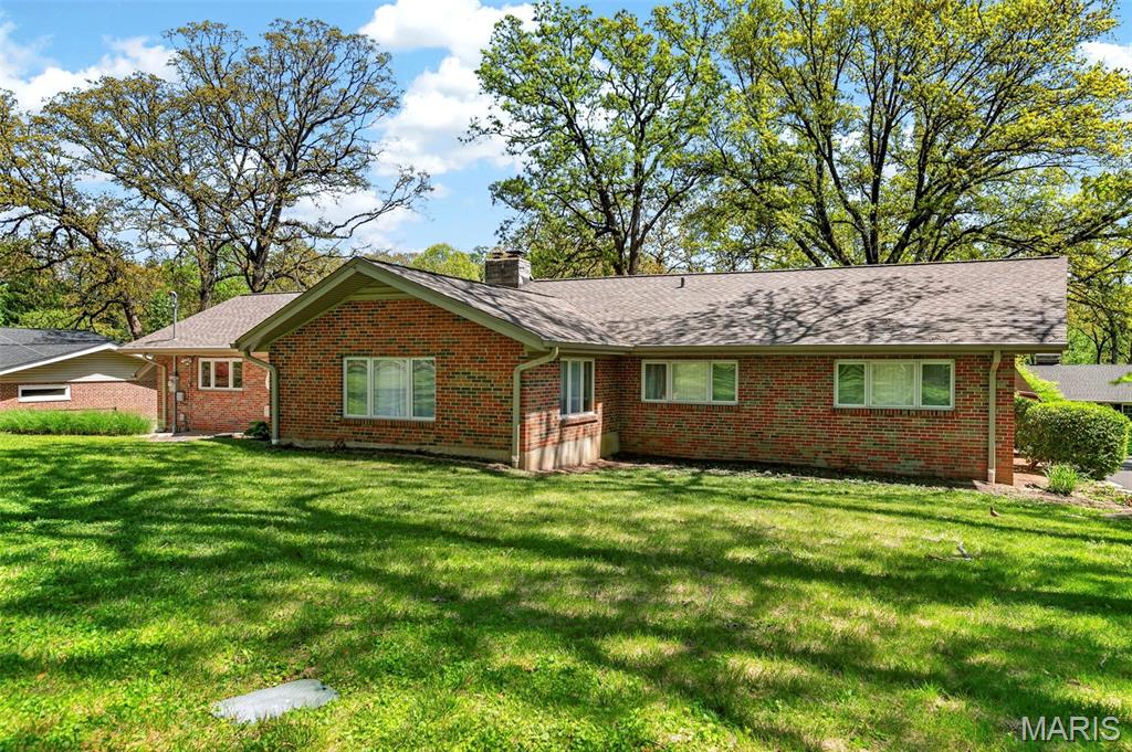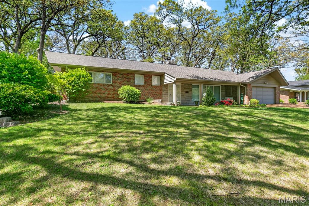 Discover a truly unique floor plan set on a beautiful, open lot just under half an acre in the heart of Grantwood Village, within the highly sought-after Lindbergh School District. This 3-bedroom, 2-bath brick home offers a rare blend of mid-century character and modern updates, all surrounded by exceptional outdoor space. The kitchen is a standout, featuring granite countertops, white retro steel cabinetry, stainless steel appliances, a center island, pantry, and recessed lighting, perfectly blending vintage charm with modern convenience. Both bathrooms have been tastefully updated, including one with a delightful retro garden tub that adds character you won’t find in today’s new builds. An exposed aggregate driveway leads to the two car garage and enhances curb appeal, complemented by covered soffits and fascia and a full irrigation system for easy maintenance. Inside, the spacious family room features a walk-out to the expansive backyard, creating a seamless connection to the outdoors. Enjoy entertaining or relaxing on the newer patio, overlooking the large, private yard with endless possibilities. With its generous lot size, distinctive design, and desirable location, this home offers a rare opportunity to own something truly special in one of the area’s most established communities.