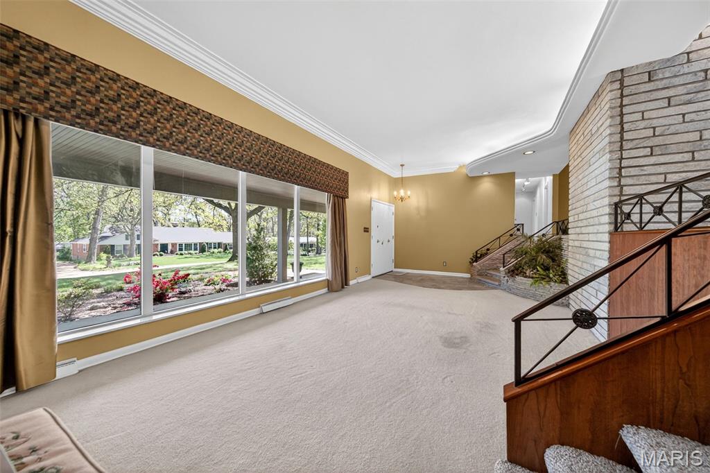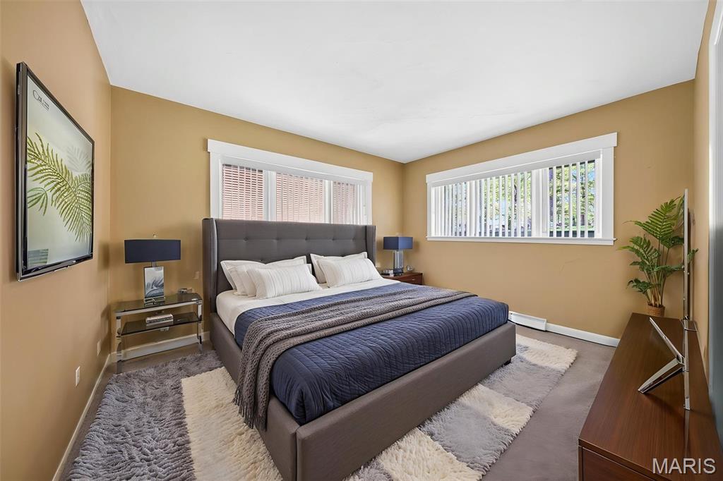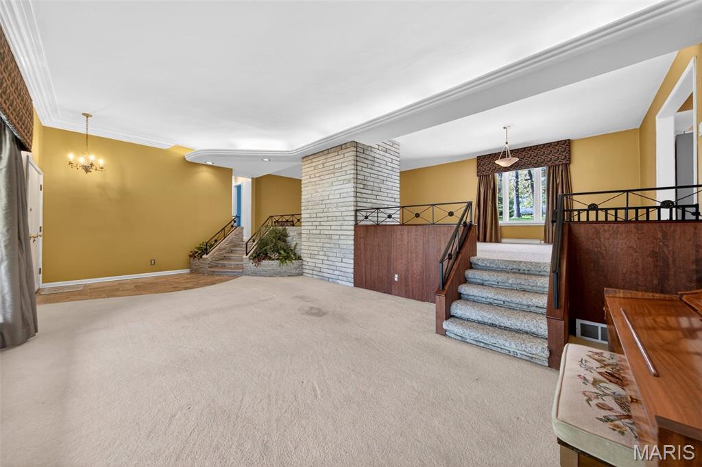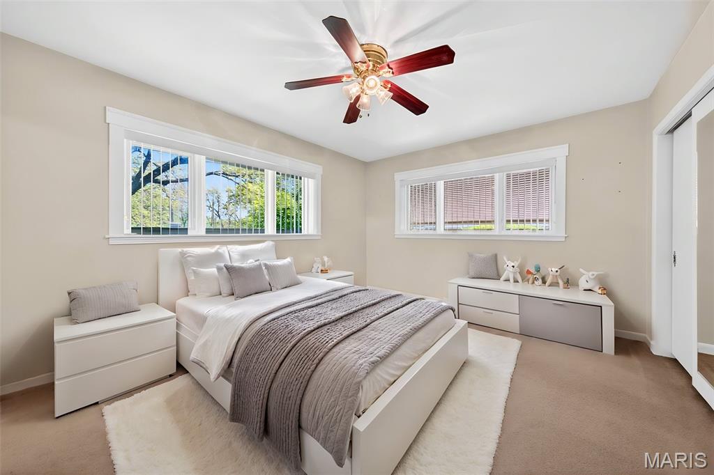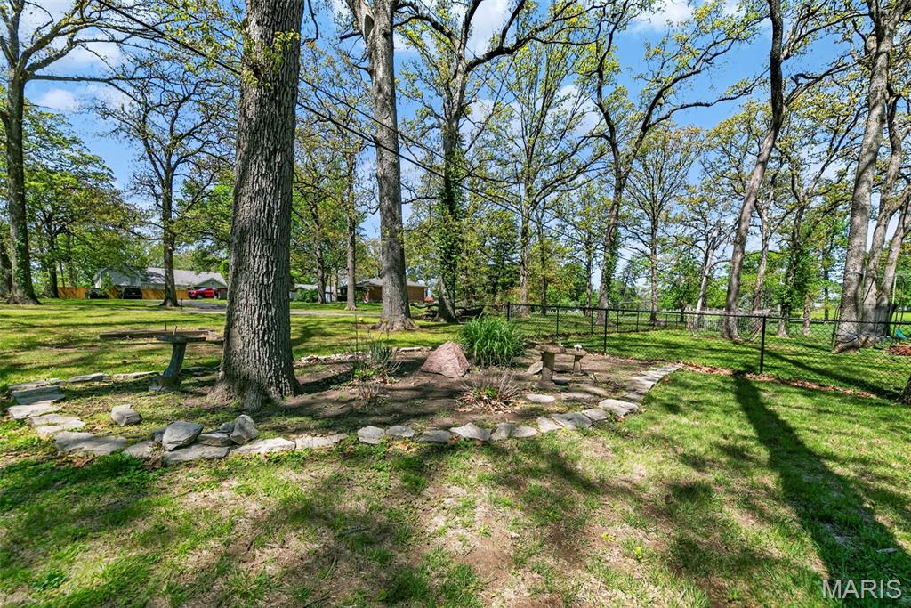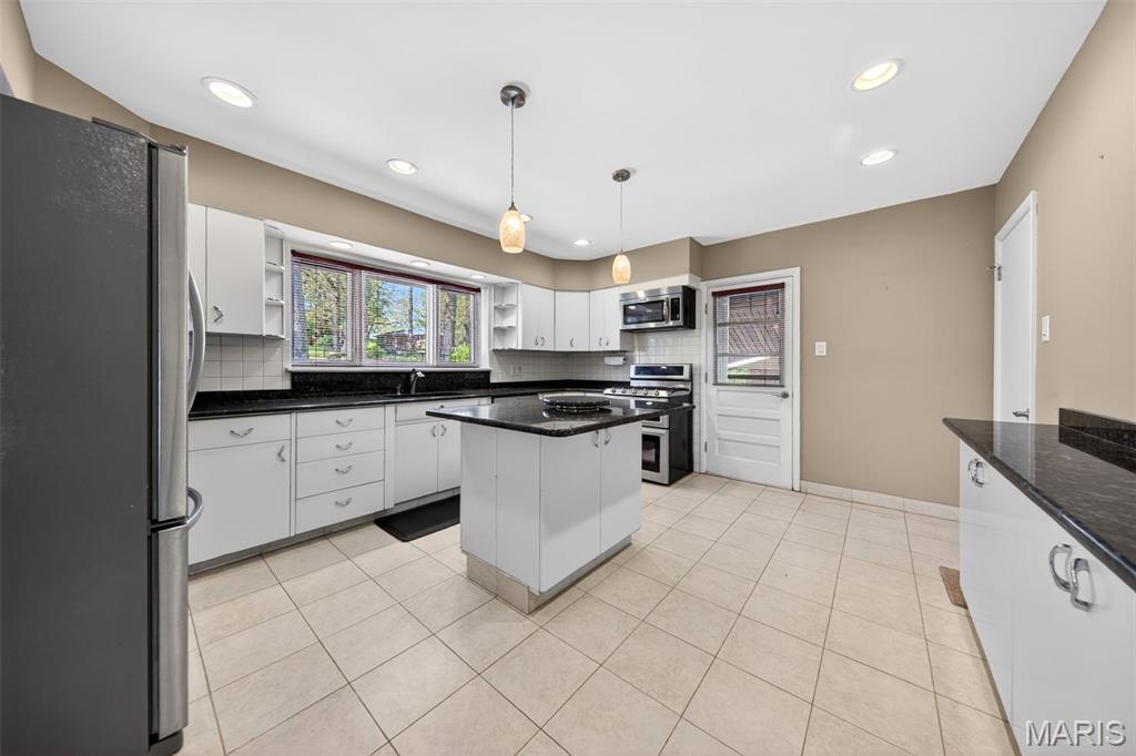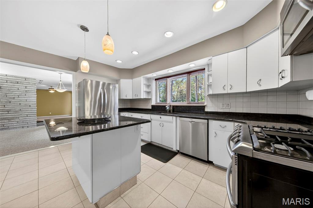 Discover a truly unique floor plan set on a beautiful, open lot just under half an acre in the heart of Grantwood Village, within the highly sought-after Lindbergh School District. This 3-bedroom, 2-bath brick home offers a rare blend of mid-century character and modern updates, all surrounded by exceptional outdoor space. The kitchen is a standout, featuring granite countertops, white retro steel cabinetry, stainless steel appliances, a center island, pantry, and recessed lighting, perfectly blending vintage charm with modern convenience. Both bathrooms have been tastefully updated, including one with a delightful retro garden tub that adds character you won’t find in today’s new builds. An exposed aggregate driveway leads to the two car garage and enhances curb appeal, complemented by covered soffits and fascia and a full irrigation system for easy maintenance. Inside, the spacious family room features a walk-out to the expansive backyard, creating a seamless connection to the outdoors. Enjoy entertaining or relaxing on the newer patio, overlooking the large, private yard with endless possibilities. With its generous lot size, distinctive design, and desirable location, this home offers a rare opportunity to own something truly special in one of the area’s most established communities.