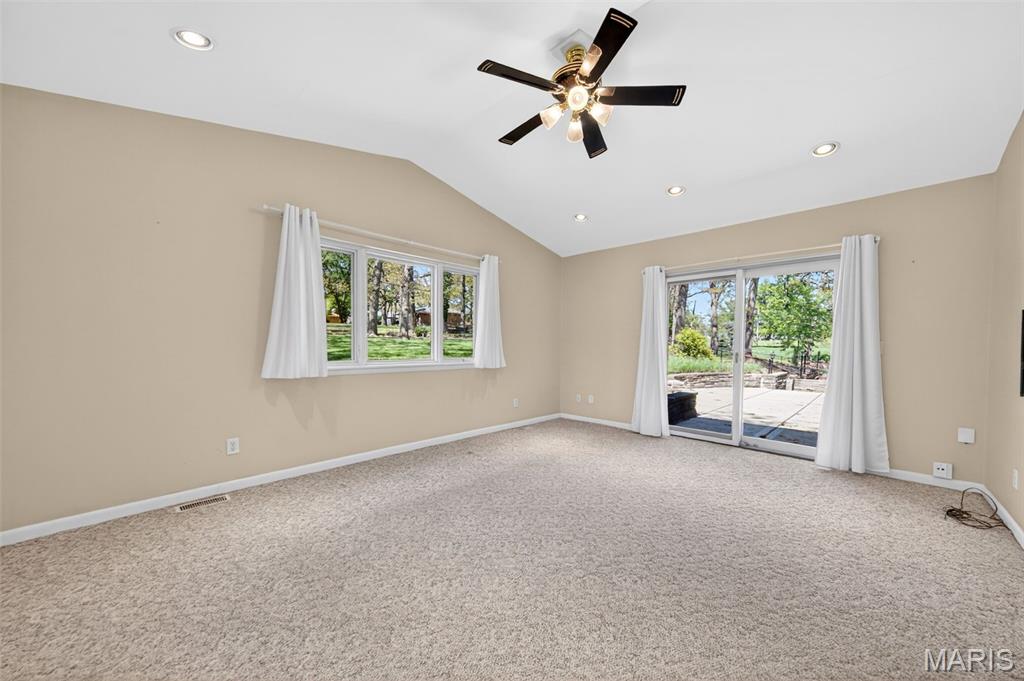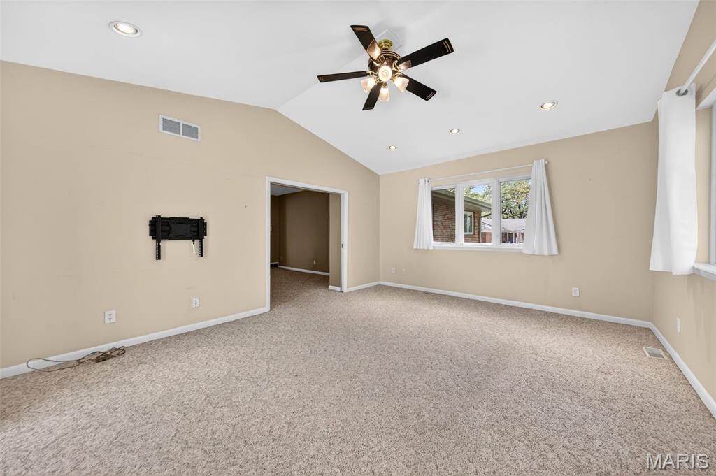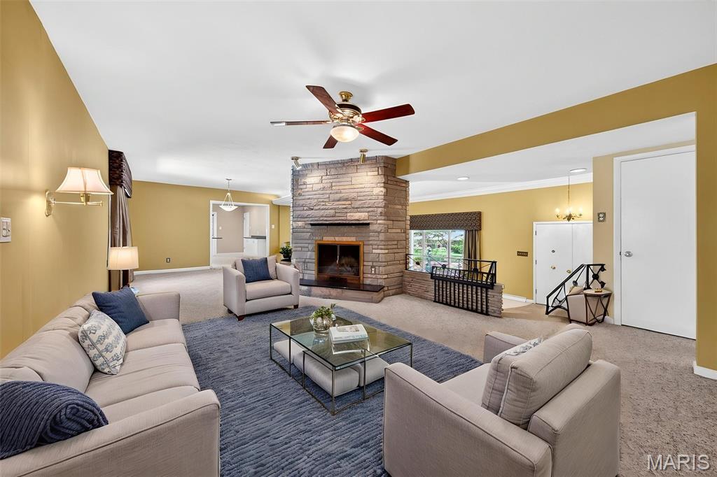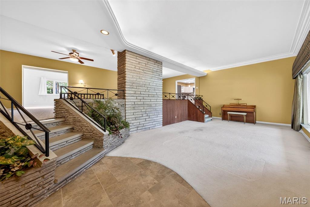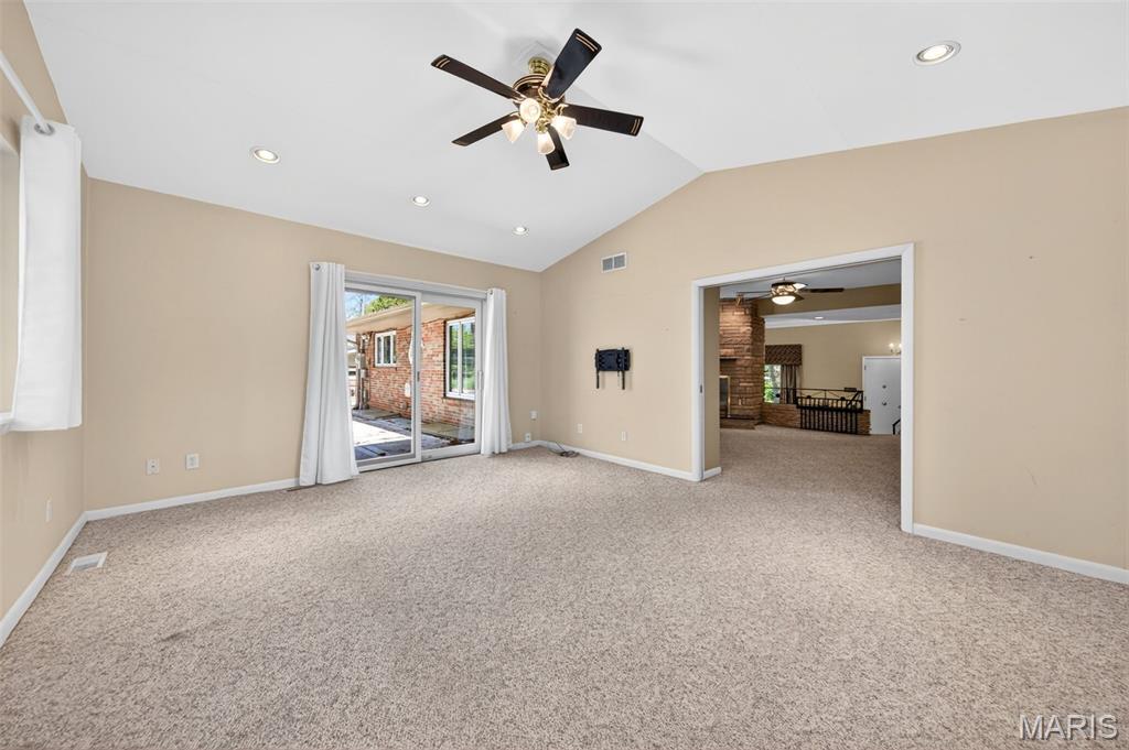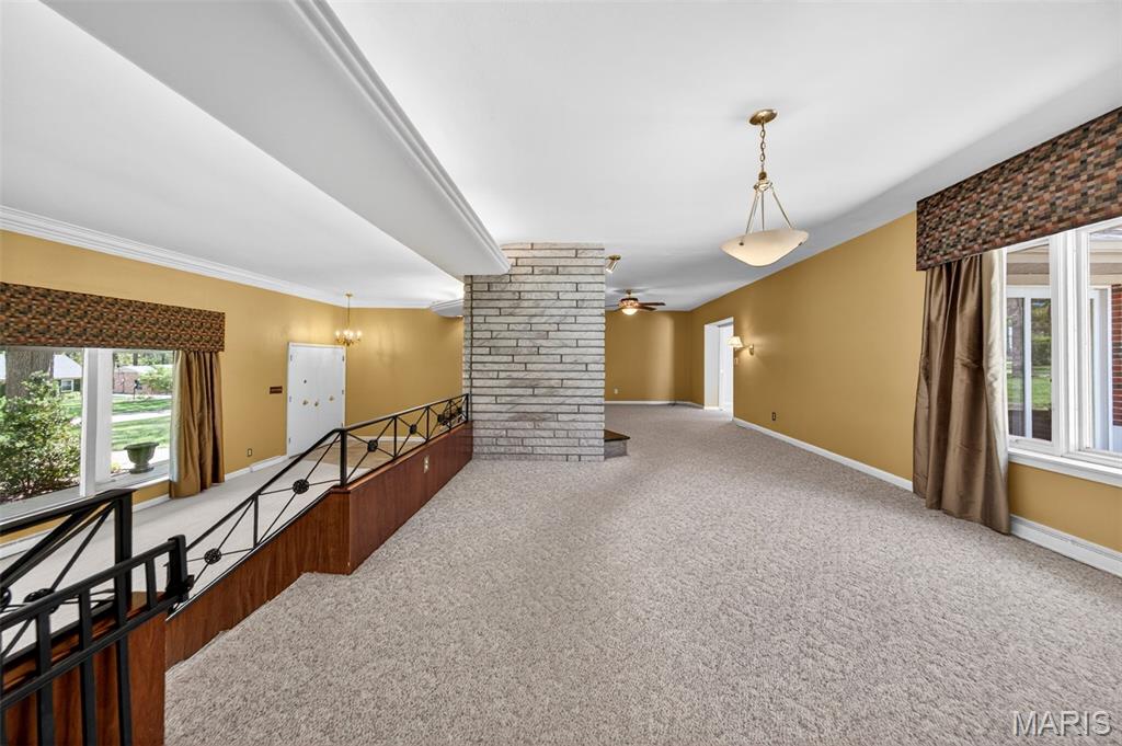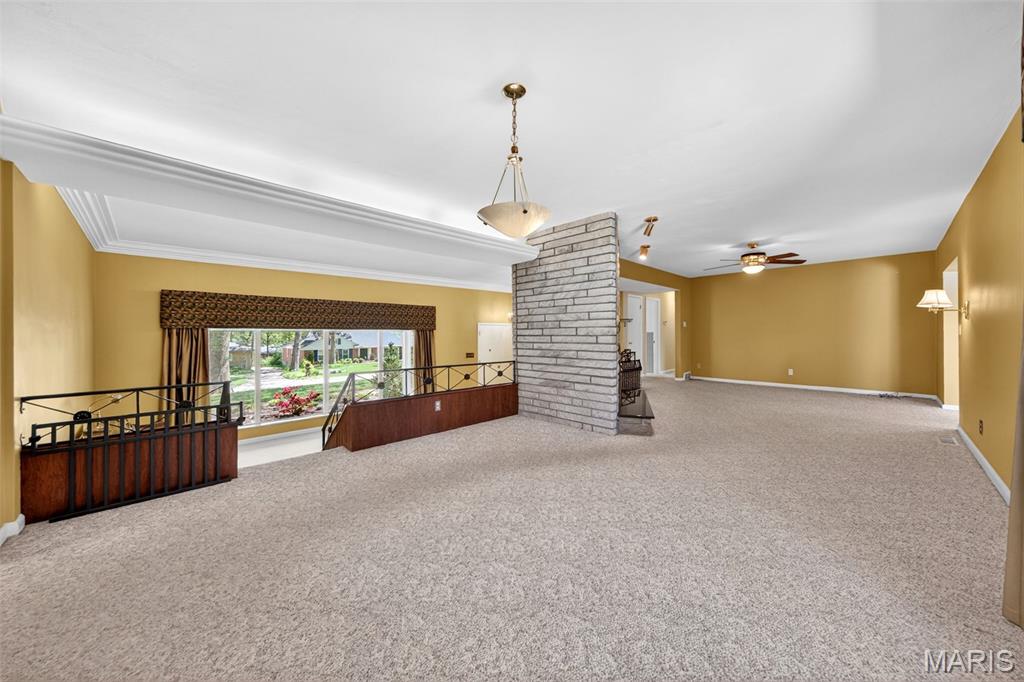 Discover a truly unique floor plan set on a beautiful, open lot just under half an acre in the heart of Grantwood Village, within the highly sought-after Lindbergh School District. This 3-bedroom, 2-bath brick home offers a rare blend of mid-century character and modern updates, all surrounded by exceptional outdoor space. The kitchen is a standout, featuring granite countertops, white retro steel cabinetry, stainless steel appliances, a center island, pantry, and recessed lighting, perfectly blending vintage charm with modern convenience. Both bathrooms have been tastefully updated, including one with a delightful retro garden tub that adds character you won’t find in today’s new builds. An exposed aggregate driveway leads to the two car garage and enhances curb appeal, complemented by covered soffits and fascia and a full irrigation system for easy maintenance. Inside, the spacious family room features a walk-out to the expansive backyard, creating a seamless connection to the outdoors. Enjoy entertaining or relaxing on the newer patio, overlooking the large, private yard with endless possibilities. With its generous lot size, distinctive design, and desirable location, this home offers a rare opportunity to own something truly special in one of the area’s most established communities.