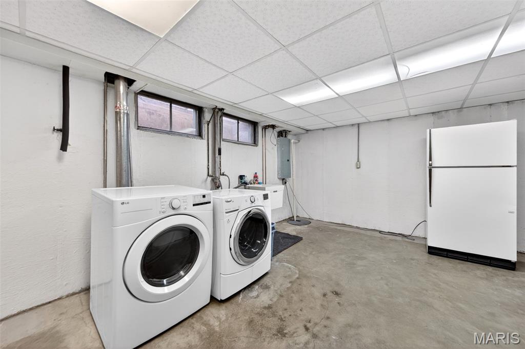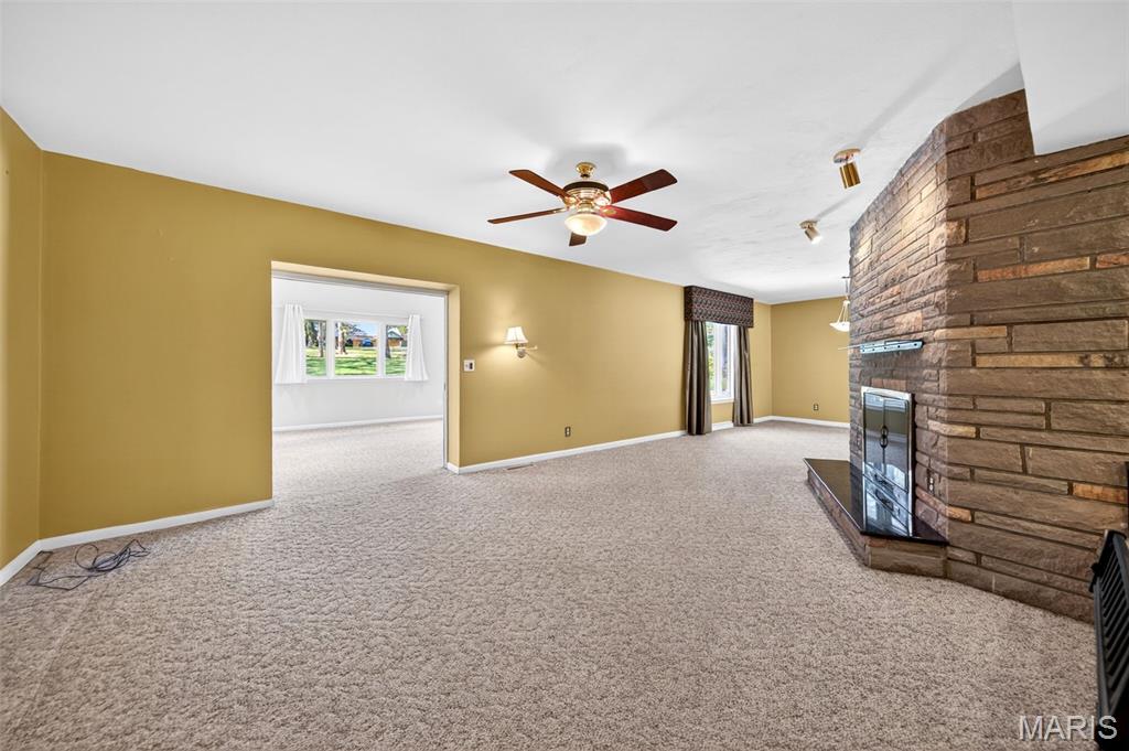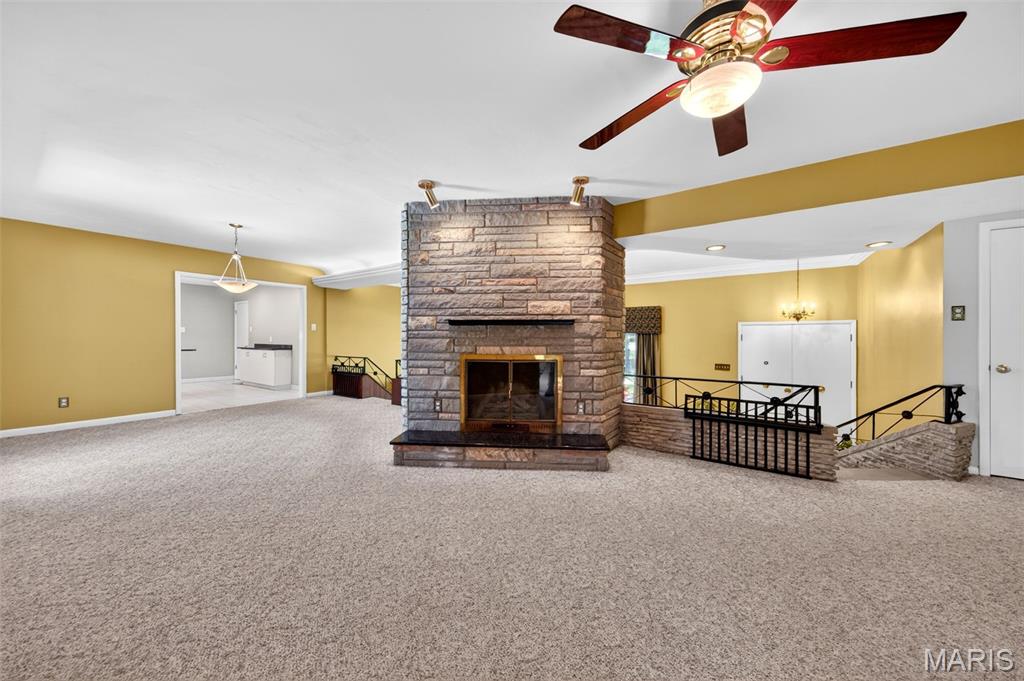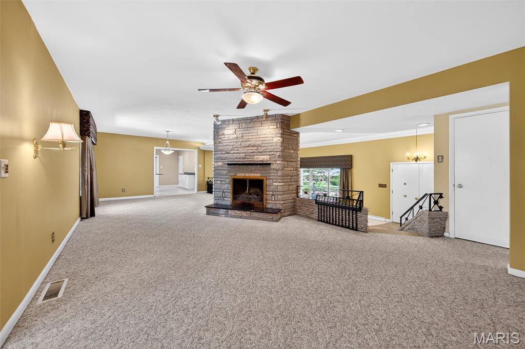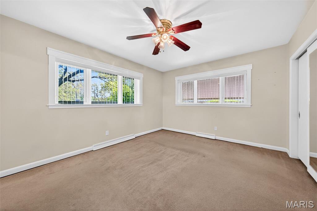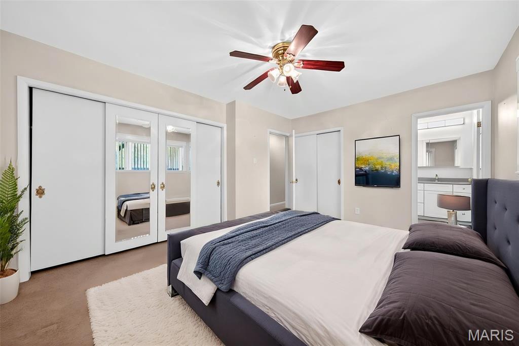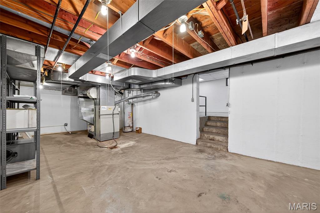 Discover a truly unique floor plan set on a beautiful, open lot just under half an acre in the heart of Grantwood Village, within the highly sought-after Lindbergh School District. This 3-bedroom, 2-bath brick home offers a rare blend of mid-century character and modern updates, all surrounded by exceptional outdoor space. The kitchen is a standout, featuring granite countertops, white retro steel cabinetry, stainless steel appliances, a center island, pantry, and recessed lighting, perfectly blending vintage charm with modern convenience. Both bathrooms have been tastefully updated, including one with a delightful retro garden tub that adds character you won’t find in today’s new builds. An exposed aggregate driveway leads to the two car garage and enhances curb appeal, complemented by covered soffits and fascia and a full irrigation system for easy maintenance. Inside, the spacious family room features a walk-out to the expansive backyard, creating a seamless connection to the outdoors. Enjoy entertaining or relaxing on the newer patio, overlooking the large, private yard with endless possibilities. With its generous lot size, distinctive design, and desirable location, this home offers a rare opportunity to own something truly special in one of the area’s most established communities.