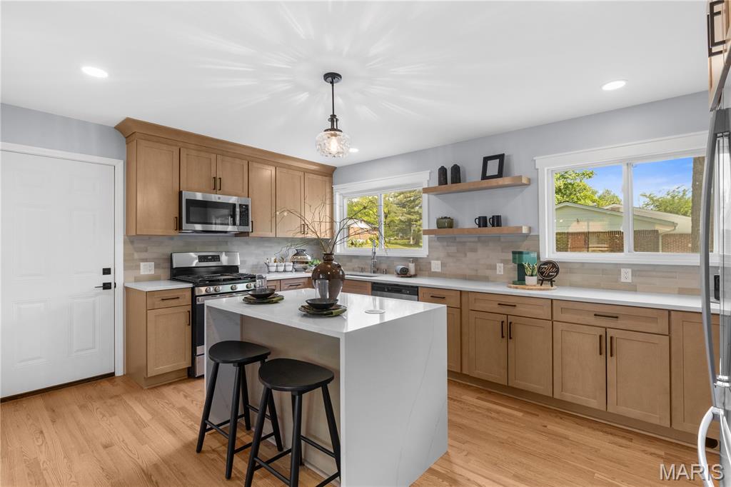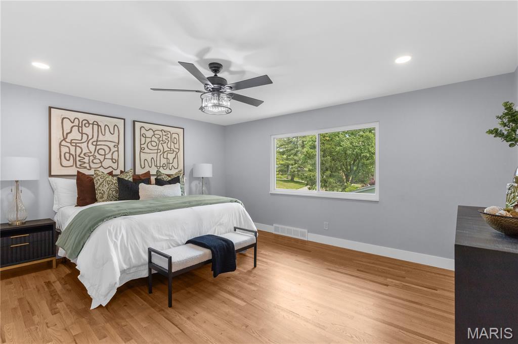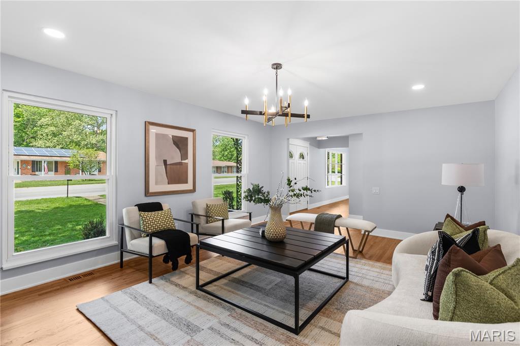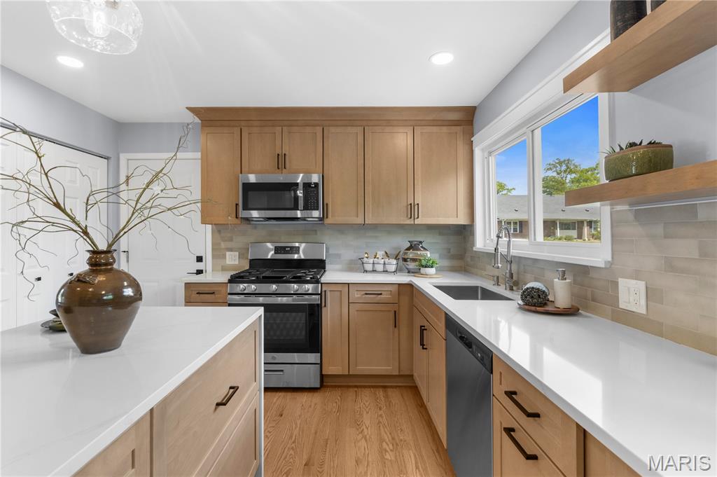 STUNNING Completely Renovated Two Story, 5 Bedroom Home, with almost 3000 finished square feet, in the highly desired Fernwood subdivision of Creve Coeur. The Main Floor features large Living and Dining Rooms with hardwood floors and updated lighting. The Kitchen is a masterpiece with custom cabinetry, solid surface countertops, center island with waterfall edge, NEW stainless-steel appliances, subway tile backsplash, and access to the 2-car attached garage. A Large Main Floor Family room with recessed lighting and access to the back patio and an updated Powder Room complete the first floor. The Second Floor has 5 Bedrooms and 2 Full Bathrooms including the large Primary Suite with walk-in closet and Primary Bathroom with NEW Vanity, dual sinks, NEW fixtures, and custom tiled shower. The walk-out Lower Level features another 600+ square feet of living space with a large Rec Room, 3rd full bathroom, and laundry and storage areas. Beautifully Refinished Hardwood Floors throughout. NEW Lighting, Doors, and fixtures throughout. NEW Sewer Lateral. NEW HVAC. NEW Electrical Panel, Wiring, Switches/Plugs. NEW Siding. Corner Lot adjoins common ground. Parkway Schools. Absolute MUST SEE!