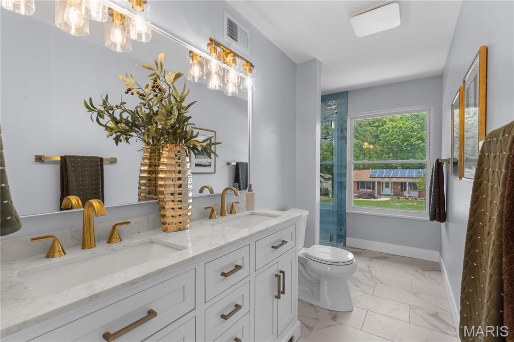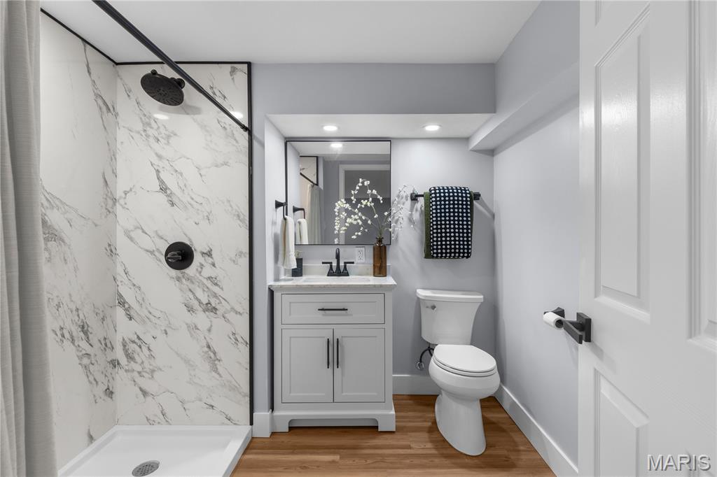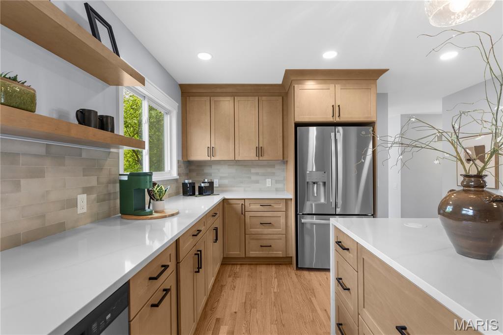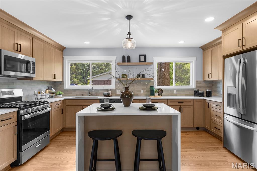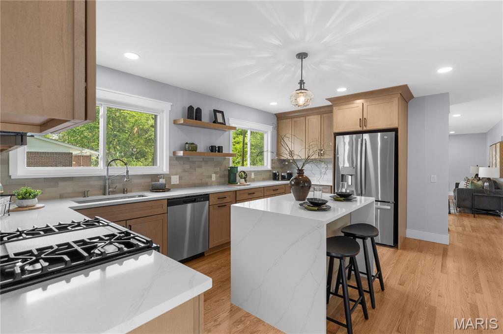 STUNNING Completely Renovated Two Story, 5 Bedroom Home, with almost 3000 finished square feet, in the highly desired Fernwood subdivision of Creve Coeur. The Main Floor features large Living and Dining Rooms with hardwood floors and updated lighting. The Kitchen is a masterpiece with custom cabinetry, solid surface countertops, center island with waterfall edge, NEW stainless-steel appliances, subway tile backsplash, and access to the 2-car attached garage. A Large Main Floor Family room with recessed lighting and access to the back patio and an updated Powder Room complete the first floor. The Second Floor has 5 Bedrooms and 2 Full Bathrooms including the large Primary Suite with walk-in closet and Primary Bathroom with NEW Vanity, dual sinks, NEW fixtures, and custom tiled shower. The walk-out Lower Level features another 600+ square feet of living space with a large Rec Room, 3rd full bathroom, and laundry and storage areas. Beautifully Refinished Hardwood Floors throughout. NEW Lighting, Doors, and fixtures throughout. NEW Sewer Lateral. NEW HVAC. NEW Electrical Panel, Wiring, Switches/Plugs. NEW Siding. Corner Lot adjoins common ground. Parkway Schools. Absolute MUST SEE!