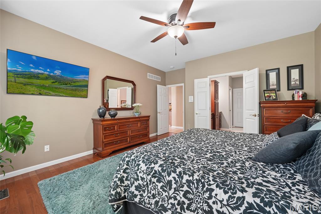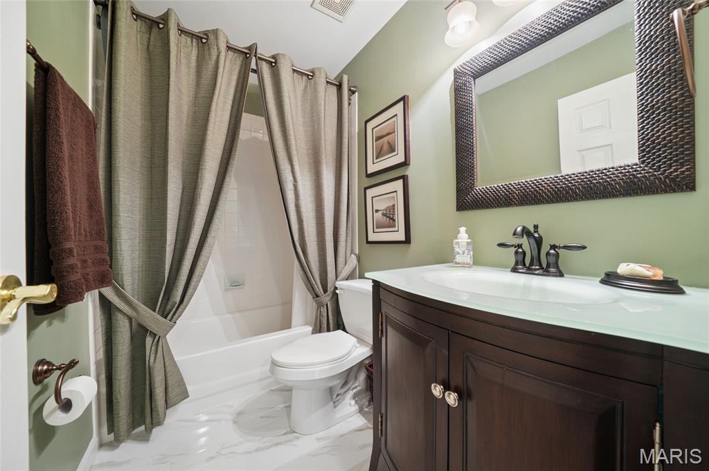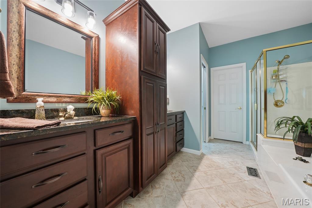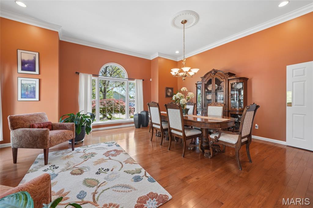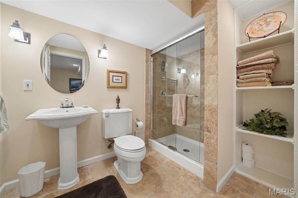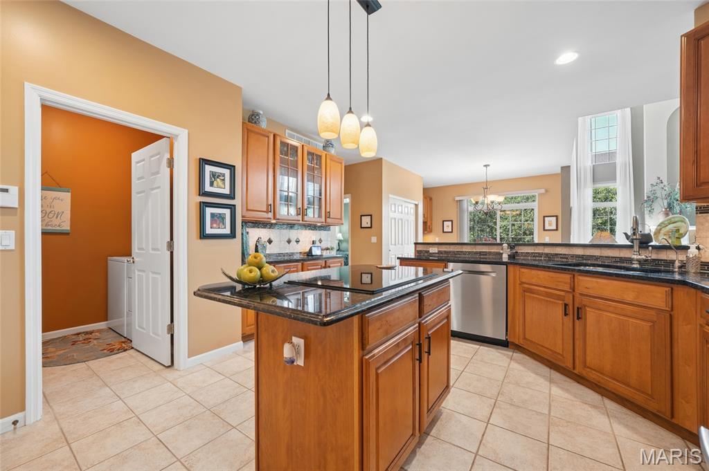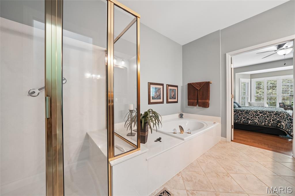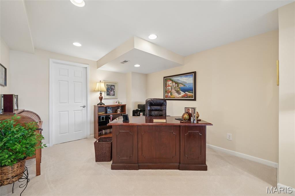Sophisticated villa living in the heart of Chesterfield! Discover this stunning villa, perfectly situated for a lifestyle of convenience and comfort. Boasting many updates and an open floor plan, this home is designed for both entertaining and effortless daily living. The heart of the home is a magnificent two-story great room, where floor-to-ceiling windows bathe the space in natural light. Rich wood floors flow seamlessly toward a cozy gas fireplace, creating an inviting atmosphere. For formal gatherings, the dining and living room combination impresses with crown molding, soaring ceilings, and expansive windows. The kitchen is as functional as it is beautiful, featuring a center island and sleek smooth cooktop, microwave/convection double oven, tile backsplash and under cabinet lighting. Functional extras include a planning desk and a bright breakfast room that opens directly to your private patio and a tree lined backyard. Retreat to the main floor primary bedroom suite, featuring warm hardwood floors, bay window, plantation shutters and an updated bath. Enjoy dual sinks, a vanity with abundant storage, soaking tub, separate shower and a large walk-in closet. The main level is completed by a half bath and a spacious laundry room with a dedicated closet and extra storage/hanging space. An open staircase leads to the second floor, where a versatile loft overlooks the great room. This space is elevated by a built-in bookcase and entertainment center, perfect for a home library or media hub. Two additional spacious bedrooms—each featuring plantation shutters—share an updated full bath with tiled floor and tub surround. The lower level expands your living space with a family room and a third updated full bath, while still leaving plenty of unfinished area for all your storage needs. Peace of mind comes standard with zoned HVAC, newer windows and a newer roof. Minutes away from shopping and dining, the amphitheater and quick 40/64 access for an easy commute in this convenient Chesterfield location! Welcome home!