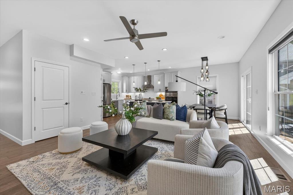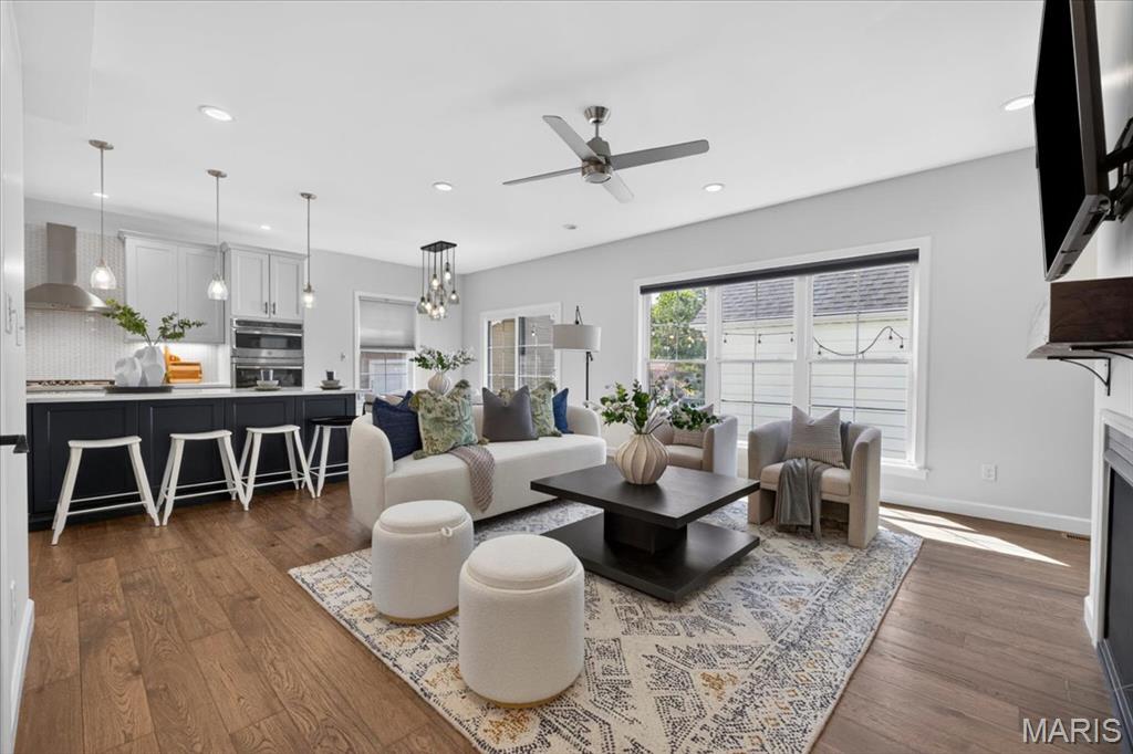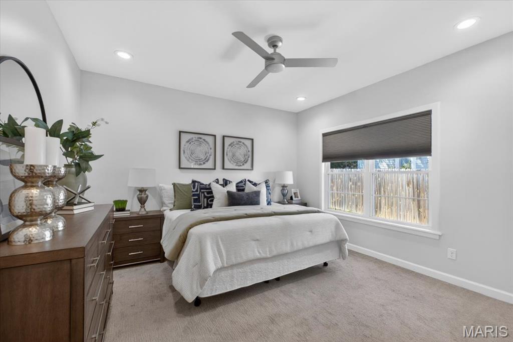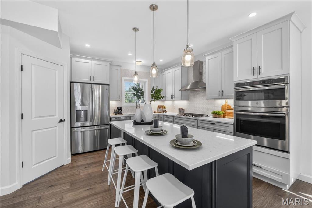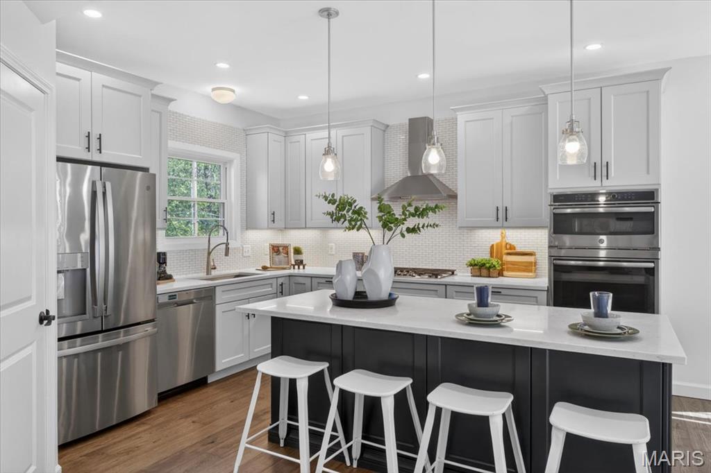 Welcome home to this absolutely stunning 1.5-story, 5-bedroom, 3.5-bath home, perfectly situated in the highly sought after Glendale area. At just 6 years old, this home offers the ideal blend of modern luxury and timeless design. Step inside to an impressive open floor plan filled with natural light and designed for both everyday living and effortless entertaining. The gorgeous chef’s kitchen features 42” cabinetry, sleek quartz countertops, stainless steel appliances, and a built-in wall oven and microwave, creating a space that is as functional as it is beautiful. The main-floor primary suite is a true retreat, showcasing a spa like bathroom complete with double vanity sinks, a separate soaking tub and walk-in shower, a towel warmer, and a private water closet—designed for ultimate comfort and relaxation. Upstairs bedrooms feature spacious walk-in closets, providing exceptional storage. Rich hardwood floors flow throughout the main level and into the upstairs foyer, adding warmth and elegance. Enjoy the convenience of main floor laundry and thoughtfully designed living spaces throughout. The finished lower level is truly exceptional, offering a spacious family room with a cozy gas fireplace, a private 5th bedroom, and a full bath, perfect for guests or extended living. Outside, you’ll find an oversized 2-car detached garage equipped with two electric car chargers, a rare and valuable feature for today’s lifestyle. The yard offers three raised garden beds, perfect for those who enjoy gardening without extensive upkeep. All of this in an unbeatable location, just minutes from parks, shopping, dining, and everything Glendale has to offer. Don’t miss this opportunity to own a beautifully maintained, move-in ready home offering the modern upgrades you’ve been searching for.