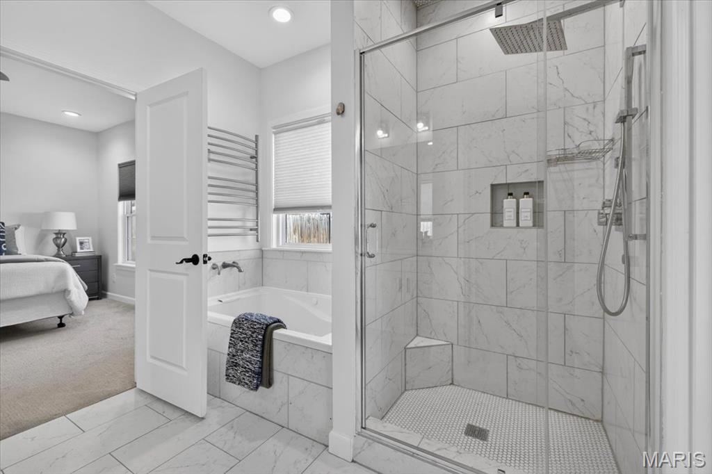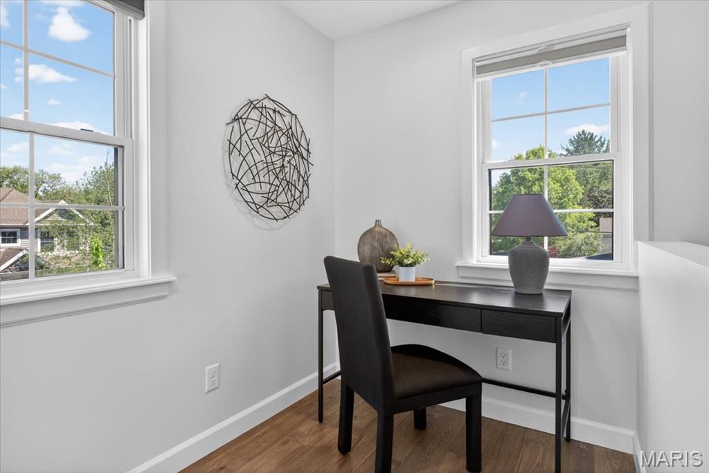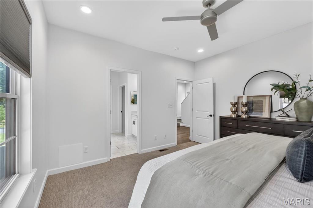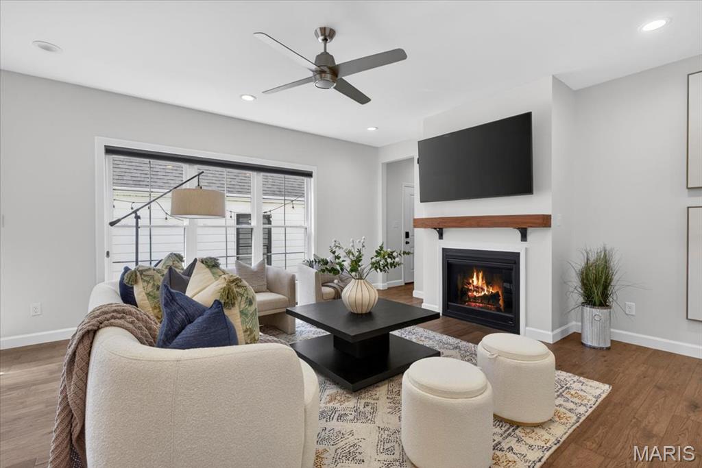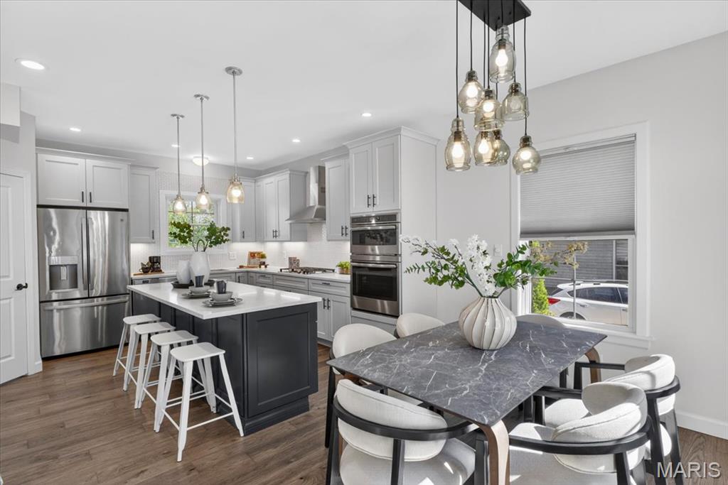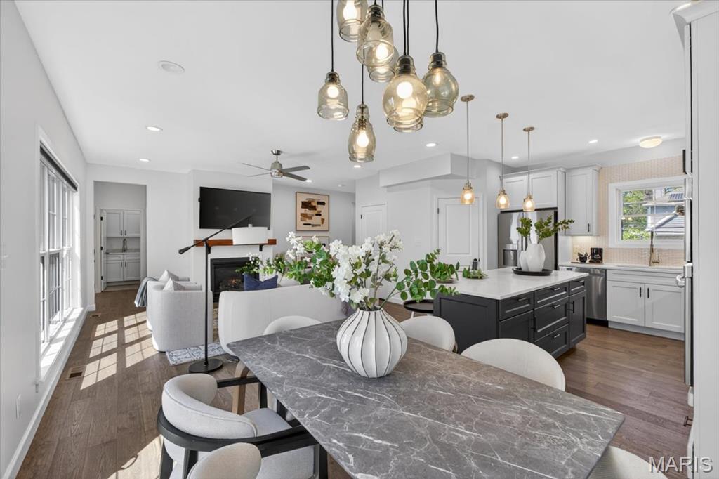 Welcome home to this absolutely stunning 1.5-story, 5-bedroom, 3.5-bath home, perfectly situated in the highly sought after Glendale area. At just 6 years old, this home offers the ideal blend of modern luxury and timeless design. Step inside to an impressive open floor plan filled with natural light and designed for both everyday living and effortless entertaining. The gorgeous chef’s kitchen features 42” cabinetry, sleek quartz countertops, stainless steel appliances, and a built-in wall oven and microwave, creating a space that is as functional as it is beautiful. The main-floor primary suite is a true retreat, showcasing a spa like bathroom complete with double vanity sinks, a separate soaking tub and walk-in shower, a towel warmer, and a private water closet—designed for ultimate comfort and relaxation. Upstairs bedrooms feature spacious walk-in closets, providing exceptional storage. Rich hardwood floors flow throughout the main level and into the upstairs foyer, adding warmth and elegance. Enjoy the convenience of main floor laundry and thoughtfully designed living spaces throughout. The finished lower level is truly exceptional, offering a spacious family room with a cozy gas fireplace, a private 5th bedroom, and a full bath, perfect for guests or extended living. Outside, you’ll find an oversized 2-car detached garage equipped with two electric car chargers, a rare and valuable feature for today’s lifestyle. The yard offers three raised garden beds, perfect for those who enjoy gardening without extensive upkeep. All of this in an unbeatable location, just minutes from parks, shopping, dining, and everything Glendale has to offer. Don’t miss this opportunity to own a beautifully maintained, move-in ready home offering the modern upgrades you’ve been searching for.