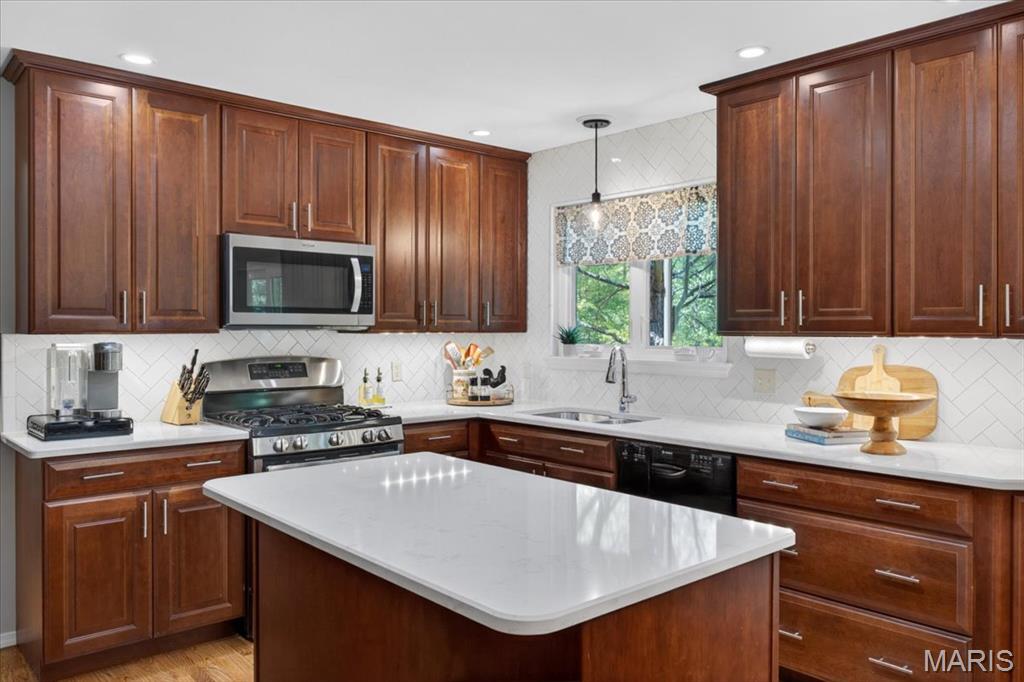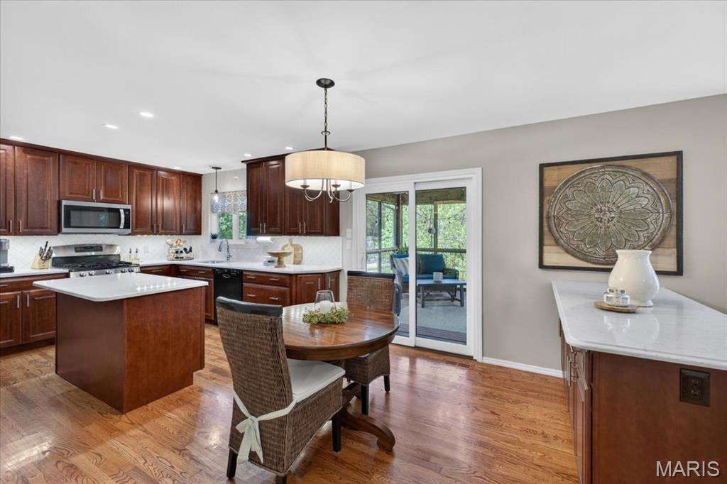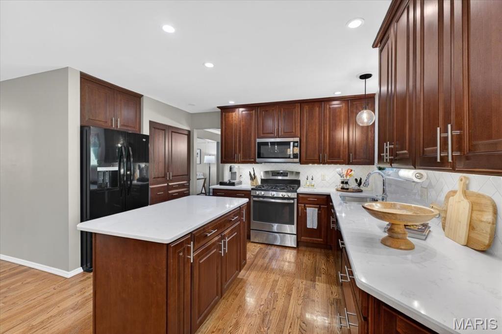 Stunningly updated home in desirable New England Village with access to community pool and tennis courts and great proximity to shopping and schools. This home stands out immediately with a hard to find feature- a three-car garage! Inside, the home has been thoughtfully updated and impeccably maintained, offering a move-in ready experience from day one. Fresh paint throughout creates a clean, elevated feel, while bathrooms have been beautifully refreshed, bringing a cohesive, modern touch to the entire home. The kitchen has been updated with new quartz countertops and tile backsplash, adding just the right amount of style, and flows seamlessly into the main living areas — perfect for both everyday living and entertaining. Upstairs, the primary suite is enhanced by a custom closet, maximizing both function and organization, along with three additional bedrooms and a full bath. The walk out finished lower level offers a large rec room, bathroom, workshop, and plenty of storage. Step outside to a cozy screened-in porch and enjoy your brand new deck, creating the ideal space to relax or host in a setting that feels established and welcoming. With its combination of rare features, thoughtful updates, and true pride of ownership, this home rises above the rest!