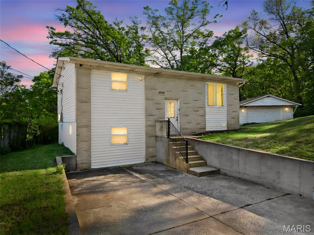 USDA FUNDING AVAILABLE! Welcome to this fully renovated two-bedroom, one-and-a-half-bath home offering a peaceful and serene view from the backyard. Enjoy watching native Missouri wildlife from the comfort of your own private outdoor space in this tranquil setting. This home has been taken down to the studs and completely rebuilt with extensive updates throughout, including a new roof, new septic system, upgraded electrical service with all new wiring, all new water lines and drains, a new water heater, new furnace and A/C, new flooring in the basement, new windows, new tub and shower, new toilets, new cabinets, new kitchen appliances, granite countertops, refinished hardwood floors, new electrical service in the garage, a new garage door, and added insulation in the attic. Gorgeos classic walnut colored hardwood flooring throughout most of the main level. This turnkey property provides modern comfort and reliability in a serene, wildlife-friendly environment.