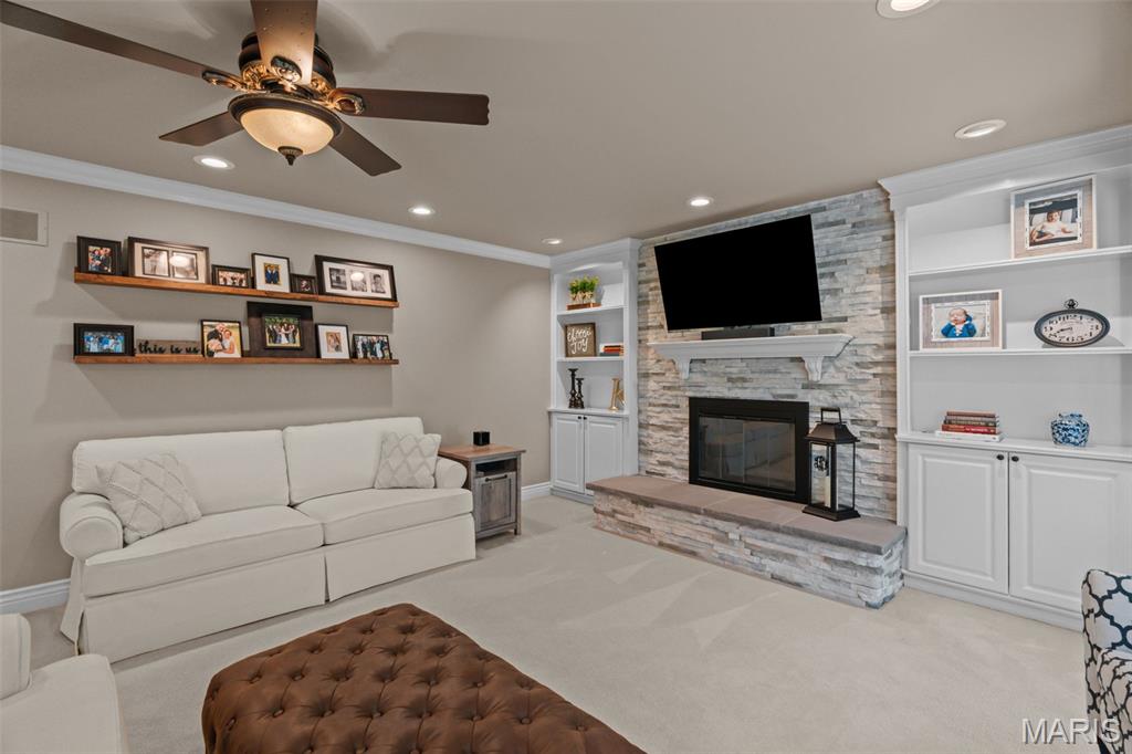 Set on a quiet, picturesque cul-de-sac street, this brick center hall plan home offers any buyer the opportunity to land a truly move-in ready home! Meticulously maintained by the same family for over 25 years, it's now time to create your own memories here! Picture yourself cooking in the updated kitchen w/ high end custom cabinetry, endless granite counters, stainless steel appliances, and an amazing view of the gorgeous backyard. The living room is spacious and flooded with natural light from floor to ceiling. Gather around the stone, wood burning fireplace flanked by custom white built-ins. Upstairs you'll find the vaulted primary en suite complete with walk-in closet featuring a custom closet system and a luxurious spa-like bathroom. The bathroom was thoughtfully remodeled and features a free standing soaking tub, glass and tile shower, as well as a spacious double vanity. 3 additional bedrooms and another updated hall bath complete the upstairs and make for a tranquil space for family or visitors. The basement has been finished and is ready for entertaining, or getting cozy with a movie on the big screen! An additional area of finished flex space could be your next home office, gym, or kids play area. A full bathroom conveniently located in the basement, as well as plenty of storage in the unfinished area! Other amenities include an oversized two car garage, sprinkler systems to keep the exterior looking remarkable, and newer systems for peace of mind. 4814 King Andrew Park doesn't just offer amenities, it offers a lifestyle of fine finishes for those that want to spoil themselves and love the home they live in!