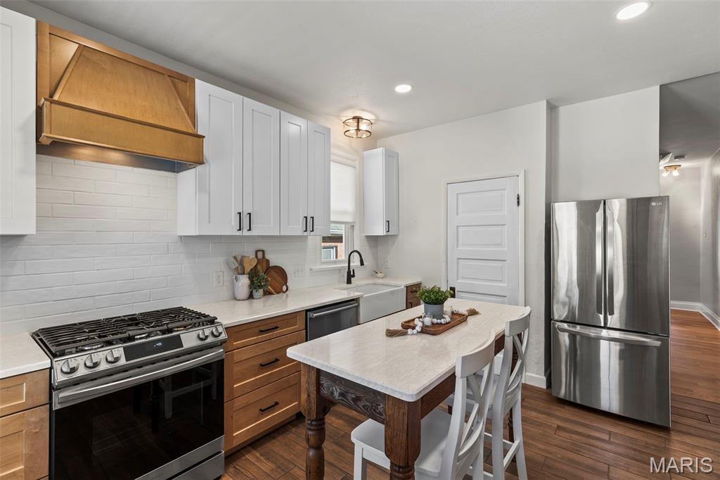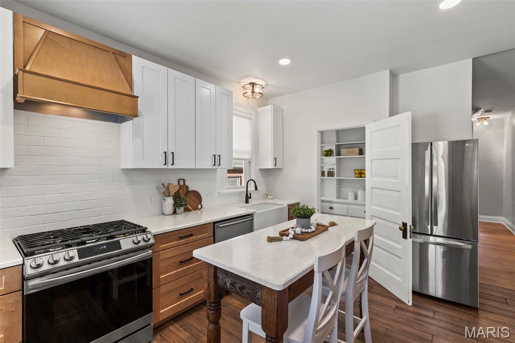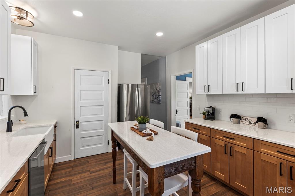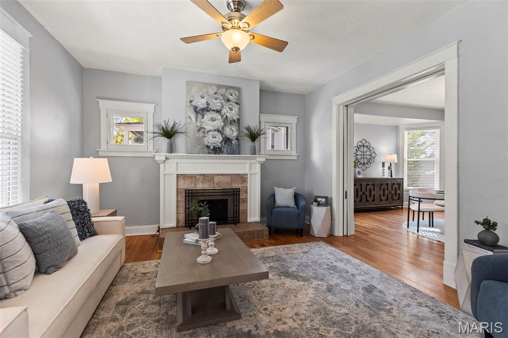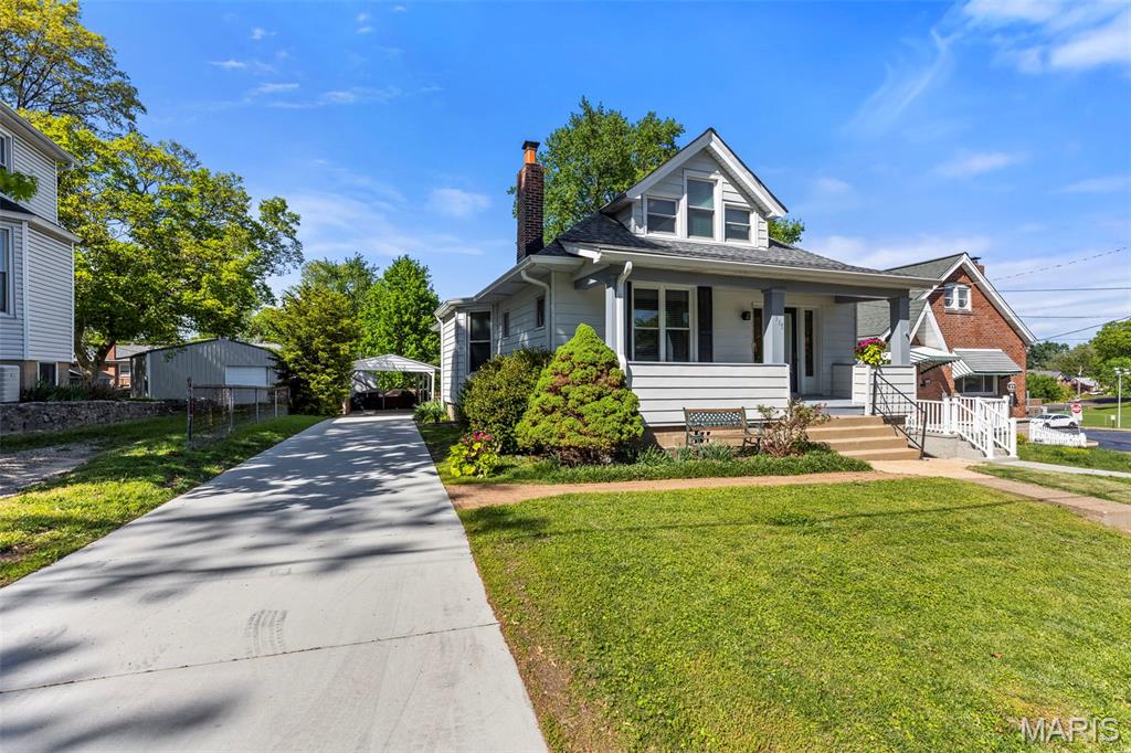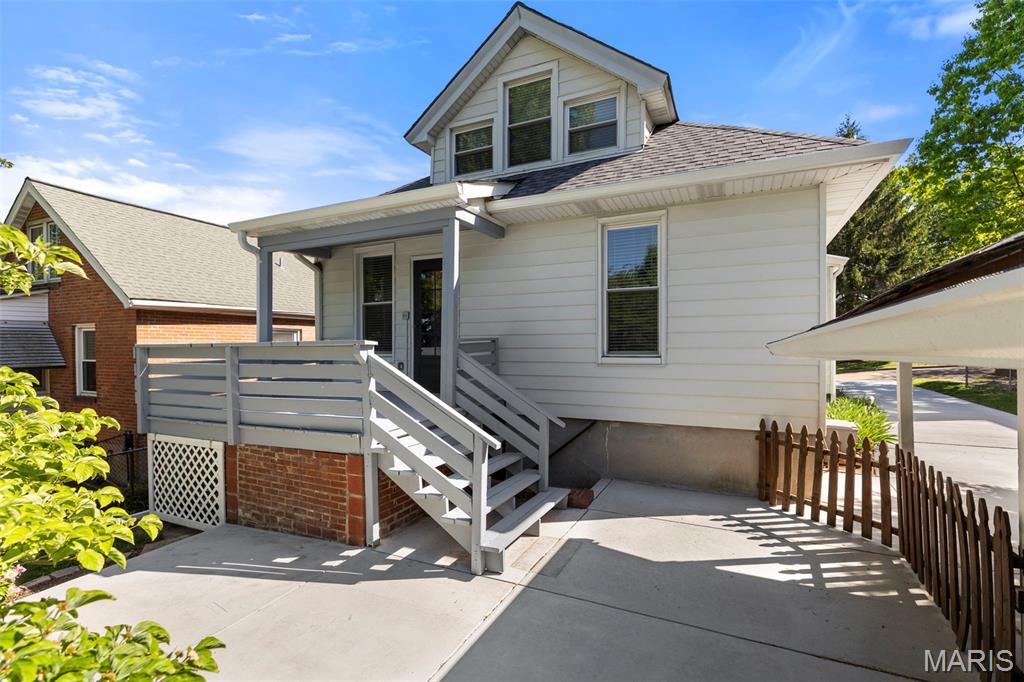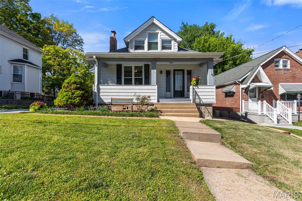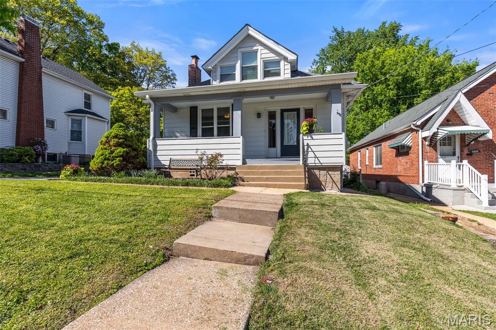 115 years old & remarkably young for her age! You are invited to become the 4th owner of this charming story & a half. The 3rd owners did their part: full kitchen remodel while maintaining the original pantry, roof, gutters, exterior paint, 200 amp electrical panel, driveway & patio, updated mantle/millwork on fireplace, removed MANY layers of wallpaper in the upstairs bedrooms (Thanks Mom!) & discovered a second pocket door that had been sealed away. Hardwood floors, 9 ft ceilings, original doors & millwork, exquisite stained glass window in entryway; all the good stuff! Main floor bedroom w/ 2 beds upstairs. Basement was "finished" at some point though now it needs your vision. A basement bathroom was decommissioned by original owners; great potential exists to add livable square footage to the walkout basement. Stroll to Ackfeld Park & the Shrewsbury Aquatics Center, extra convenient to Hwy 44 but easy to get to anything you need, close to "city living" but your streets will be plowed when the winter snow storms hit! Webster Schools! Looking forward to your visit to 7515 Lansdowne Avenue - be ready to fall in love!