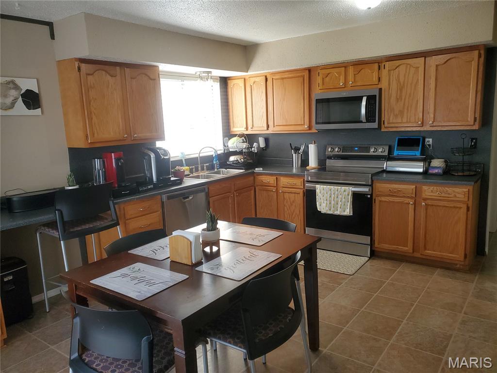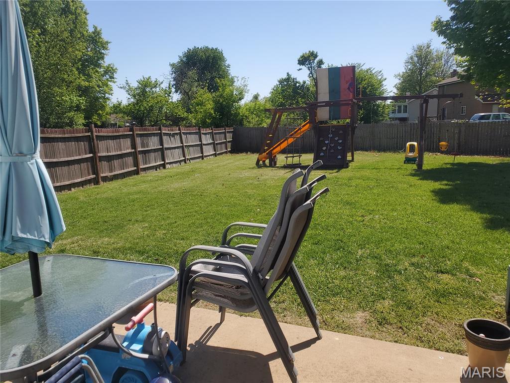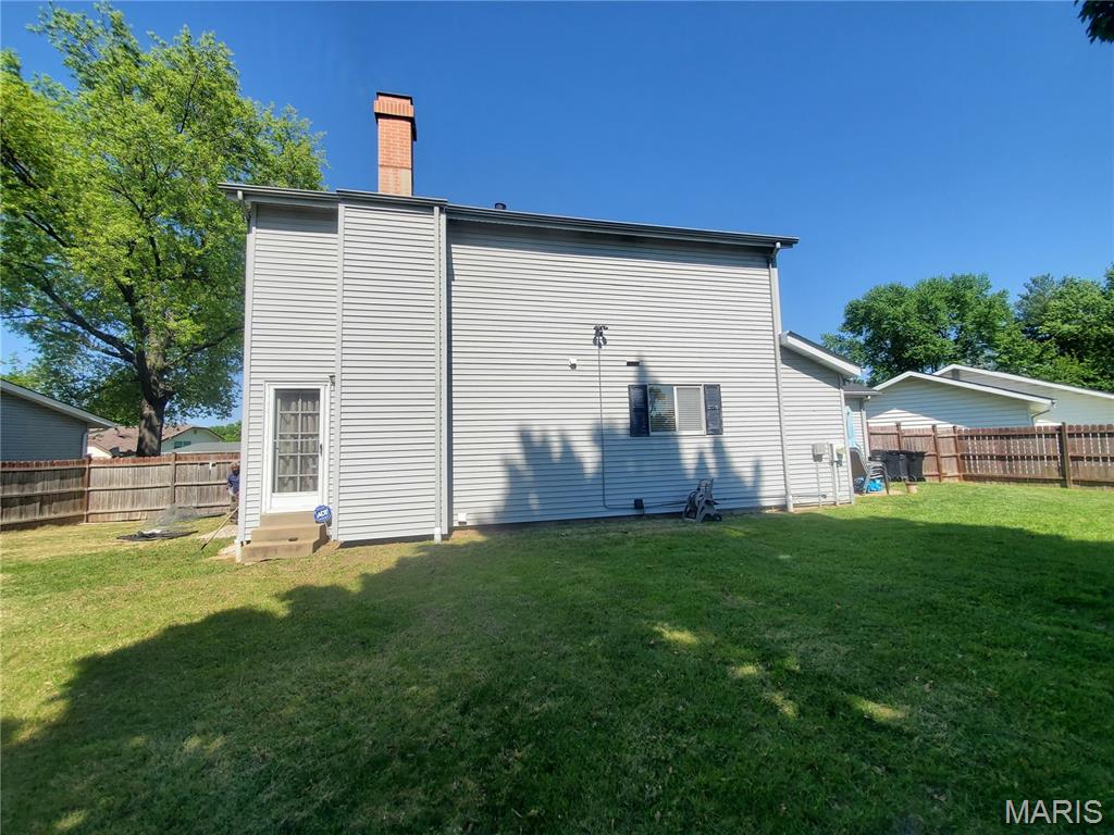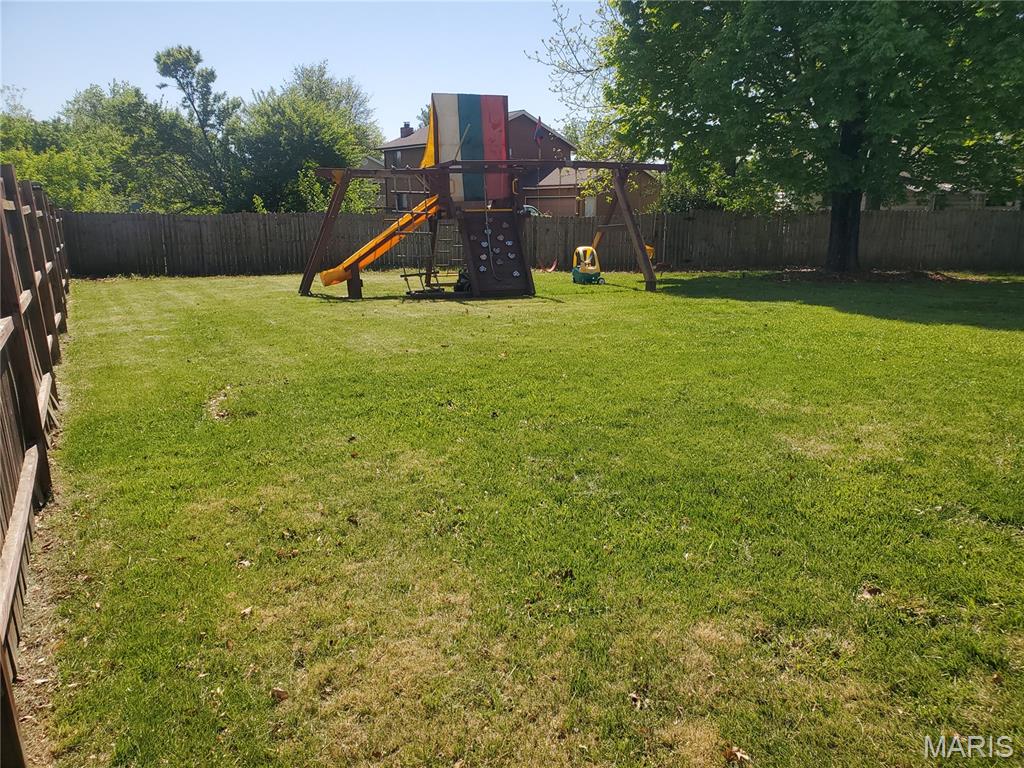 Designed to comfortably accommodate a growing family, this three-story home offers a large 2-car garage that comes with a dedicated electric EV car hookup details will be available with offers. There is a bathroom on every level—meaning no more fighting for space during the morning rush. The spacious kitchen features all stainless steel appliances including a refrigerator that stays. The kitchen also includes a dedicated workspace perfect for kids' homework or a quiet home-office nook. For ultimate convenience, the home also comes complete with a washer and dryer. For special occasions, the large formal dining room is ready to host your holiday meals. When it’s time to unwind, you have options: cozy up in the den by the built-in brick wood-burning fireplace during those chilly St. Louis nights, or lounge in the bright, inviting living room. For larger gatherings, the oversized partially finished basement includes a bathroom with a shower, making it an ideal spot for parties or overnight guests. Offers Smart Garage Door Opener, High Speed Fiber Internet. The outdoor space is just as inviting, featuring a large fenced-in backyard and a original rainbow playset that stays with the property. Finally, the upper level houses all four bedrooms, including a primary suite with a private bath and walk-in closet. Come see for yourself why this home is the perfect place to start your next chapter. Open House Coming Soon Showings Start 5/1/2026 9a-7pm Daily