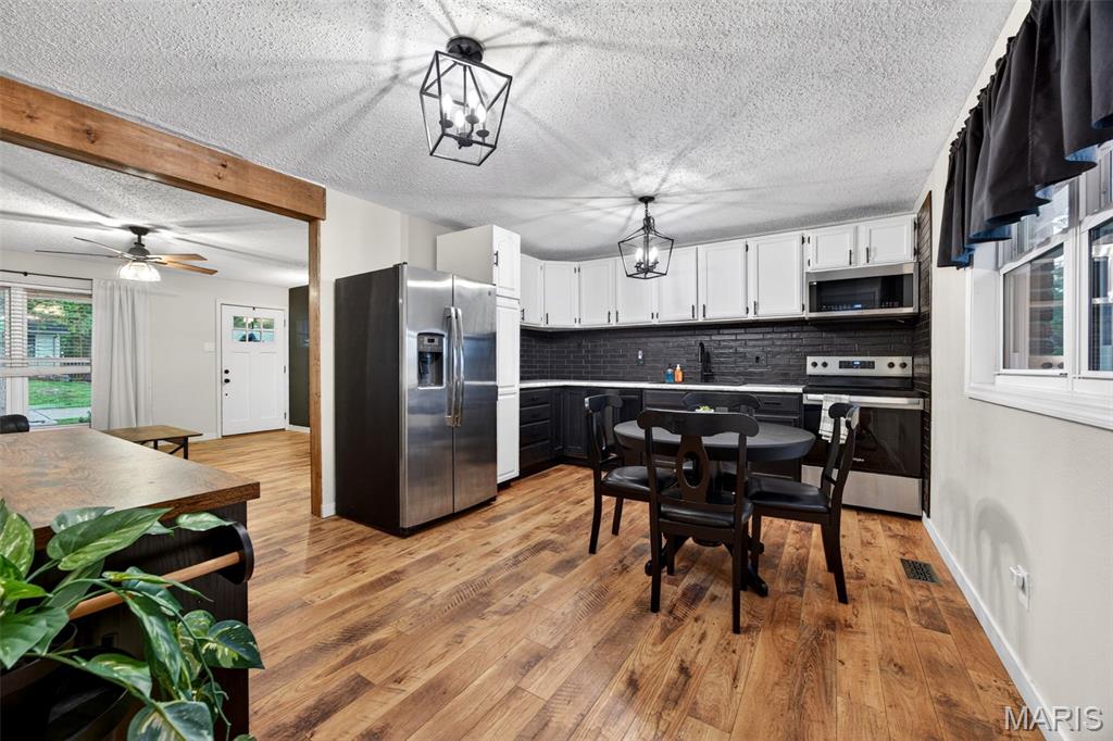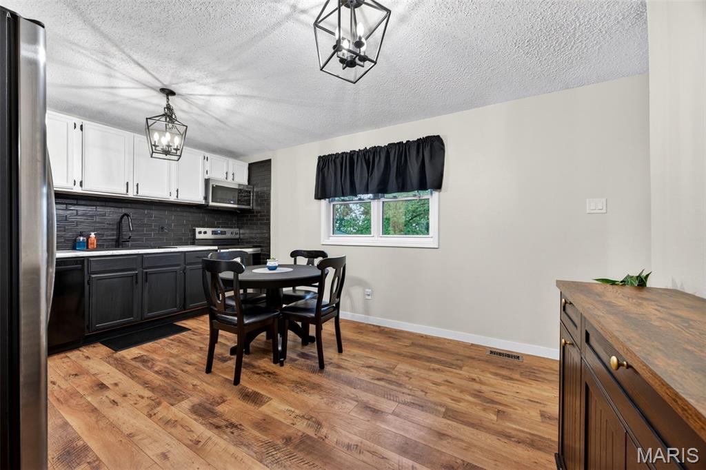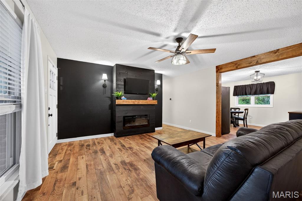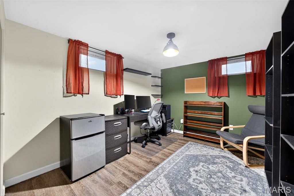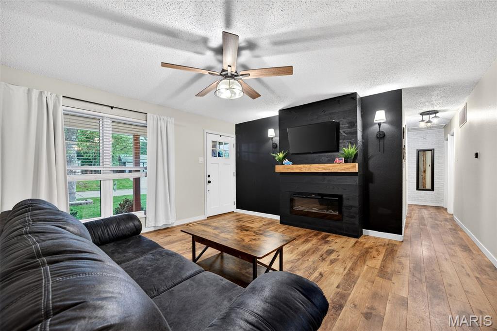 Discover the perfect blend of comfort and convenience in this beautifully maintained 3-bedroom, 3 full bath ranch with standout curb appeal. Inside, you’ll find updated flooring, kitchen, and baths that create a warm, modern, and move-in-ready feel. The kitchen features a new dishwasher and stove, while a main level and basement bathroom has been freshly painted. Additional improvements include new copper electrical connections at light switches and outlets, offering added peace of mind. The spacious family room with an electric fireplace flows effortlessly into the eat-in kitchen, creating an inviting layout ideal for both everyday living and entertaining. Step outside to your own private retreat, a fully fenced, maintained backyard complete with a large patio, perfect for relaxing evenings or hosting guests. The partially finished basement significantly expands your living space, offering a large recreation area with a second electric fireplace, two additional sleeping areas, a third full bathroom, utility space, and ample storage, creating a versatile setup ideal for guests, in-laws, or college-aged family members needing their own private retreat. Located in a prime area with easy access to Highway 364/Page Extension and top-rated schools, this home seamlessly combines thoughtful updates, functional living space, and an unbeatable location.