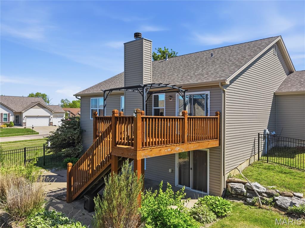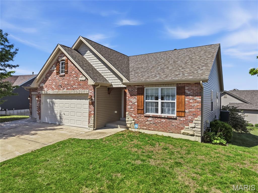 COMING SOON: Open House Sunday 5/3.This gorgeous brick and stone front ranch sits on a premium corner lot, offering the perfect blend of curb appeal and modern updates. Boasting 4 bedrooms and 3 full baths, this open-concept floor plan features vaulted ceilings, a cozy wood burning fireplace, and upgrades including stylish quartz countertops,vinyl plank flooring, and a fully fenced yard. The primary suite is a true retreat located at the rear of the home for maximum privacy; it comfortably fits a king size bed and features a large walk-in closet and a deluxe bathroom with a double bowl vanity, walk-in shower, and separate soaking tub. The "wow" factor continues in the finished walk-out lower level, designed for entertaining a crowd with a fourth bedroom, a full bath with a custom tiled shower, a secondary gas fireplace, and a sitting bar. Step outside to your private oasis featuring a deck with a covered gazebo, an expanded patio, and a beautifully landscaped yard. Residents also enjoy the neighborhood pool and a prime location just off the Wentzville Parkway within walking distance to local amenities and perfectly situated for enjoying summer sunsets. With a 3-car garage and all the heavy lifting already done, this move-in-ready gem is the one you’ve been waiting for!
