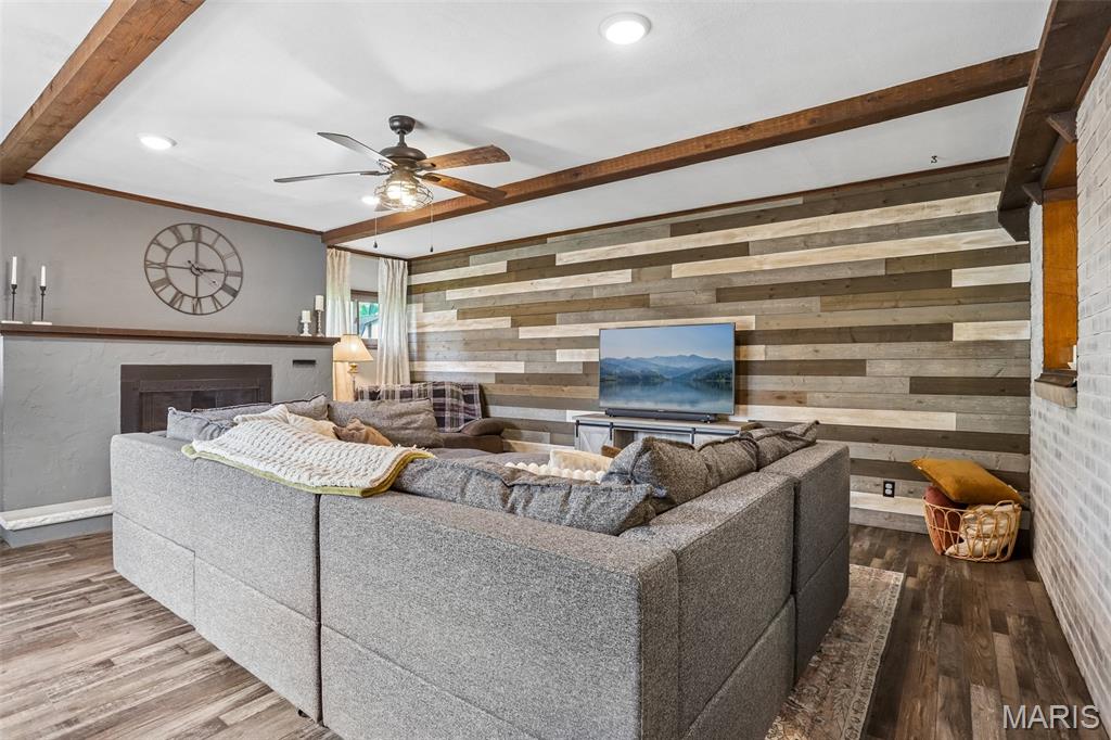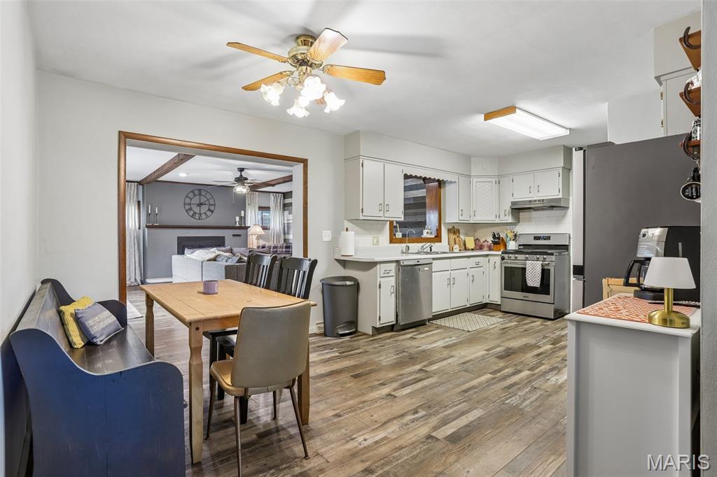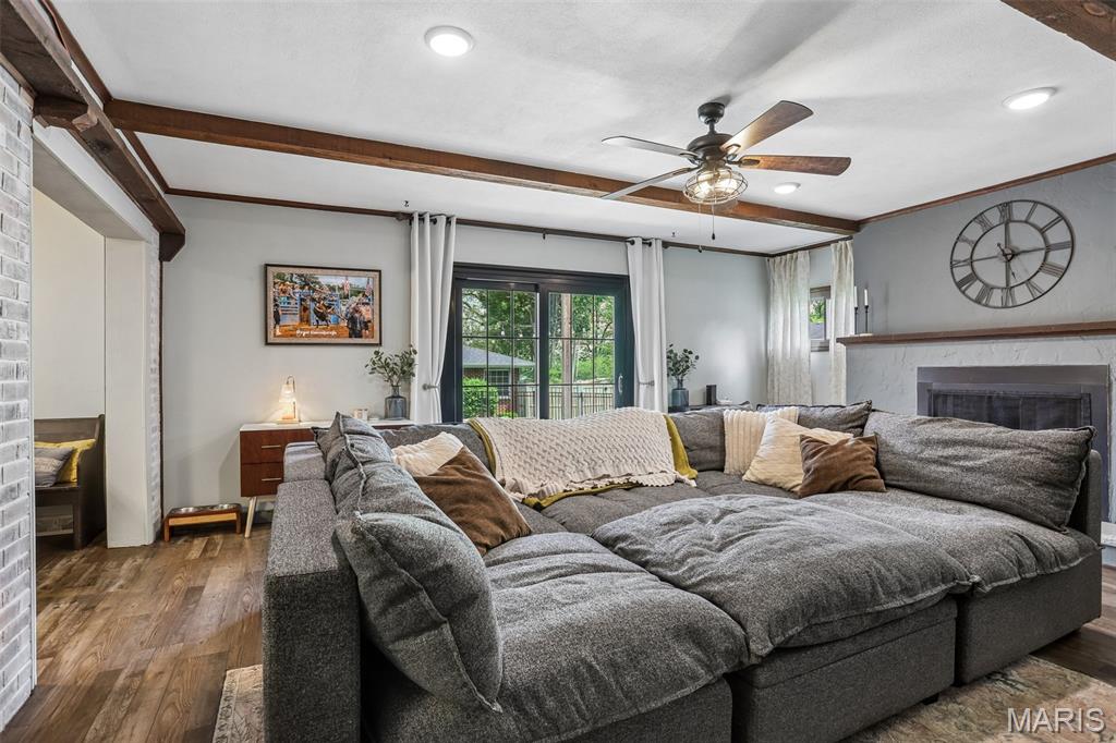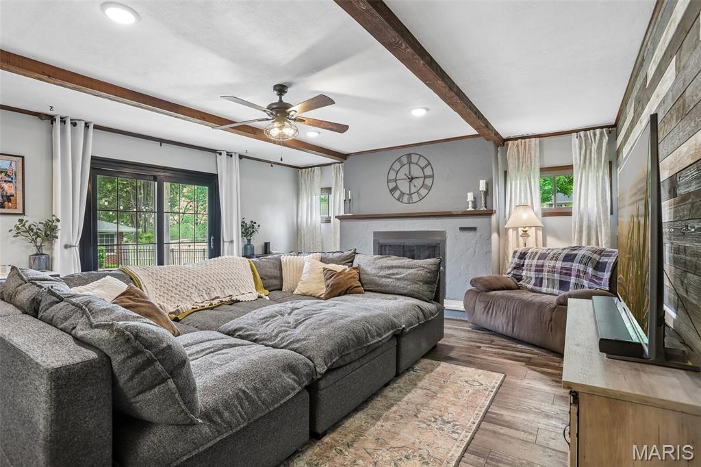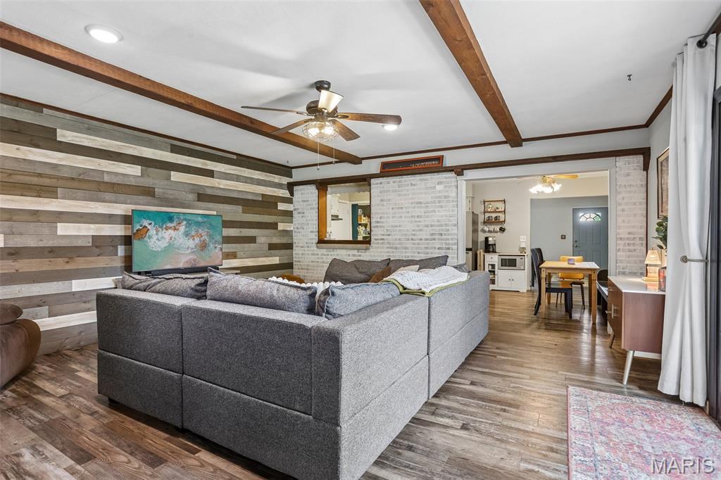 Picture Sunday morning. Coffee in the four-season sunroom while the backyard wakes up around you, windows on every side, ceiling fan turning slow, and not a single reason to be anywhere else. One block from Horner Park. Minutes from McKendree College. On one of Lebanon's most coveted streets, and you feel it before you ever step inside. Walk through the door and the family room stops you cold. Exposed wood beam ceiling, shiplap accent wall in warm driftwood tones, a concrete wood-burning fireplace, hardwood-look floors, and French doors pouring in natural light. This is the room that sells the house. The kitchen flows into a dining room built for gathering, white cabinetry, stainless steel appliances and laundry tucked right off the back. A flex room with gorgeous built-in cabinetry handles whatever your life needs, office, playroom, reading nook. Three bedrooms, two full baths, primary suite with private bath and walk-in closet. The fenced backyard and storage shed keep everything tidy and contained. Brick-solid bones. Thoughtful renovations. A street that never goes out of style. Move-in ready homes on streets like this don't sit and this one won't either. Whether you're planting roots or right-sizing into Lebanon's best neighborhood, 408 Parkview is the one you tell your friends about.