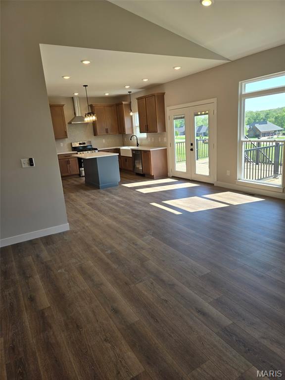 Beautiful new construction home located in a sought-after golf course community, offering a perfect blend of style, space, and functionality. The striking front elevation features a combination of brick and stone, creating impressive curb appeal from the moment you arrive. Inside, you’ll find luxury vinyl plank flooring flowing seamlessly throughout the main living areas, complemented by vaulted ceilings and a stunning stone fireplace that anchors the living room. The open layout is ideal for everyday living and entertaining, with upgraded appliances, a walk-in pantry, and thoughtful finishes throughout. The home offers 3 spacious bedrooms and 2.5 baths, including a private primary suite with tray ceilings, a large en-suite bathroom, and upgraded closet features. Additional highlights include a separate laundry room, a custom mud room bench for added convenience, and enhanced storage solutions. Step outside to enjoy the wood deck with sleek black railing, overlooking an oversized lot with sod already in place. The walk-out basement provides excellent potential for future living space or entertaining and is already stubbed for a bathroom, making it even easier to finish to your needs. Car enthusiasts and those needing extra storage will appreciate the oversized three-car garage. With quality upgrades, modern finishes, and a prime location, this home delivers comfort, style, and long-term value in one exceptional package