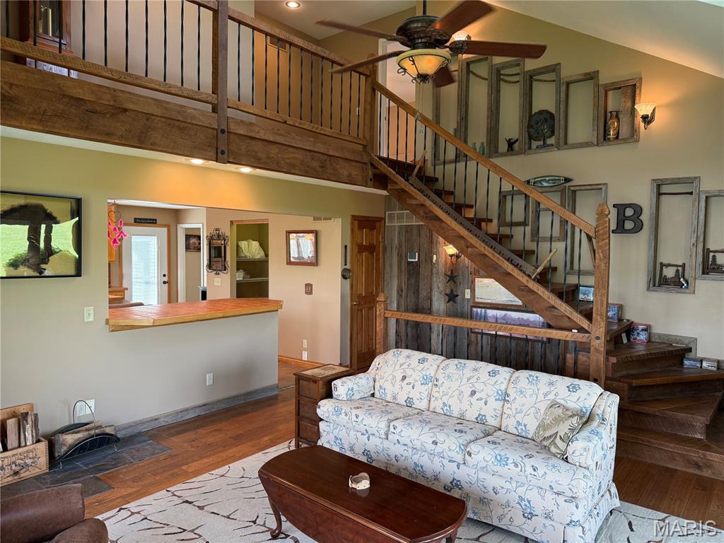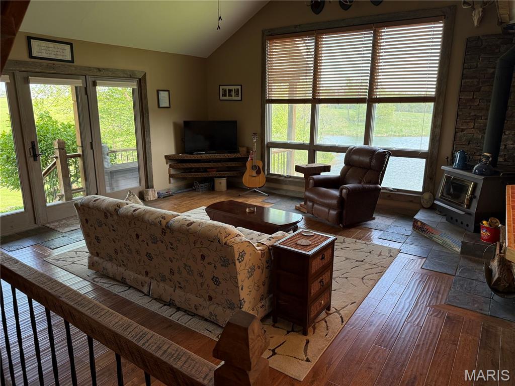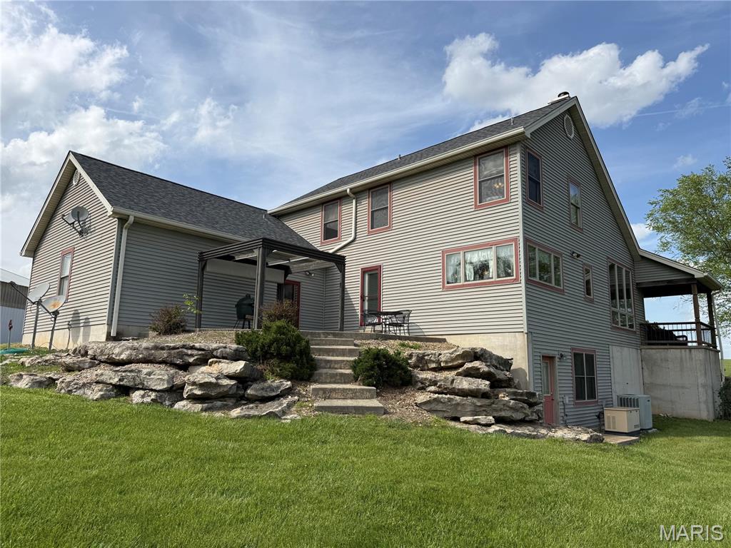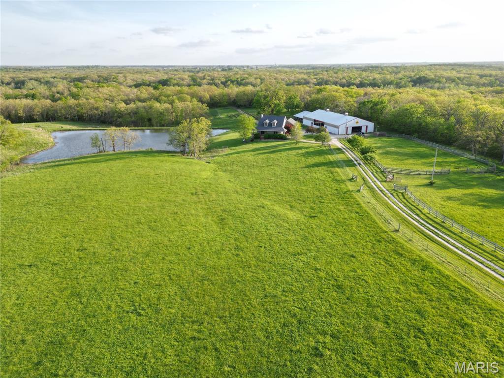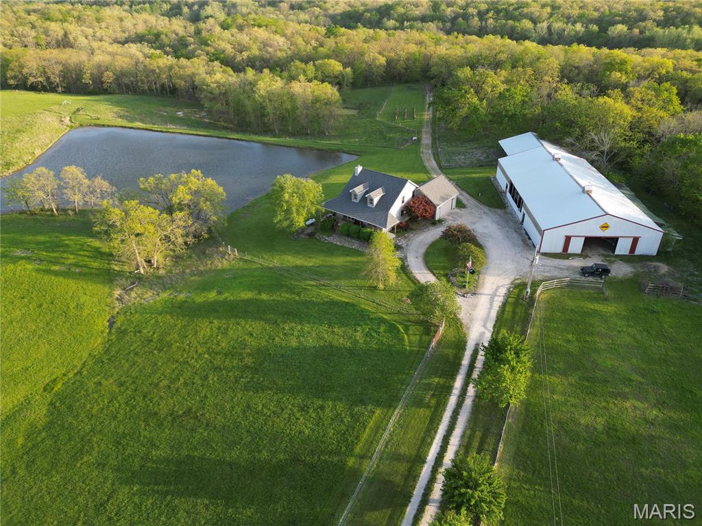 This is the TOTAL package that you've been waiting for! 52 Acres m/l, with everything... cabin style homestead with barns, large stocked pond, pasture/hay ground, timbered ridges , grassy meadow, and Brush Creek frontage! The home gives you that warm cabin feel with rough-cut timbers, freestanding wood stove, vaulted ceilings, dormers, and a large front porch that overlooks the beautiful pond/lake! The kitchen is spacious including lots of counter space, shaker style cabinets, and numerous windows providing natural light. The home includes a main floor suite with full bathroom - walk-in shower, dbl. vanity & walk-in closet. The loft area includes two additional bdrms, large closets, and full jack & jill bathroom. The home also features main floor laundry/mudroom, 2 car attached garage, 9' unfinished basement with walkout, and backup generator, if needed. The back patio is extremely private and overlooks the pond and rolling hills. The property features 2 barns - a large 60x120 that has been a riding arena in the past or easily used for hay and equipment storage. The second building is approx. 50x50 and includes 8 stalls and storage. The property is amazing... The land along the county road is mostly pasture/hay ground and creates a natural buffer between the road and improvements. The long driveway sets the stage as you approach the homestead and drive along a small apple orchard. After you pass the homestead, pond and buildings, you enter the timberland and drive the path along the ridgetop. As you follow the interior path, you approach the 9 acre valley on the south portion of the property that borders the beautiful Brush Creek. Do you enjoy watching deer or turkey? Don't worry - this is THE SPOT!