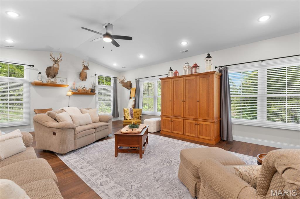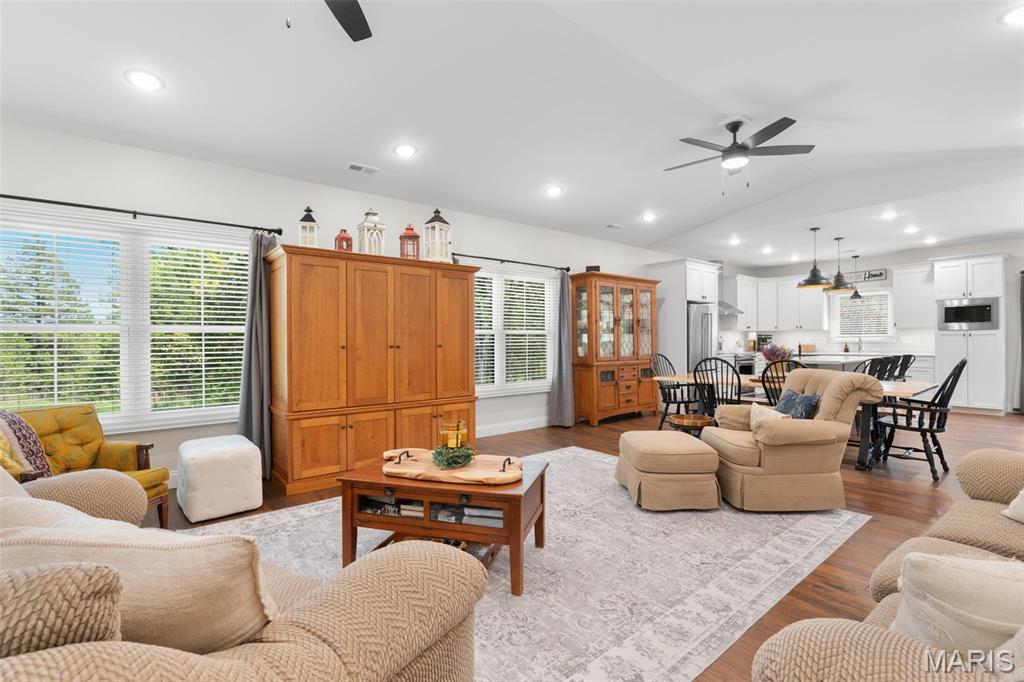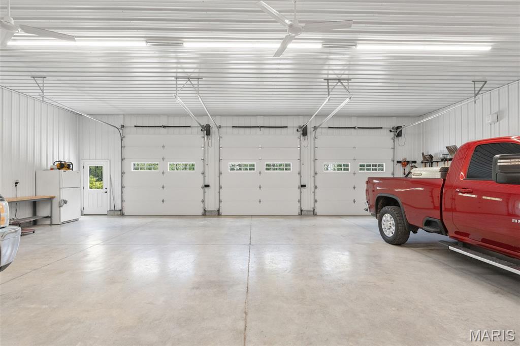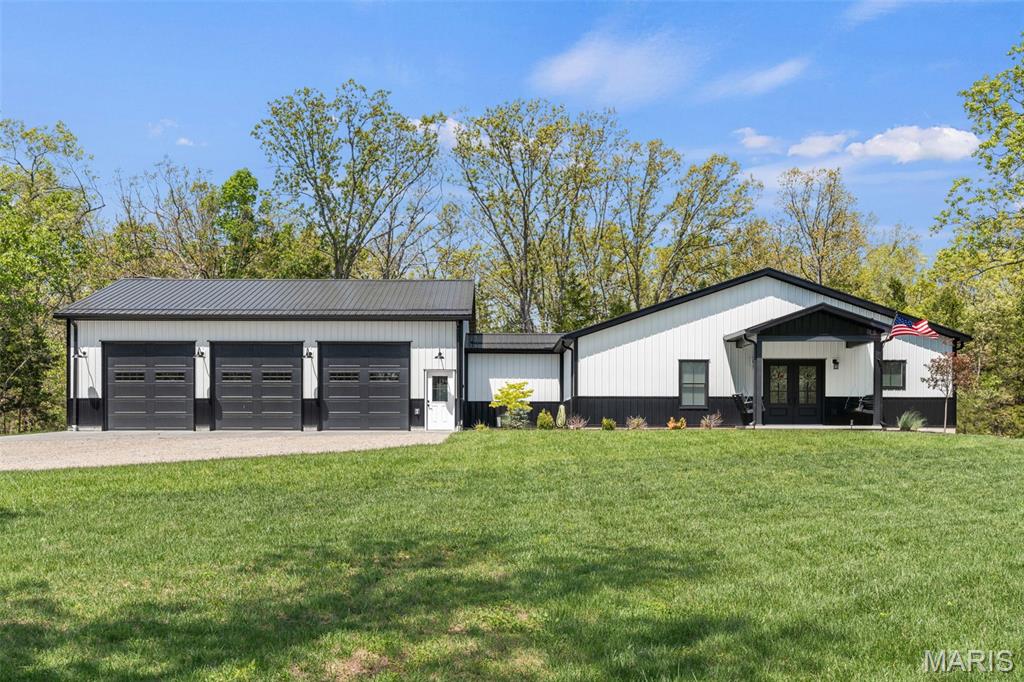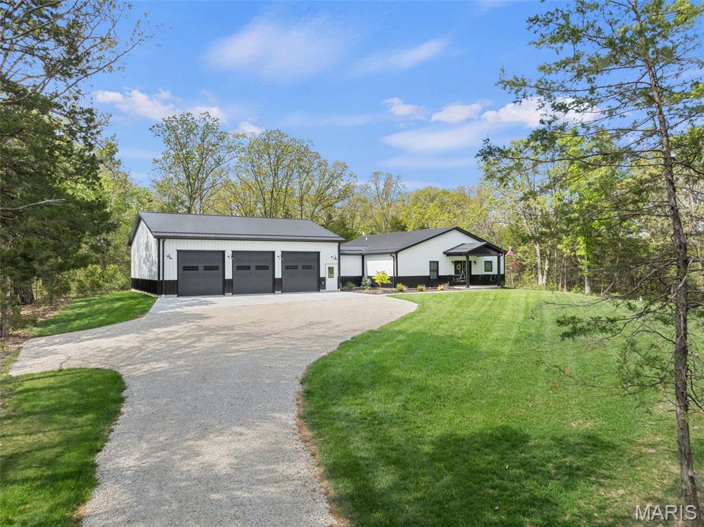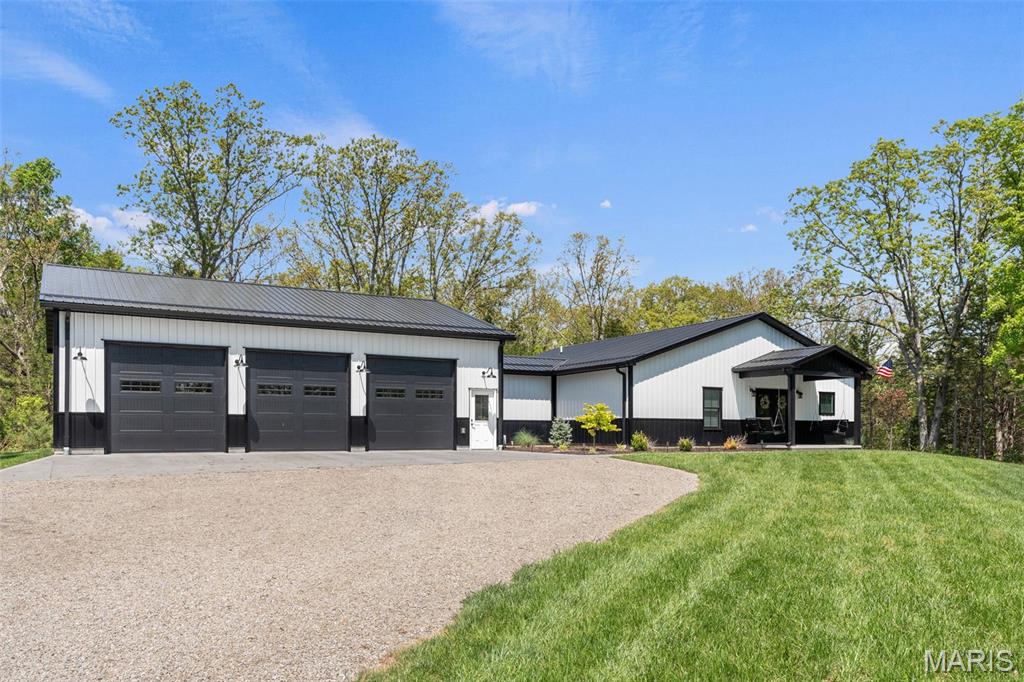 Discover this stunning barndominium home offering 6 acres of tranquility with upscale living. Just 3 years new, this metal frame blends modern elegance with lots of craftsman charm with a double door front entrance. Step inside to find 9 foot ceilings, beautiful engineered wood floors throughout with spectacular lighting and fixtures adorning every space. The heart of the home boasts custom cabinetry, a huge island, and a pantry perfectly complemented by high-end stainless-steel appliances—all just 3 years young, including the refrigerator. The Primary bedroom has your dream bathroom with a walk-in Onyx shower, a soaking tub, and double vanity and a 6x16 walk-in closet. An energy-efficient heat pump ensures comfort year-round, while the oversized main-floor laundry/mudroom adds convenience. Outdoors, enjoy privacy, a covered patio for that morning coffee. The oversized 6-car tandem garage provides ample room for several vehicles, or storage, or workshop or whatever you'd like it to be. The garage has x3 10 foot garage doors.400 AMP. Drop Zone Water Softener. This exquisite home is a rare find—offering privacy, efficiency, and timeless style.