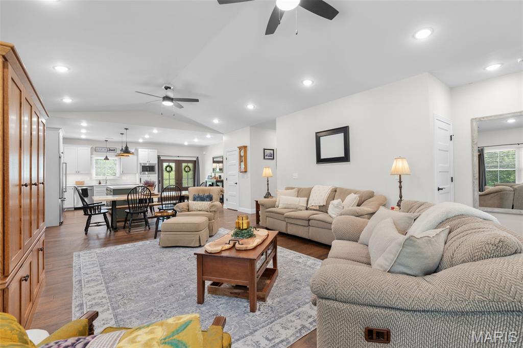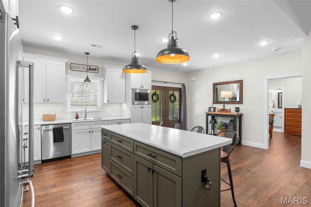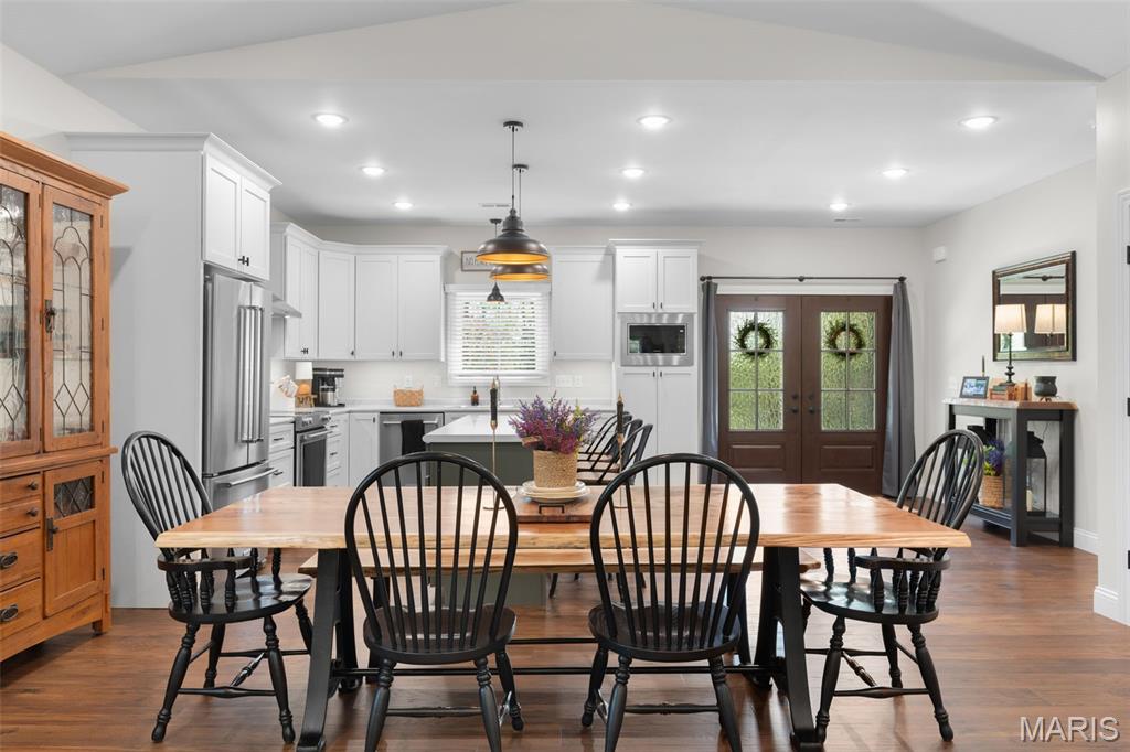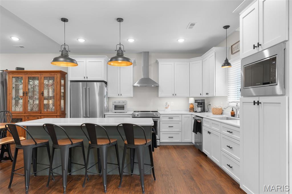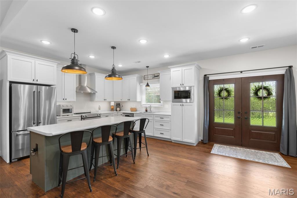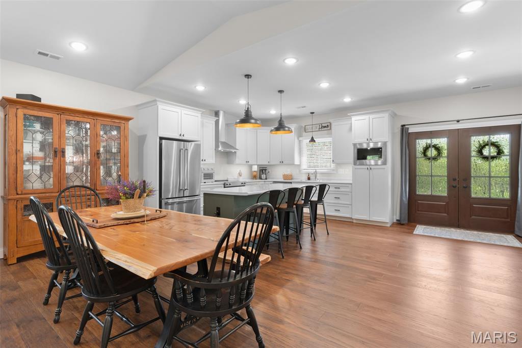 Discover this stunning barndominium home offering 6 acres of tranquility with upscale living. Just 3 years new, this metal frame blends modern elegance with lots of craftsman charm with a double door front entrance. Step inside to find 9 foot ceilings, beautiful engineered wood floors throughout with spectacular lighting and fixtures adorning every space. The heart of the home boasts custom cabinetry, a huge island, and a pantry perfectly complemented by high-end stainless-steel appliances—all just 3 years young, including the refrigerator. The Primary bedroom has your dream bathroom with a walk-in Onyx shower, a soaking tub, and double vanity and a 6x16 walk-in closet. An energy-efficient heat pump ensures comfort year-round, while the oversized main-floor laundry/mudroom adds convenience. Outdoors, enjoy privacy, a covered patio for that morning coffee. The oversized 6-car tandem garage provides ample room for several vehicles, or storage, or workshop or whatever you'd like it to be. The garage has x3 10 foot garage doors.400 AMP. Drop Zone Water Softener. This exquisite home is a rare find—offering privacy, efficiency, and timeless style.