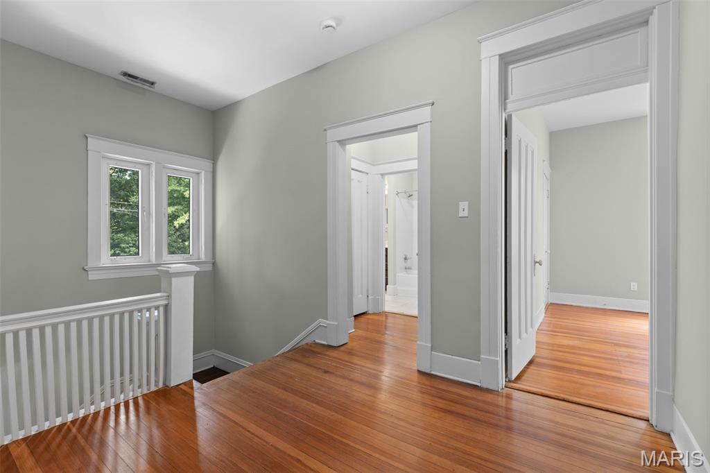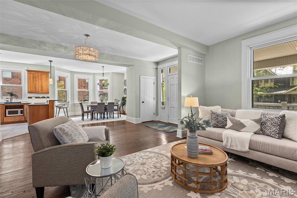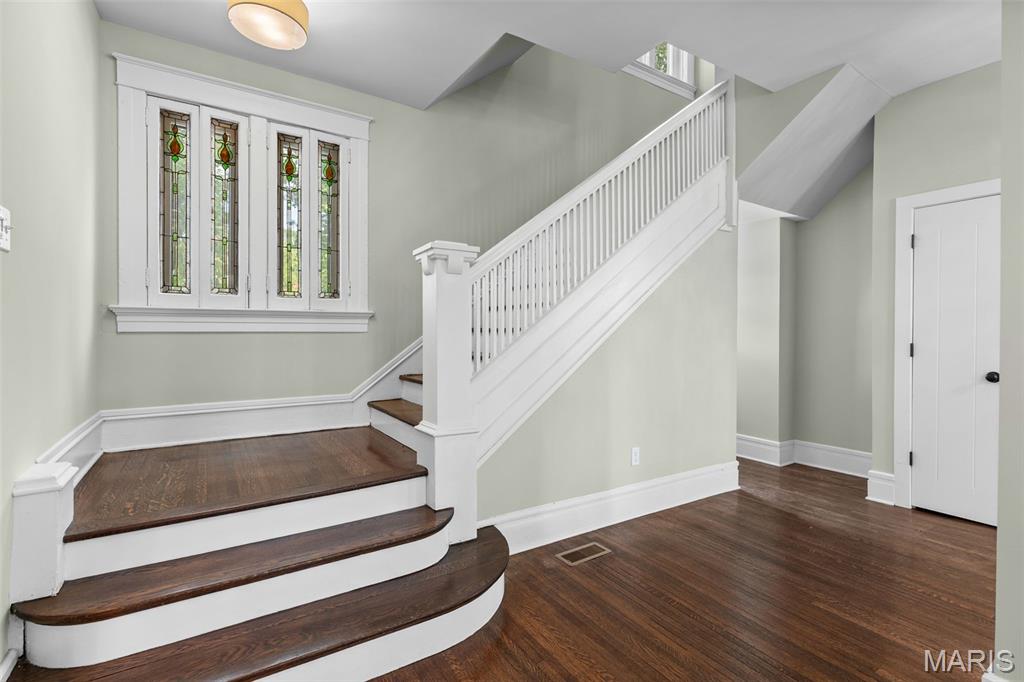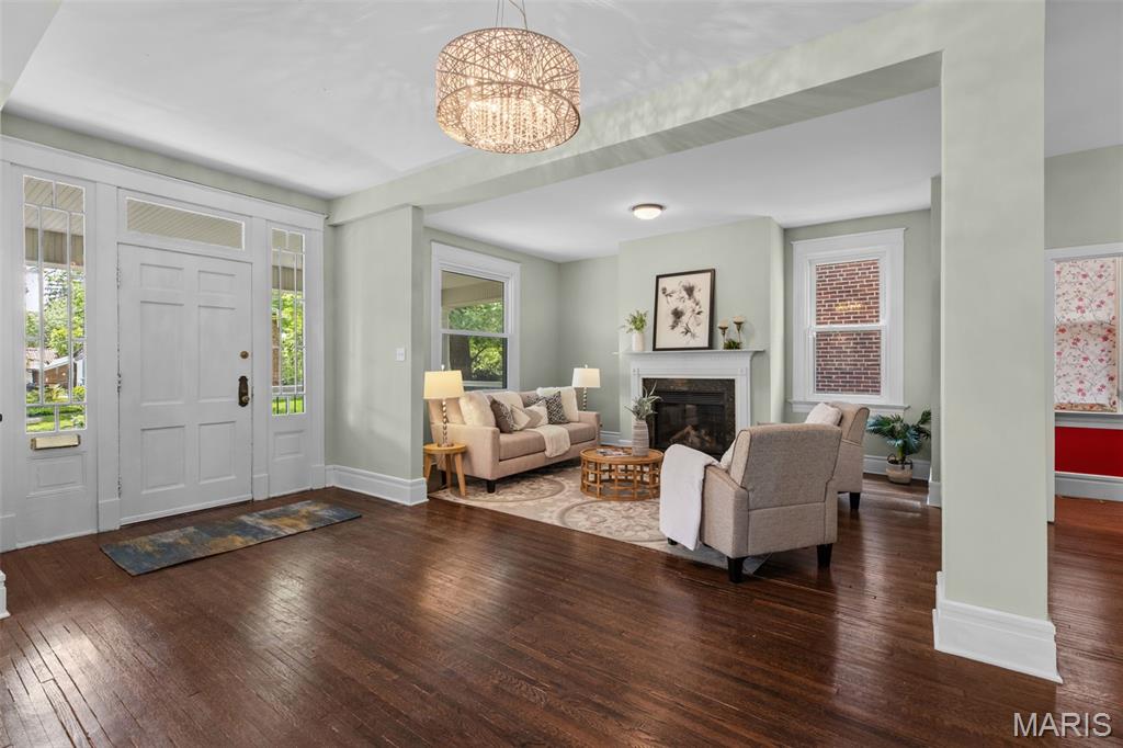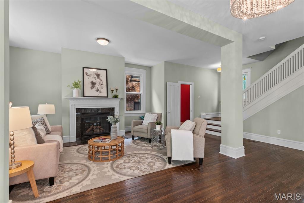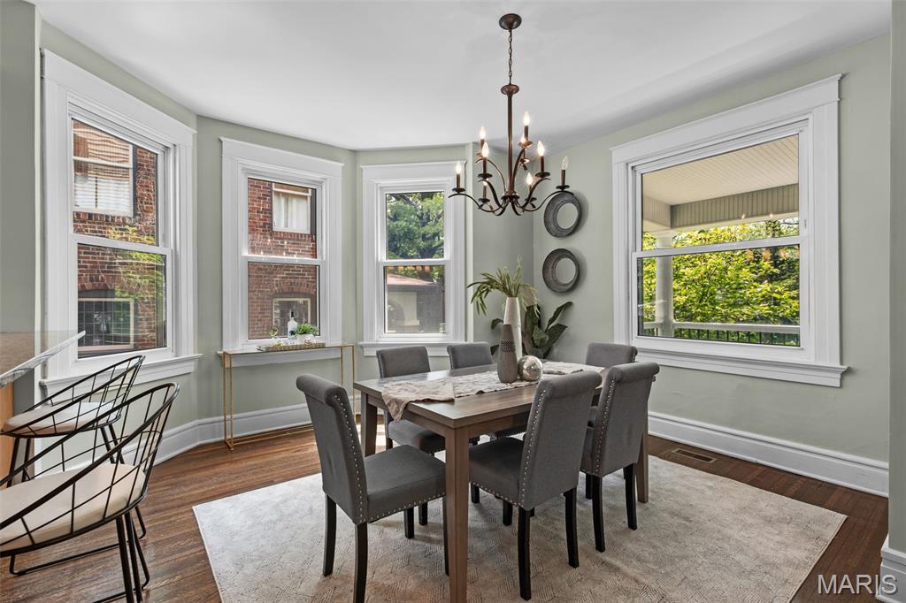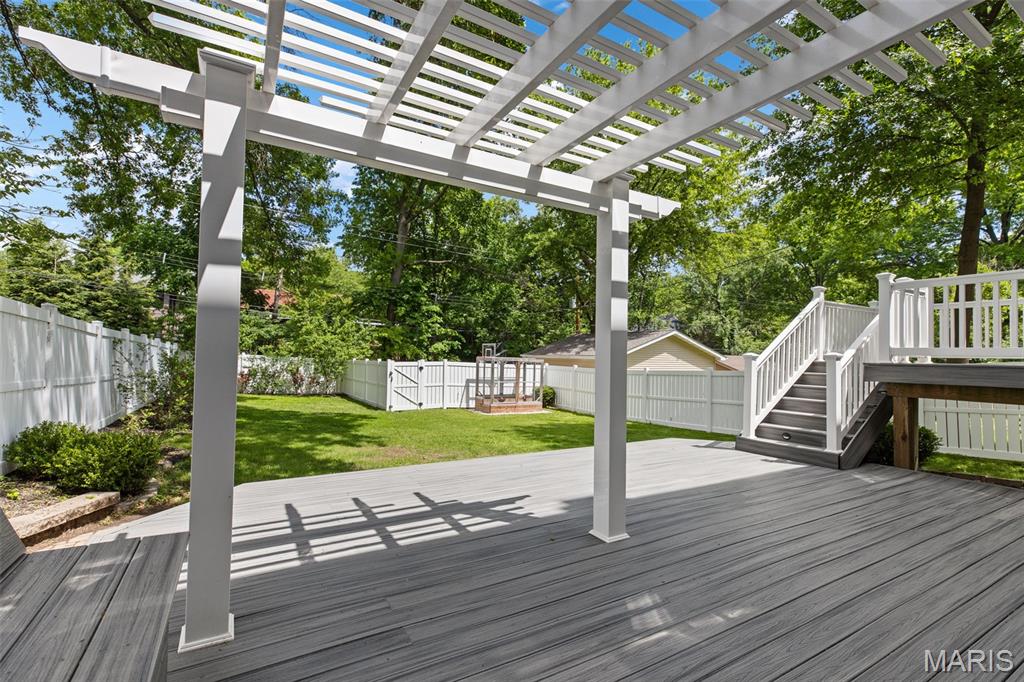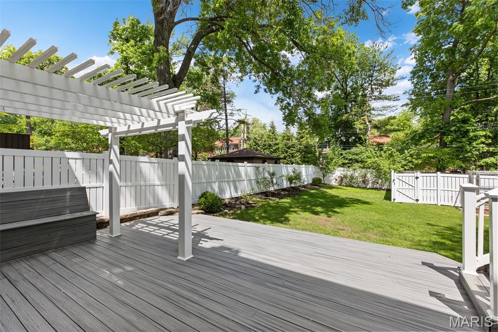 Ideally situated just two blocks from Washington University, this exceptional home has been extensively and tastefully updated throughout while maintaining charming architectural detailing such as original front door sidelights, interior door hardware and gleaming hardwood floors. The newer, generously sized front porch offers ample space, perfect for taking in the tree lined surroundings. The first floor features an open floor plan, living room fireplace and an updated chef’s kitchen with granite countertops, stainless appliances, custom cabinetry, and a decorative glass tile backsplash. The handsome original staircase leads to the spacious second floor master suite that includes plenty of closet space and an updated bathroom with onyx shower walls and vanity tops, plus abundant newer cabinetry. Two additional bedrooms and updated bathroom complete this floor. The third floor includes another full bath and a bedroom with a large adjoining room that could be used as an office, sitting room, or a playroom. This home offers a fresh, light interior. The spacious, fenced backyard with a newer, large deck and built-in seating offers great outdoor space for entertaining family and friends. Conveniently located near downtown Clayton and Forest Park, this home offers an exceptional blend of comfort, character, and convenience.