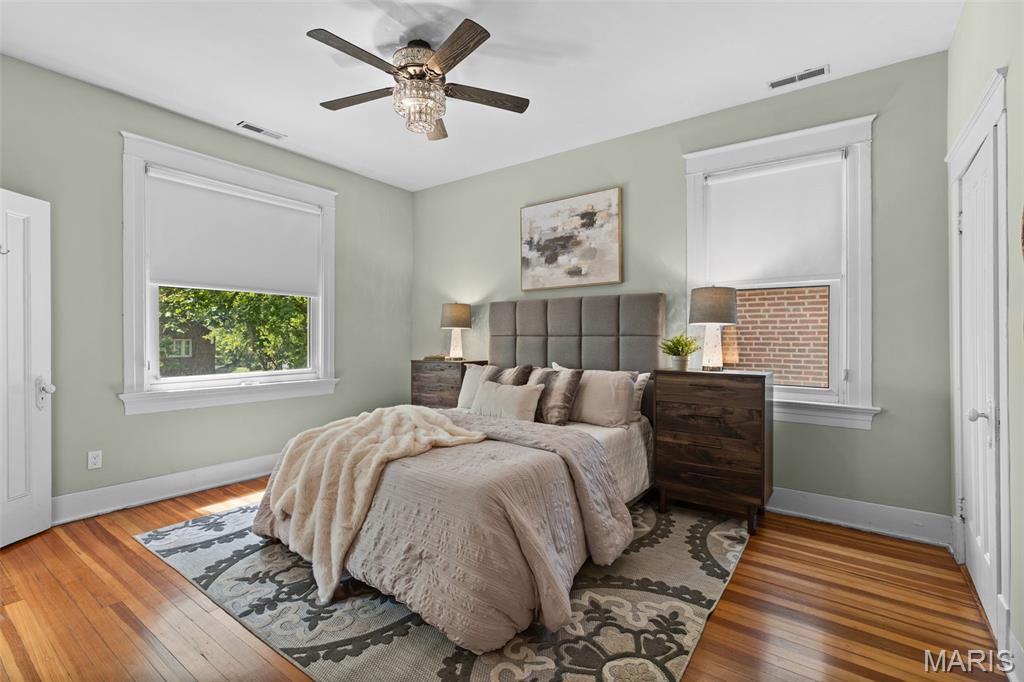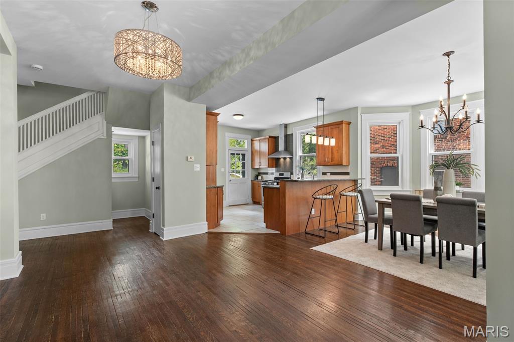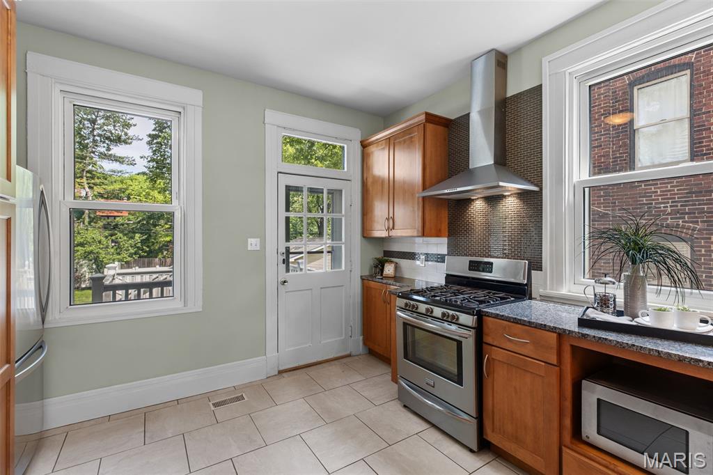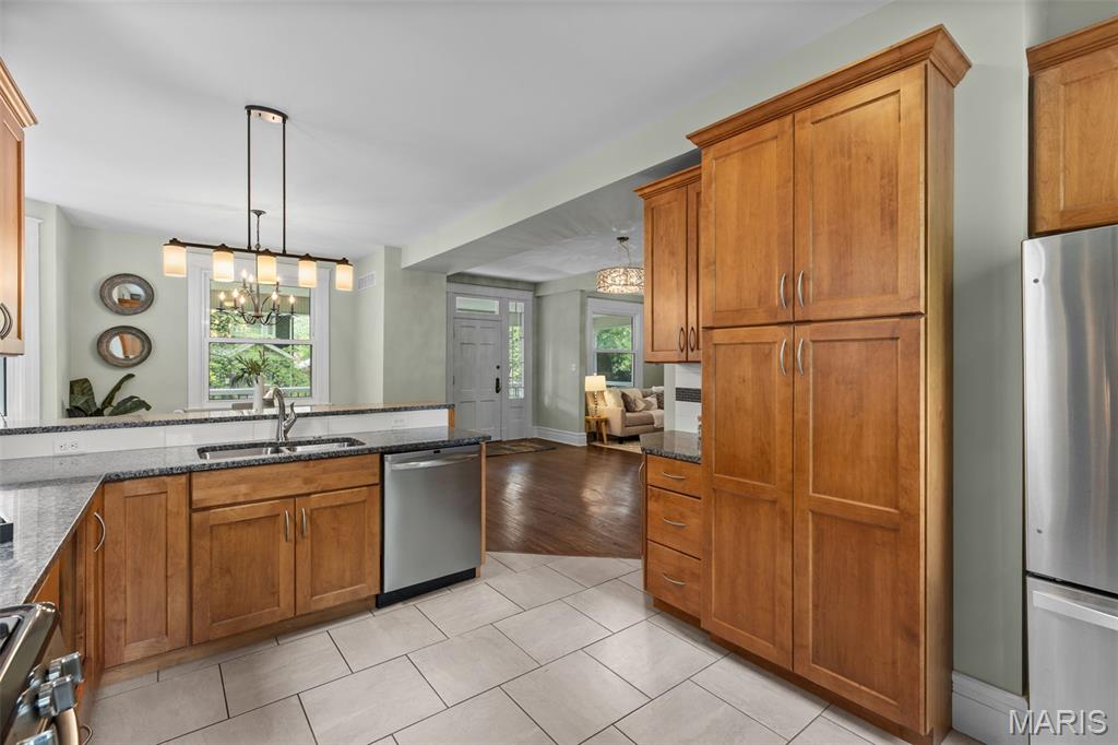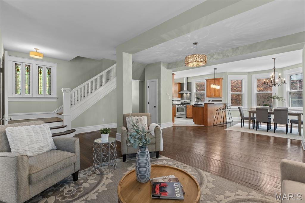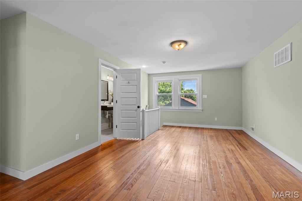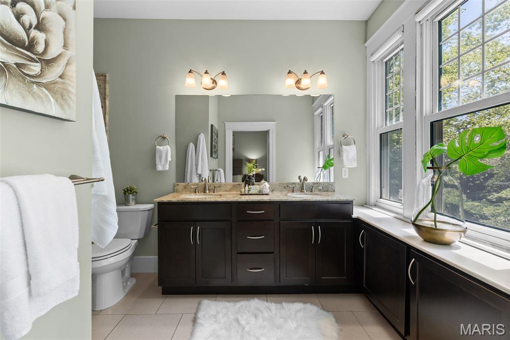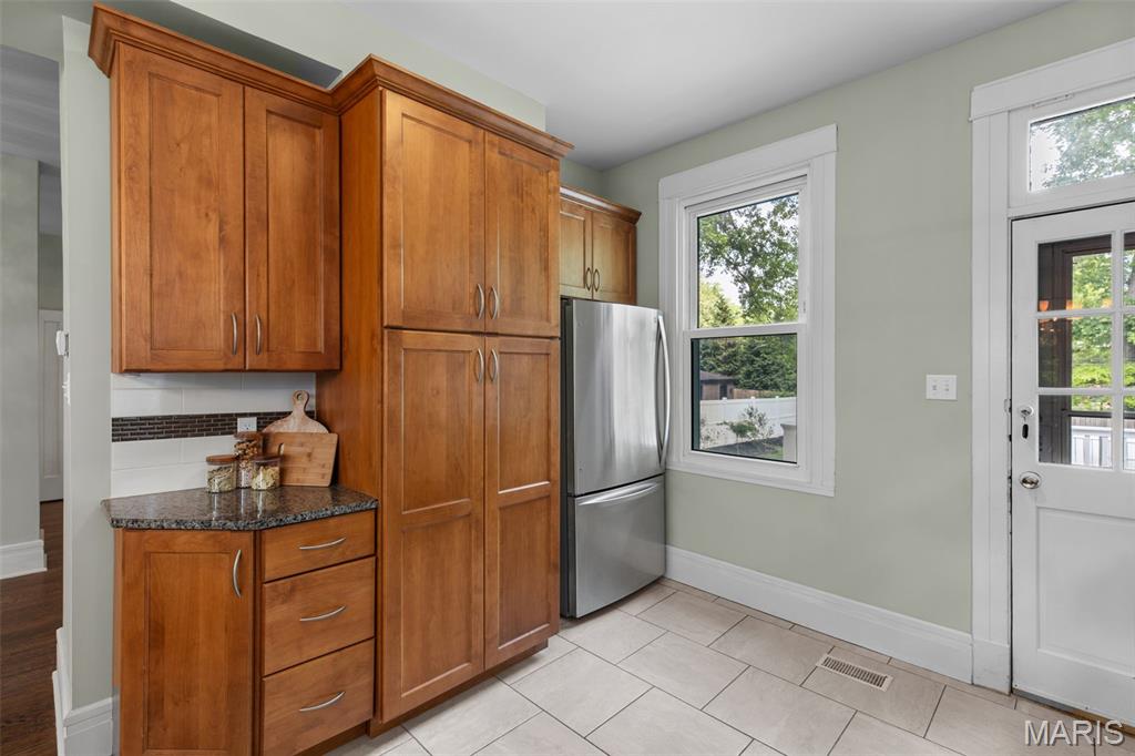 Ideally situated just two blocks from Washington University, this exceptional home has been extensively and tastefully updated throughout while maintaining charming architectural detailing such as original front door sidelights, interior door hardware and gleaming hardwood floors. The newer, generously sized front porch offers ample space, perfect for taking in the tree lined surroundings. The first floor features an open floor plan, living room fireplace and an updated chef’s kitchen with granite countertops, stainless appliances, custom cabinetry, and a decorative glass tile backsplash. The handsome original staircase leads to the spacious second floor master suite that includes plenty of closet space and an updated bathroom with onyx shower walls and vanity tops, plus abundant newer cabinetry. Two additional bedrooms and updated bathroom complete this floor. The third floor includes another full bath and a bedroom with a large adjoining room that could be used as an office, sitting room, or a playroom. This home offers a fresh, light interior. The spacious, fenced backyard with a newer, large deck and built-in seating offers great outdoor space for entertaining family and friends. Conveniently located near downtown Clayton and Forest Park, this home offers an exceptional blend of comfort, character, and convenience.